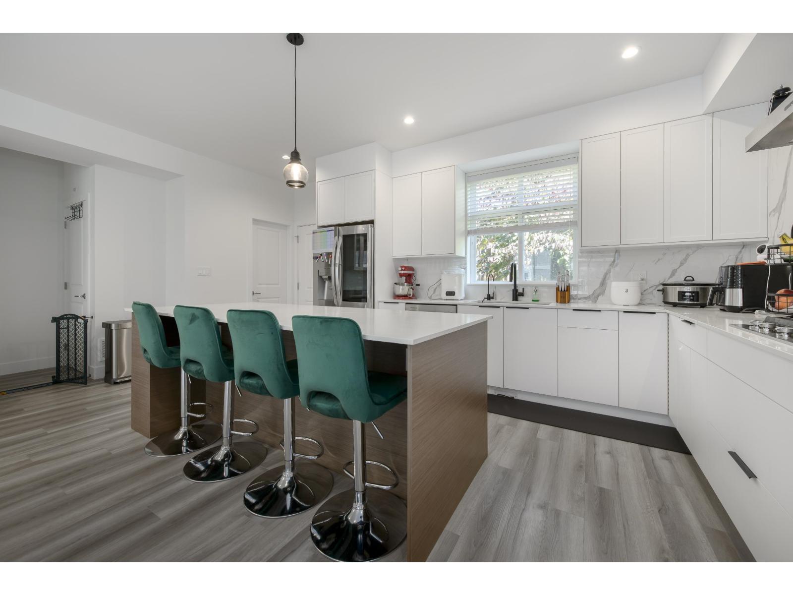 This 3 bedroom and den townhome is ideally situated close to Scott Road SkyTrain Station, with easy access to Pattullo Bridge. Designed with comfort and functionality in mind, the top floor features three bedrooms, including a primary bedroom with ensuite and a walk-in closet, two spacious bedrooms and one bathroom. The main floor features an open kitchen with quartz countertops, abundance of cabinetry, and stainless steel appliances. Located on the same level is an open living room with an electric fireplace, a powder room, and access to the backyard for outdoor enjoyment. The lower level includes a double-car garage and a huge den, which can be used as an office, or an additional bedroom and a power room. A/C and EV charging station. Open House: Sat (Feb 28, 2026): 2.00 pm - 4.00 pm. (id:64528)