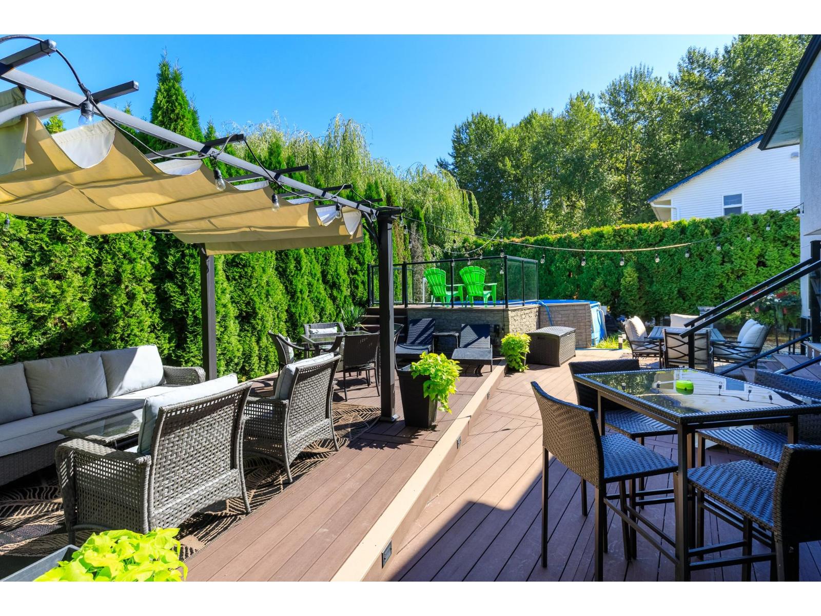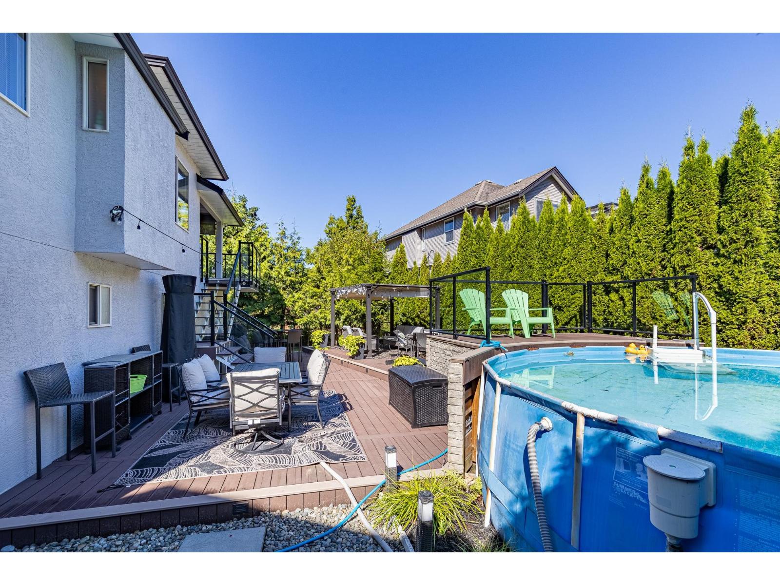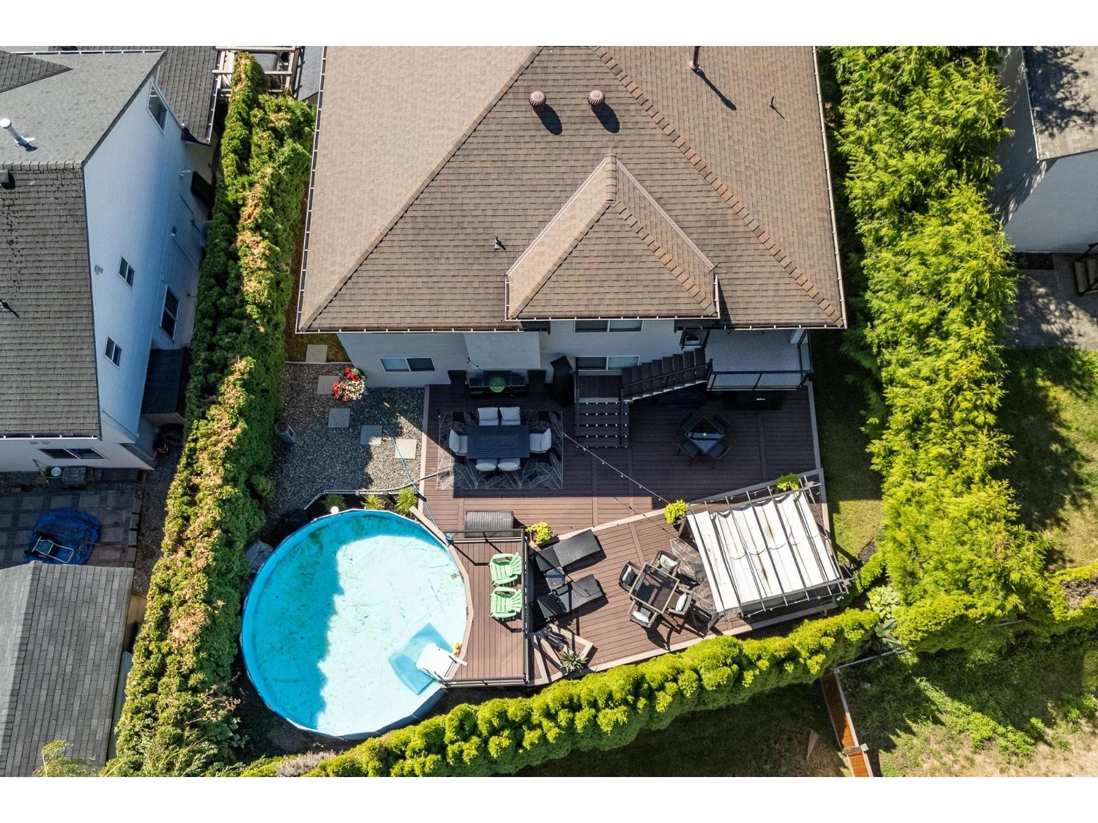 Welcome to this spacious 5-bedroom, 3-bathroom Abbotsford home located near top schools, parks, shopping, golf, and quick Hwy 1 access. The main level offers a bright primary bedroom with ensuite, plus two additional bedrooms and an open living/dining area filled with natural light. The lower level includes two more bedrooms, a large rec/media room, full bathroom, and laundry, ideal for family living, guests, or a teen retreat. Step outside to your private backyard oasis featuring a pool and raised patio, perfect for entertaining or relaxing. A double garage, RV parking, and extra driveway space provide excellent parking options. A great home in a convenient, family-friendly location. Book your private showing today! (id:64528)