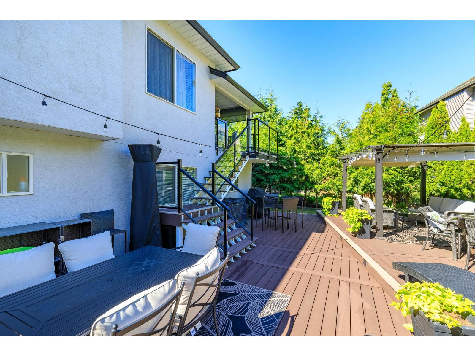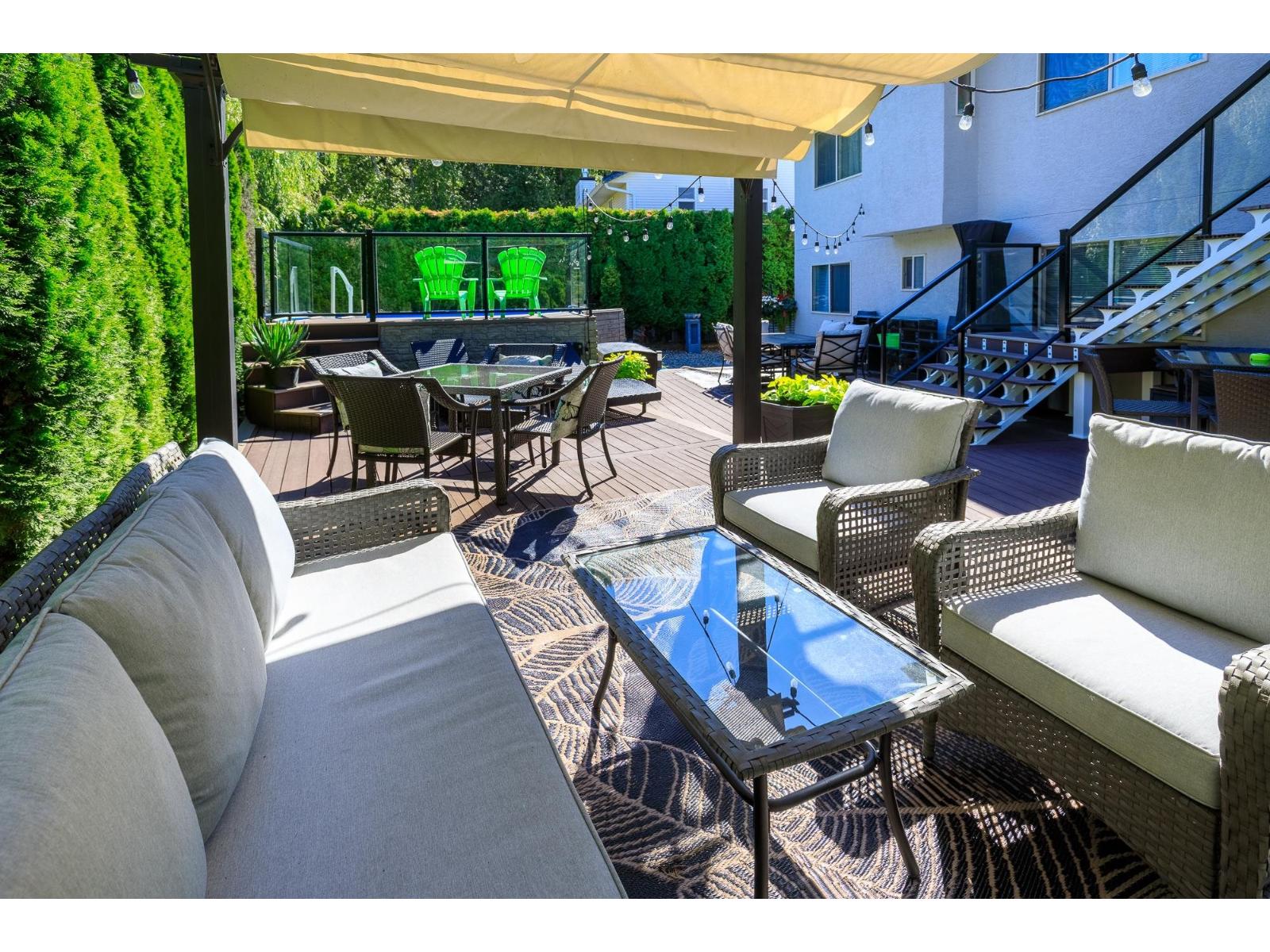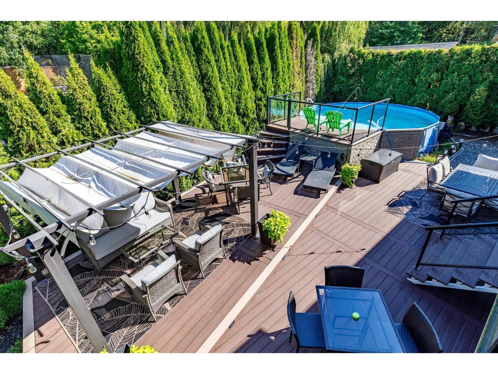 Welcome to this spacious 5-bedroom, 3-bathroom Abbotsford home located near top schools, parks, shopping, golf, and quick Hwy 1 access. The main level offers a bright primary bedroom with ensuite, plus two additional bedrooms and an open living/dining area filled with natural light. The lower level includes two more bedrooms, a large rec/media room, full bathroom, and laundry, ideal for family living, guests, or a teen retreat. Step outside to your private backyard oasis featuring a pool and raised patio, perfect for entertaining or relaxing. A double garage, RV parking, and extra driveway space provide excellent parking options. A great home in a convenient, family-friendly location. Book your private showing today! (id:64528)