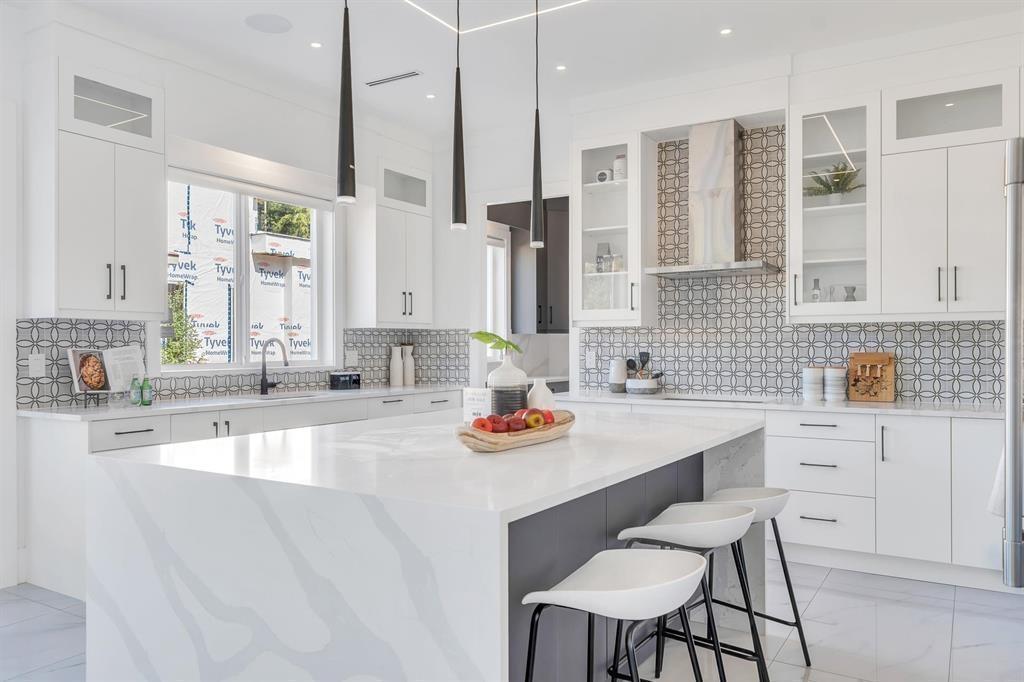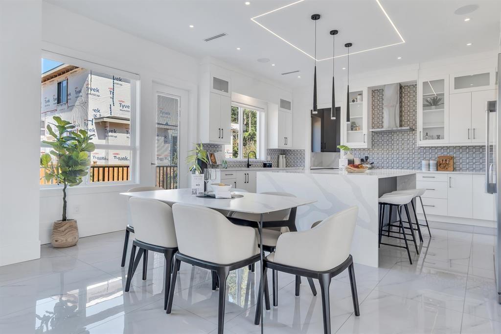 WOW! This 8 bed, 9 bath custom home spans nearly 5,800 sq ft of pure luxury. The main floor boasts soaring ceilings, oversized windows, a spacious living/dining area, family room, gourmet kitchen with quartz counters, SS appliances, WOK kitchen, plus a one bedroom with ensuite, office and laundry. Upstairs: 4 bedrooms, each with its own ensuite and walk-in closet - including a stunning primary suite with a massive closet and spa-like bathroom. The basement features a theatre and powder room for the main home, plus a 2-bed legal suite and 1-bed unauthorized suite. Set on a 7,000+ sq. ft. lot with a wide, unique floorplan, top-tier finishes and a double garage. Prime location. Total showstopper. PICTURES FROM WHEN HOUSE WAS STAGED. THERE IS NO LONGER CONSTRUCTION BESIDE, FULLY FINISHED. (id:64528)