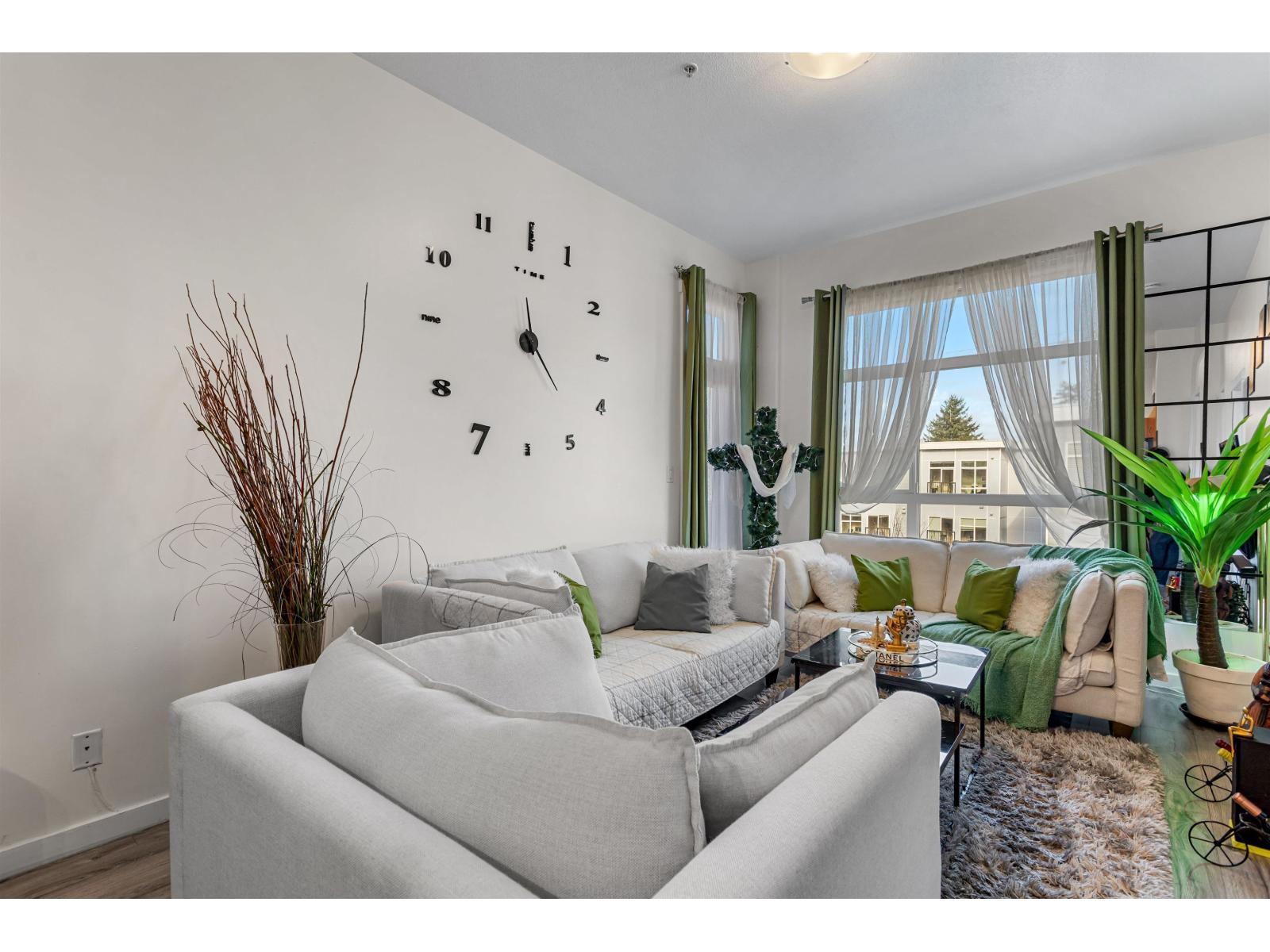 Welcome to The Quattro - a bright, top-floor two bedroom home that offers space, privacy, and exceptional long-term value in the heart of Surrey's rapidly growing City Centre. This well-laid-out residence features soaring 10-foot ceilings, a clean open-concept design with no wasted space, and a quiet north-facing exposure overlooking the inner courtyard. Natural light fills the living area while maintaining a calm, private feel, making it equally appealing for comfortable daily living or as a smart investment property. The home has been thoughtfully updated with three-year-old flooring, stainless steel appliances, a new refrigerator, and large windows that were replaced throughout the building in 2024. The kitchen flows seamlessly into the living and dining area, while the deep soaker tub and in-suite laundry add everyday comfort. A generous covered patio extends your living space outdoors, and the balcony upgrade has already been completed and paid for by the seller. The Quattro is a rental-friendly and pet (id:64528)