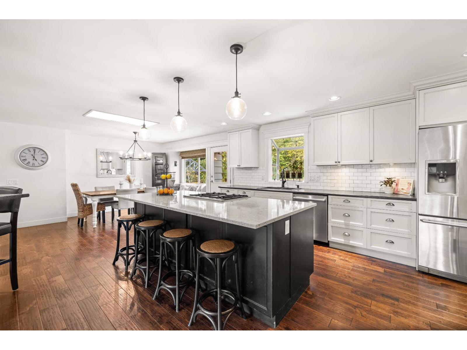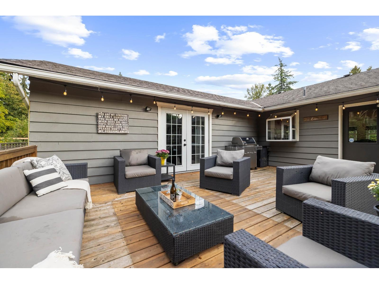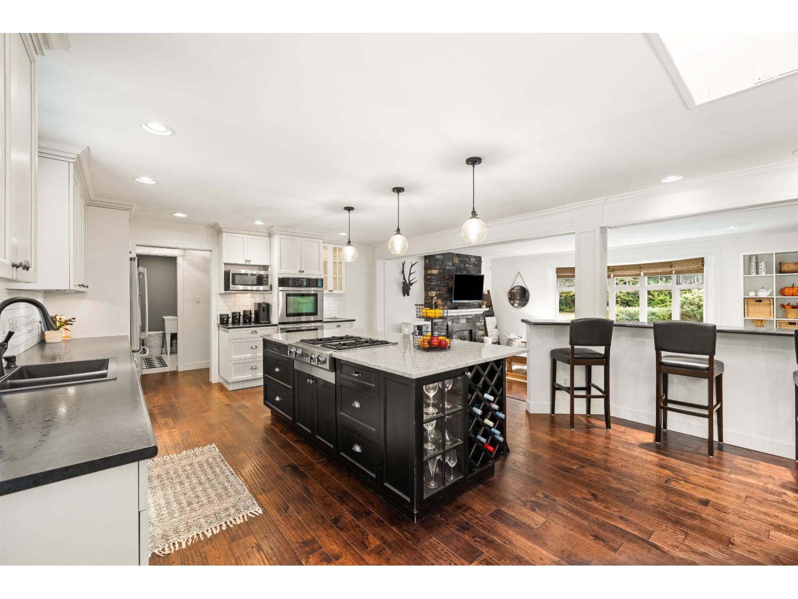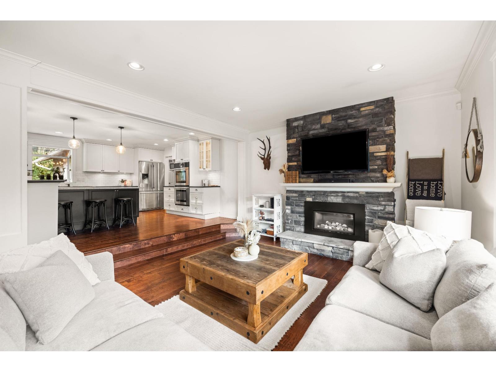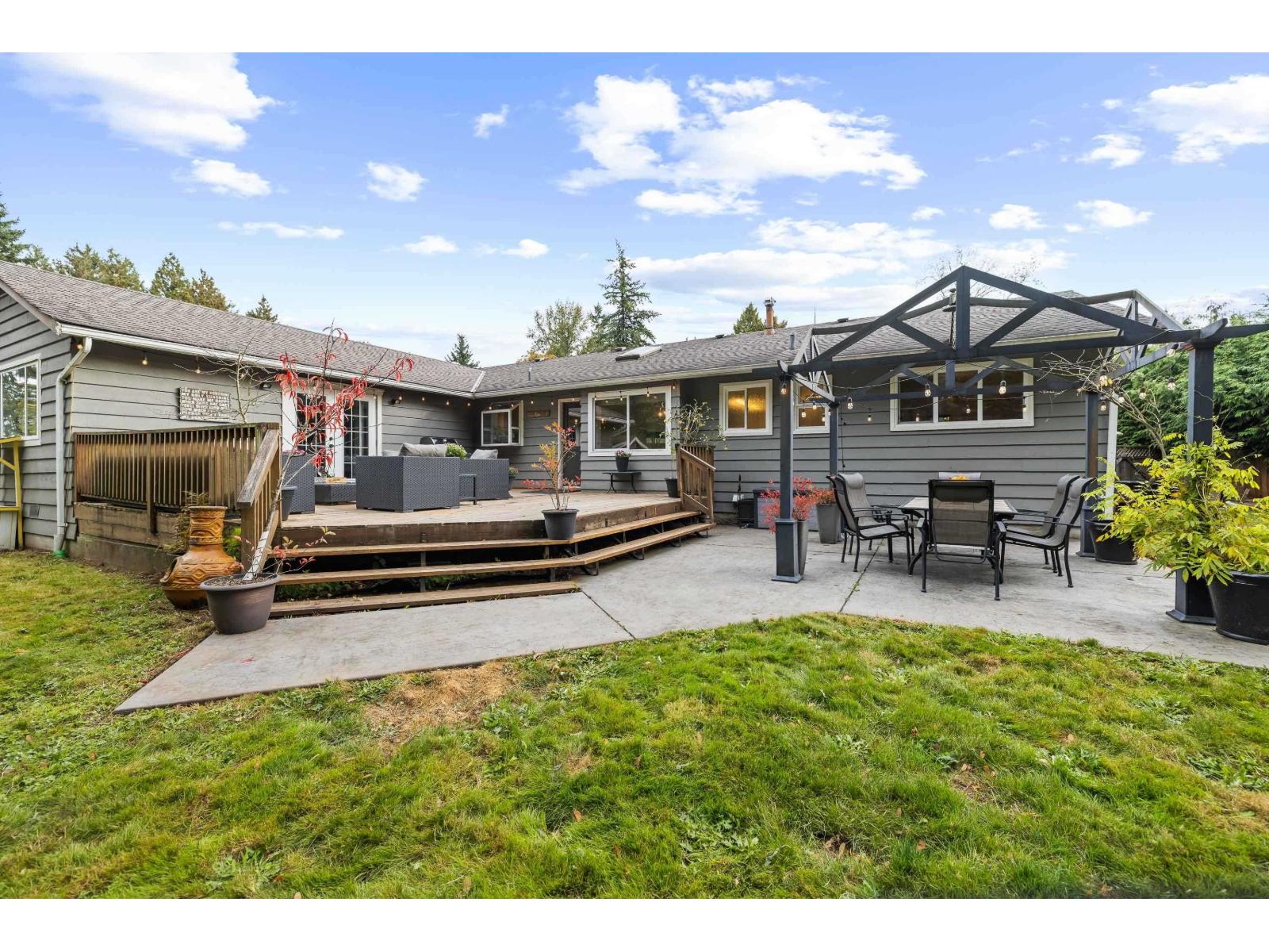 Prime strategic holding opportunity with future potential. Buyers should confirm any development possibilities directly with the City of Langley. This beautifully updated 3 bed, 3 bath rancher is tucked away on a quiet cul de sac and sits on an expansive lot of over 12,000 sqft, backing onto a peaceful greenbelt. The bright and functional kitchen offers plenty of cabinetry, stainless steel appliances, and a large island ideal for everyday living or entertaining. The living room features a cozy fireplace, while the dining area opens onto a private patio and fully fenced backyard. A converted garage adds valuable living space, creating a generous family room. The primary bedroom includes a walk in closet, a glass enclosed shower, and its own gas fireplace. (id:64528)