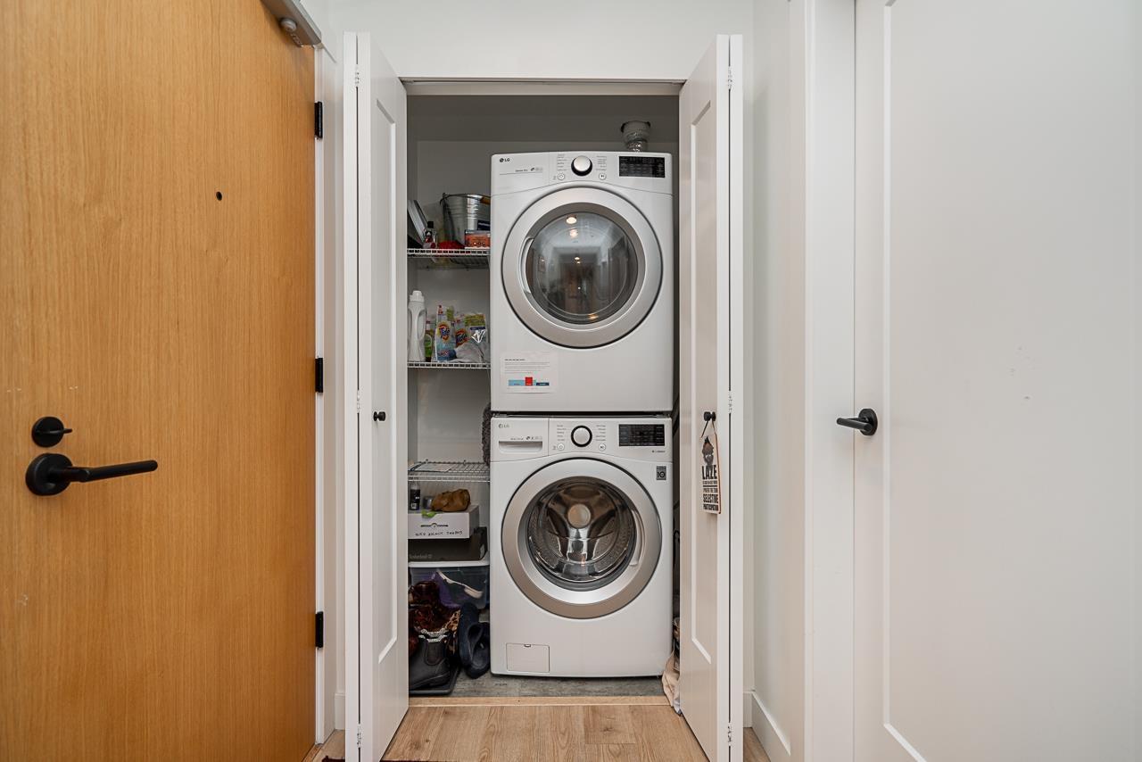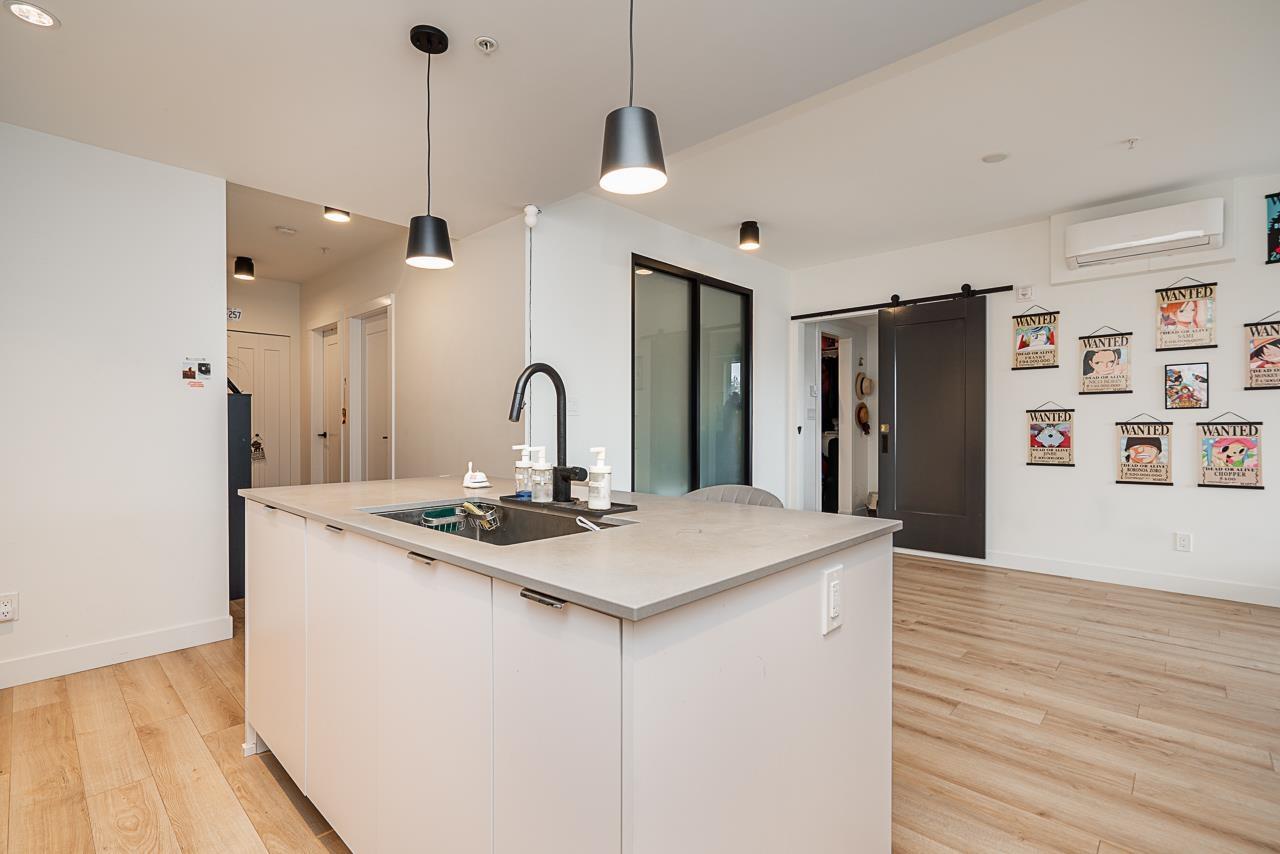 Open House Sunday 1st March 1-3 pm Welcome to Upper Montrose! This coveted 3-bed+Den, 2-bath, 1,247 SF unit features a large deck, soaring 9' ceilings, and a stylish brick feature wall. The chef-inspired kitchen boasts quartz counters, a spacious island, stainless steel appliances, under-cabinet lighting, and a gas cooktop. Enjoy year-round comfort with built-in A/C. The primary bedroom offers a spa-like ensuite with dual sinks and a glass walk-in shower. Building perks include a boardroom with workstations, a courtyard with a playground, and a shared garden. Located in historic downtown Abbotsford, you're steps from trendy shops, restaurants, breweries, and the farmers market. Includes 2 parking and is pet-friendly (2 pets allowed with restriction). (id:64528)