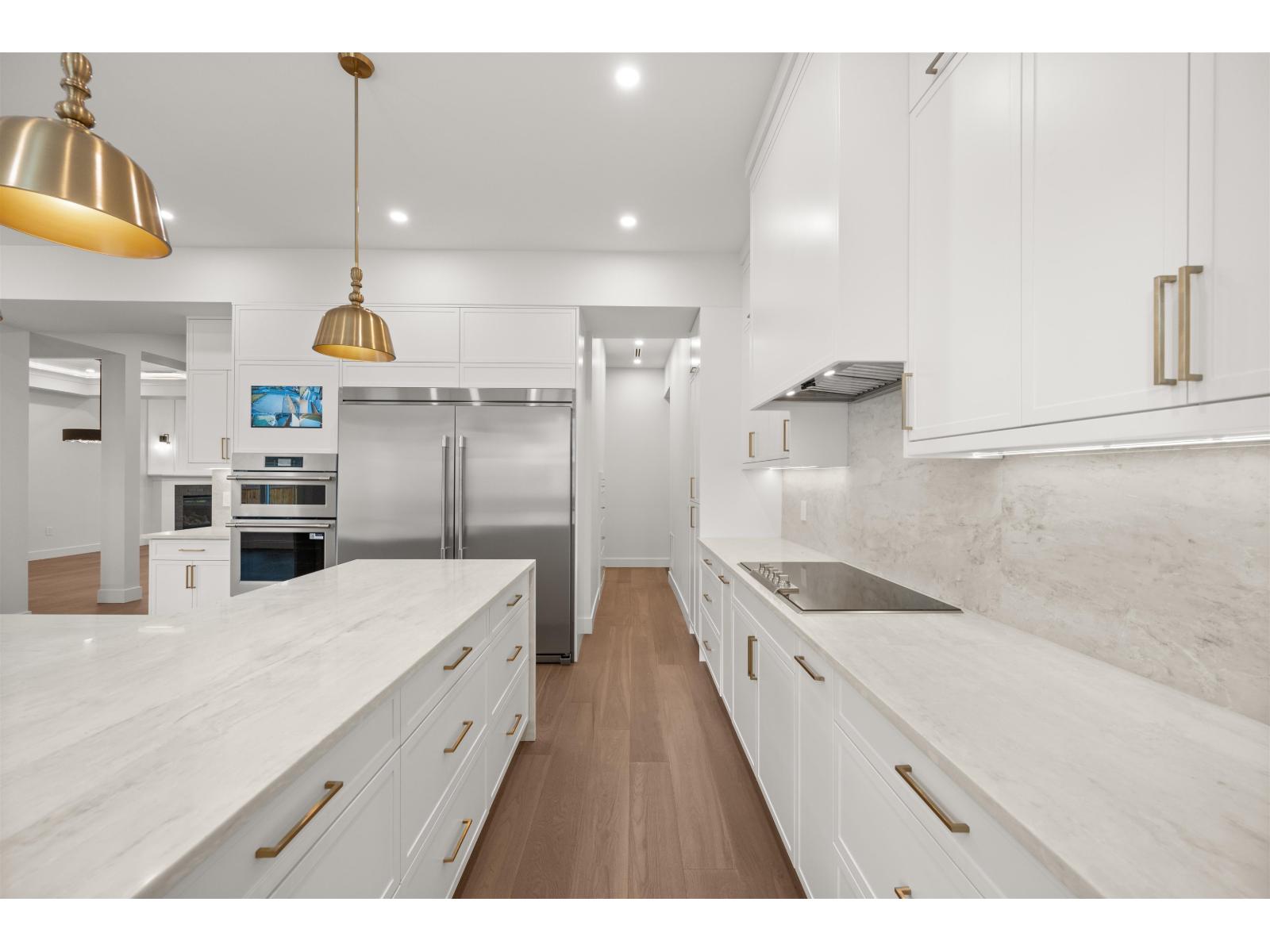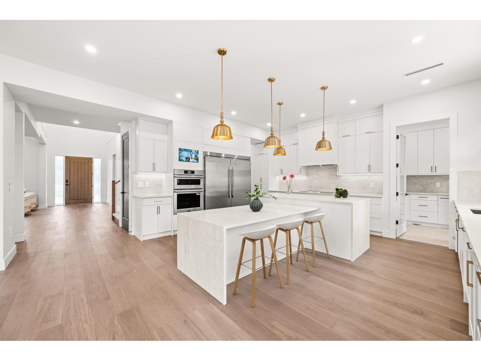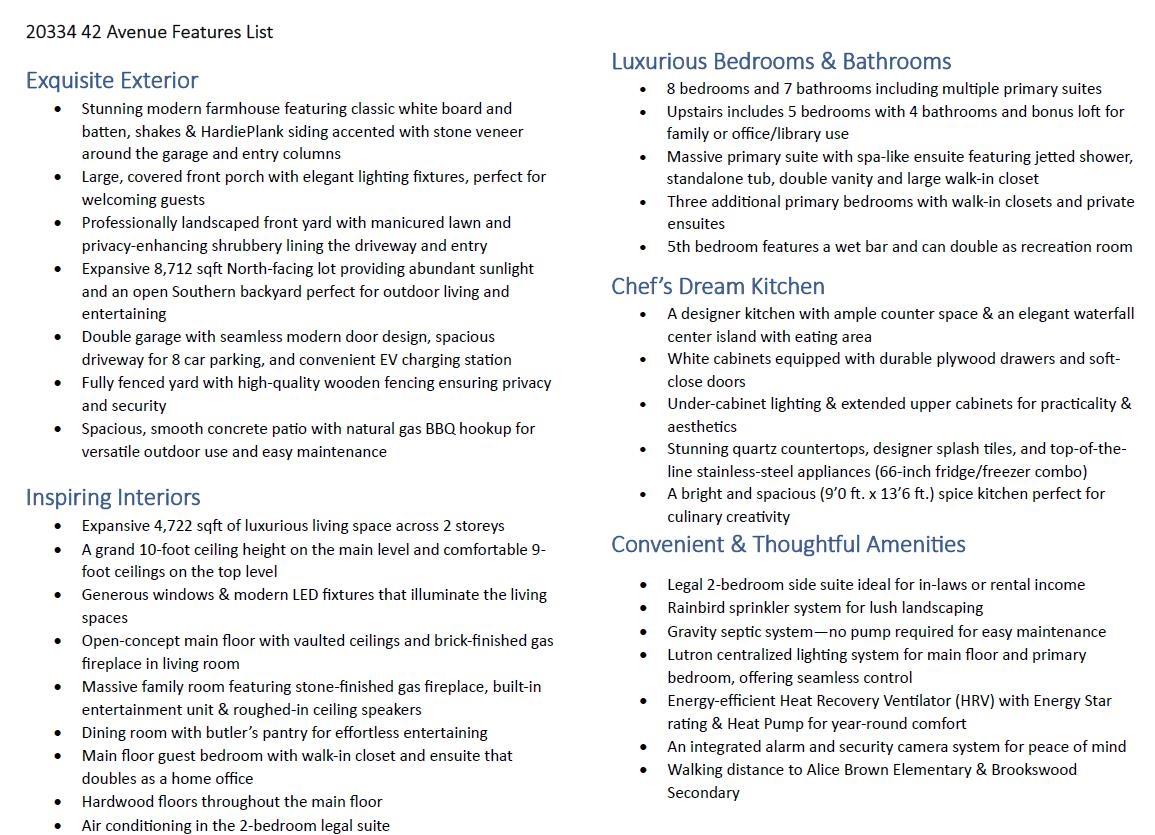 Modern 2 storey farmhouse in Brookswood, 4,722 sqft, 7 beds + 7 baths, on 8,712 sqft lot with southern backyard. Open concept layout w/vaulted ceilings & gas F/P in living room, dining room, family room with stone finish gas fireplace & built-in entertainment unit. Beautiful kitchen w/quartz countertops, 66-inch fridge/freezer, large waterfall island w/eating area, ample cabinetry & large spice kitchen. Main floor bedroom has ensuite or can be office. Upstairs features 4 beds + 4 baths: large master bedroom w/large walk in closet & spa-like ensuite w/jetted shower & tub, 3 bedrooms w/walk-in closets & ensuites + huge rec room w/wet bar & bonus loft. Legal 2-bedroom airconditioned side suite, heat pump, sprinklers, hardwood floors & 8 cars parking! Walk to both French Immersion Elementary & High Schools. Open House: Saturday & Sunday (Feb 28 & March 1) from 2-4pm! (id:64528)