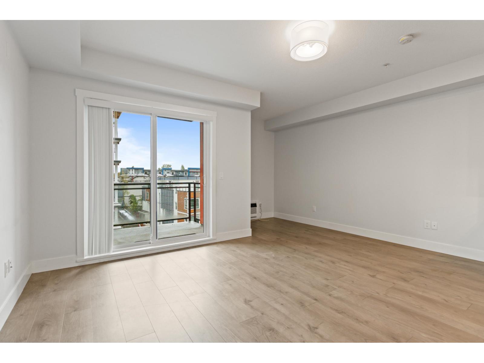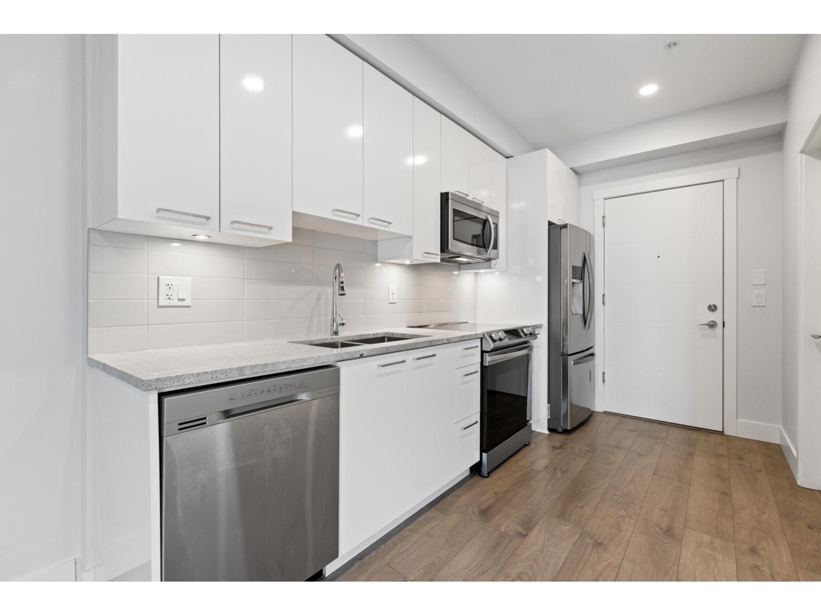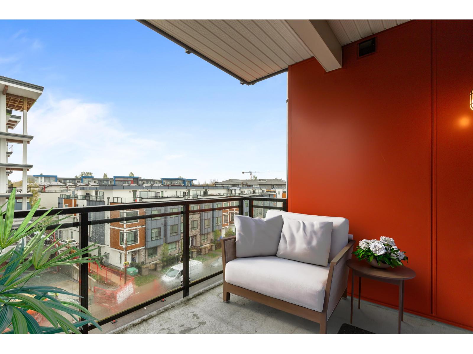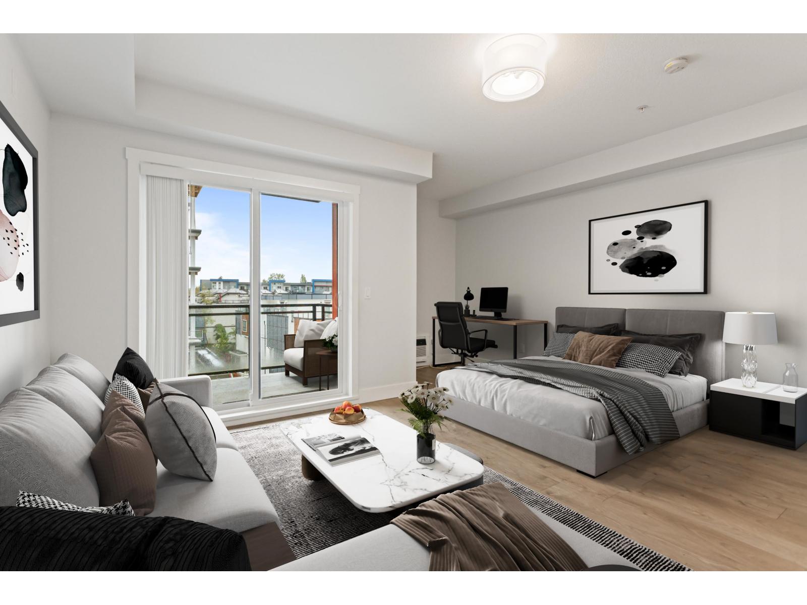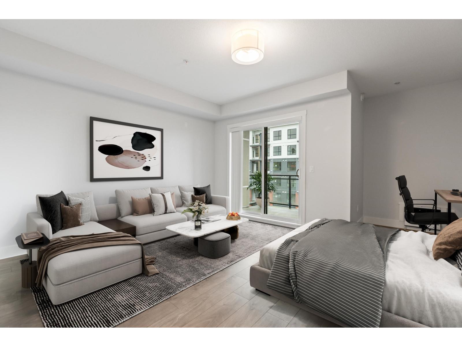THE WESLEY: Large studio suite with a great layout, full-sized appliances and a large covered deck perfect for entertaining, lounging or barbequing any time of year. Plenty of storage available as the unit has a dedicated storage locker, bike locker and parking space. The pet/ rental friendly building boasts many amenities including meeting rooms, yoga studio, study spaces, etc and is located alongside the lush and serene Brydon Creel, and surrounded by green space. Just a short walk to shopping, dog parks, transit (including upcoming SkyTrain), local restaurants, brewpub, cidery and wineries, as well as close to Newlands Golf Club and KPU, this condo boasts a great balance between urban living and nature's tranquility. Great for investors or first-time buyers! Quick possession available! (id:64528)