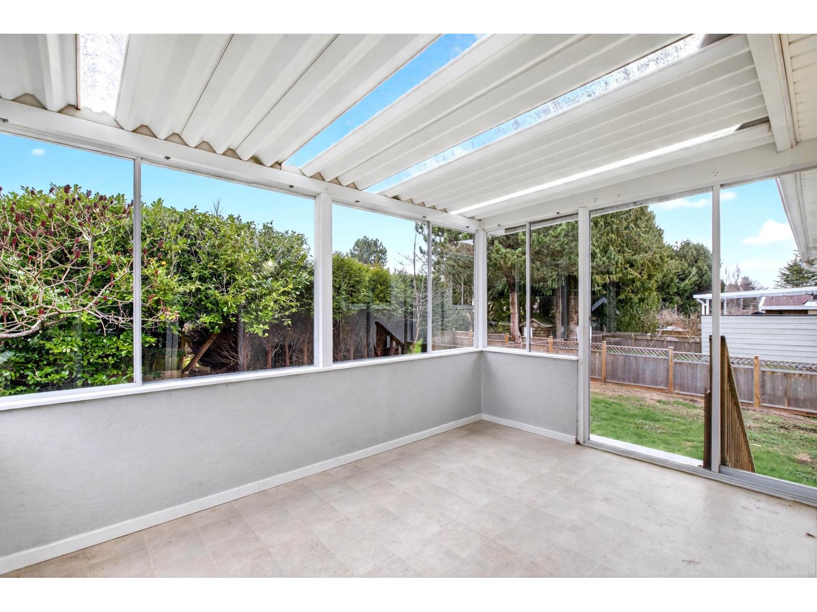 Fantastic value. This well-maintained Split Level-Entry home offers over 1,600 sq. ft. on a large west-facing backyard lot. Bright main level features a spacious living room with fireplace, laminate flooring, and large picture window, flowing into the dining to a covered sunroom. Functional kitchen with ample cabinetry. Lower level includes a generous recreation room, additional bedroom, and full bathroom, offering flexibility for extended family. Fully fenced 7,223 sq. ft. yard with sunroom patio and mature trees. One block to Jessie Lee Elementary and close to shopping and transit. (id:64528)