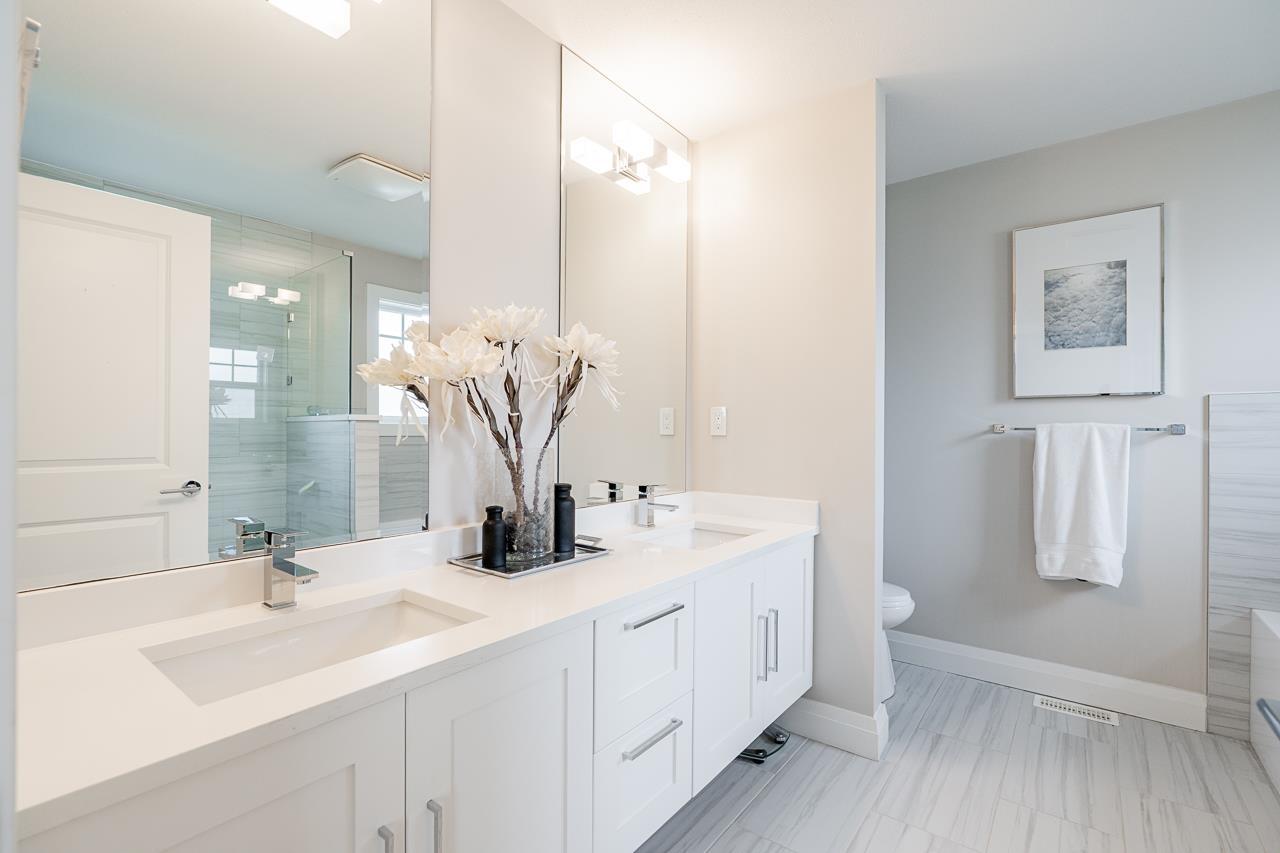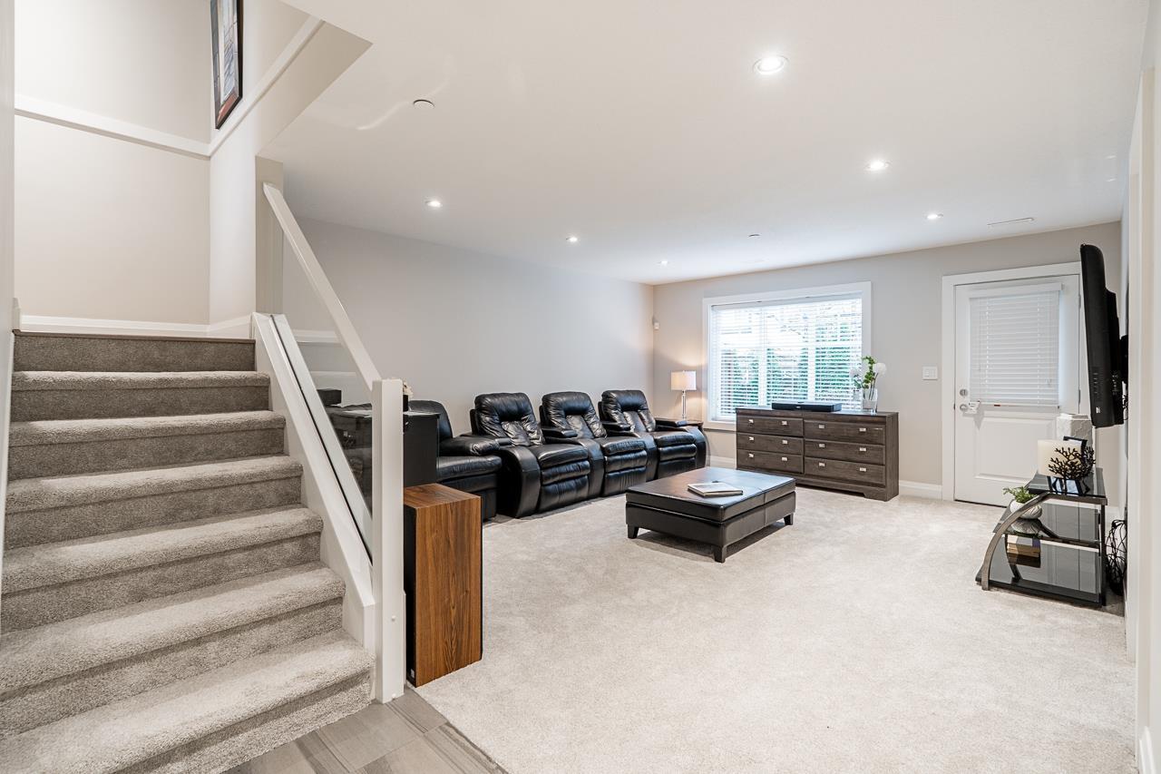 Open House Saturday 7th March 12PM-2PM. Why settle for a townhome when you can have a house-like masterpiece? This immaculate Former SHOW HOME offers the ultimate in executive living, spanning a massive 2,828 sq ft with 4 bedrooms and 3 1/2 bathrooms. It still shows like the day it was built! Step inside to a world of contemporary style, featuring soaring ceilings, central A/C, and large windows that flood the open-concept living and dining areas with natural light. The chef's kitchen is a culinary dream with modern S/S appliances, a massive island, and endless storage. The lower level is a showstopper: magnificent 10' ceilings, a huge rec room, plus a private bedroom and full bath with a separate entry-perfect for guests or extended family. Complete with a double garage, private fenced yard, and upper balcony, this is a RARE GEM in a vibrant Langley neighborhood! (id:64528)
