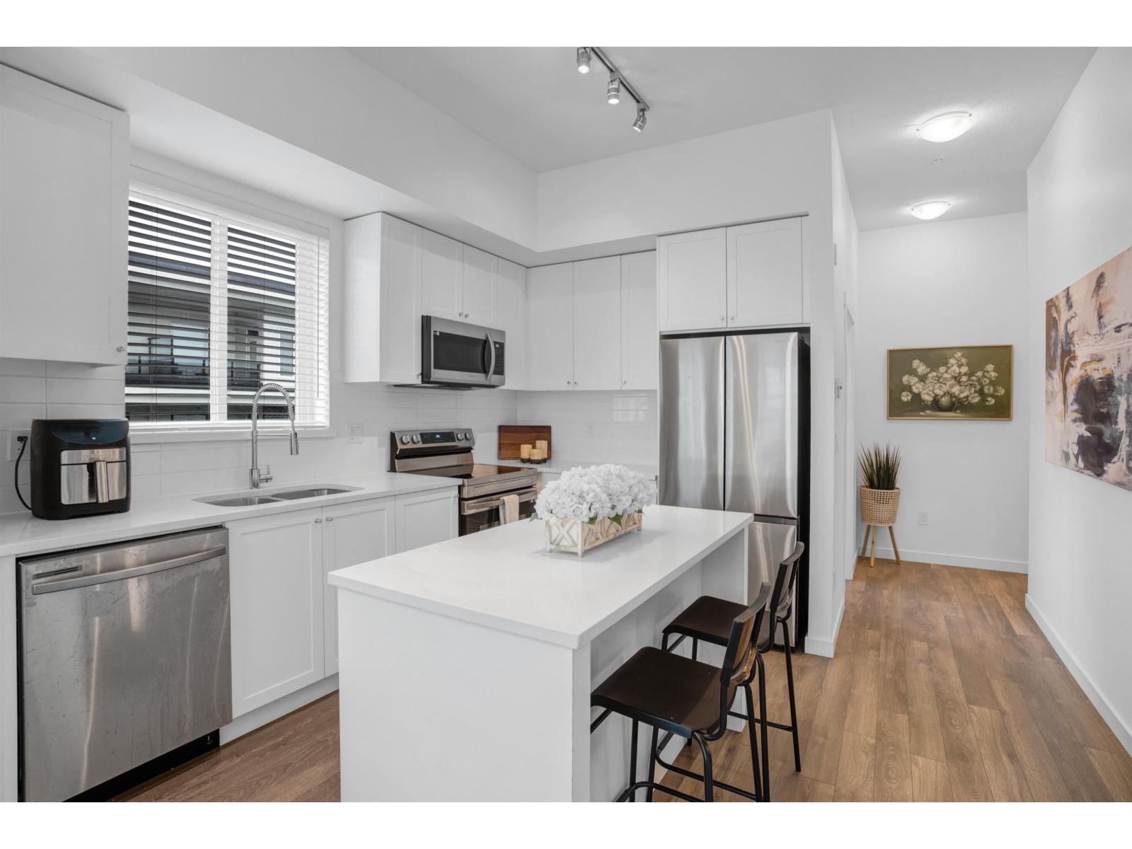 Welcome to your new home in Fleetwood Village, Surrey! This 3-year-old 3-bedroom, 2-bath upper unit by Dawson Sawyer features modern stainless steel Samsung appliances, quartz countertops with island, soft-touch cabinetry, and a spacious open-concept living and dining area. Enjoy hardwood laminate flooring with cozy bedroom carpets. The community offers 36,000+ sq. ft. of exclusive indoor and outdoor amenities, including an exercise centre and garden. Comes with 1 parking, 1 storage, and 2-5-10 home warranty. Located in Surrey's vibrant town centre-steps to Walnut Road Elementary, Fresh St. Market, Fleetwood Park Village Shopping, Fraser Highway, shopping, dining, entertainment, and the future SkyTrain station. Don't miss it! OPEN HOUSE Sat-Sun 2-4pm. (id:64528)