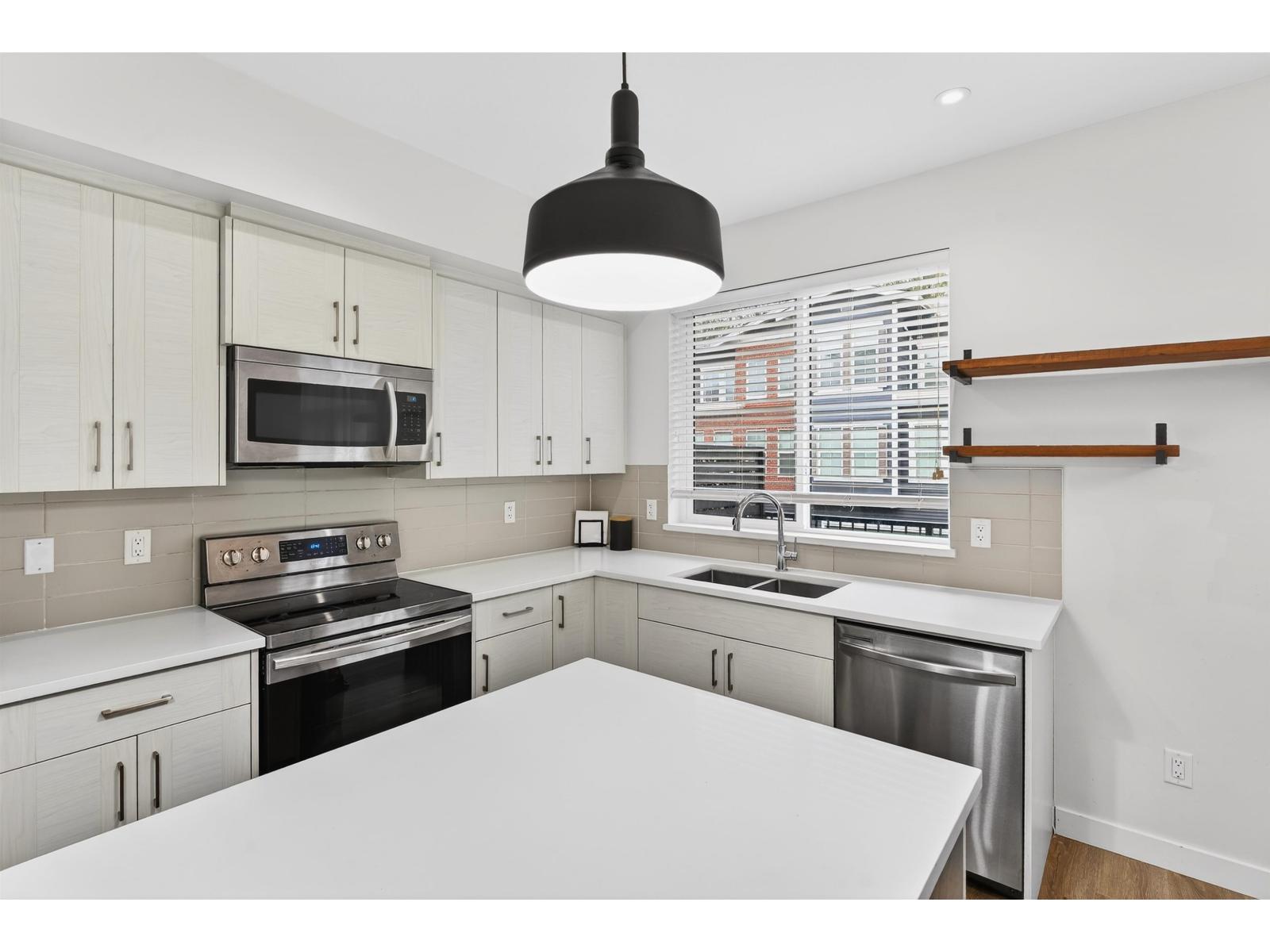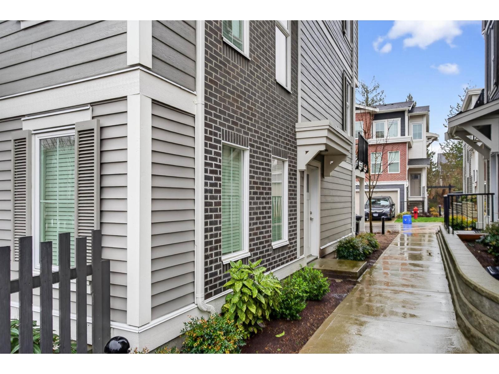 Modern corner townhome in the desirable Latimer Heights community offering functional layout with 3 bedrooms, 2.5 bathrooms, and a spacious bright Den. The home features 9-ft ceilings on the main floor, a stylish contemporary kitchen, dedicated dining area, and a bright balcony perfect for morning coffee or outdoor dining. A sun-filled Den adds flexibility and can easily serve as a home office, guest space, or additional bedroom. One of the home's most impressive highlights is the private rooftop terrace showcasing beautiful mountain views, complete with a gas hookup for BBQs and plenty of room for entertaining. Additional comforts include air conditioning, a side-by-side double garage, and extra parking on the driveway fitting 2 cars. The property is well-maintained, move-in ready, and benefits from low strata fees. Conveniently located near schools, parks, walking trails, Carvolth Bus Exchange, and Langley Events Centre, this home combines lifestyle, comfort, and strong value in a highly desirable area. (id:64528)