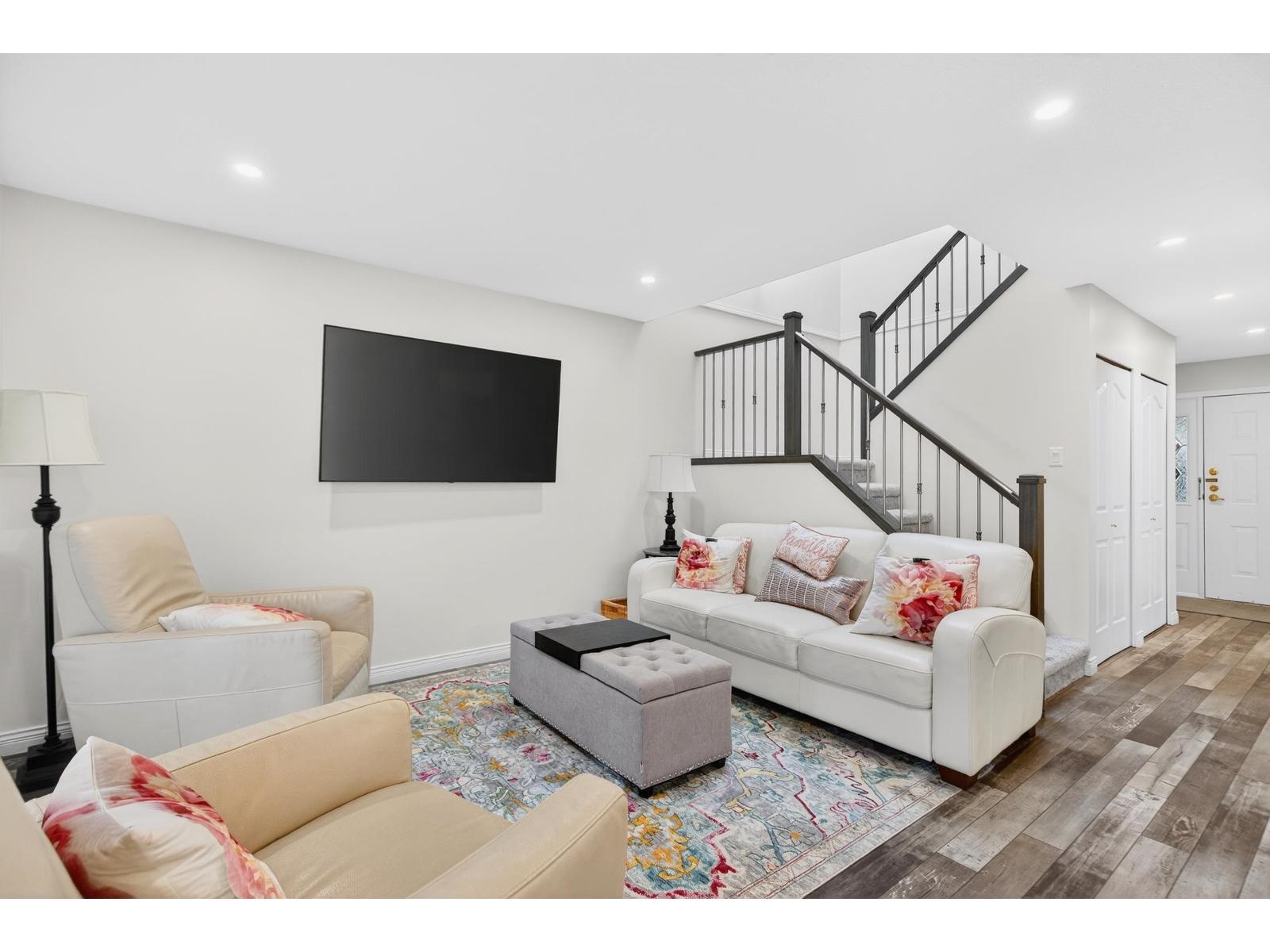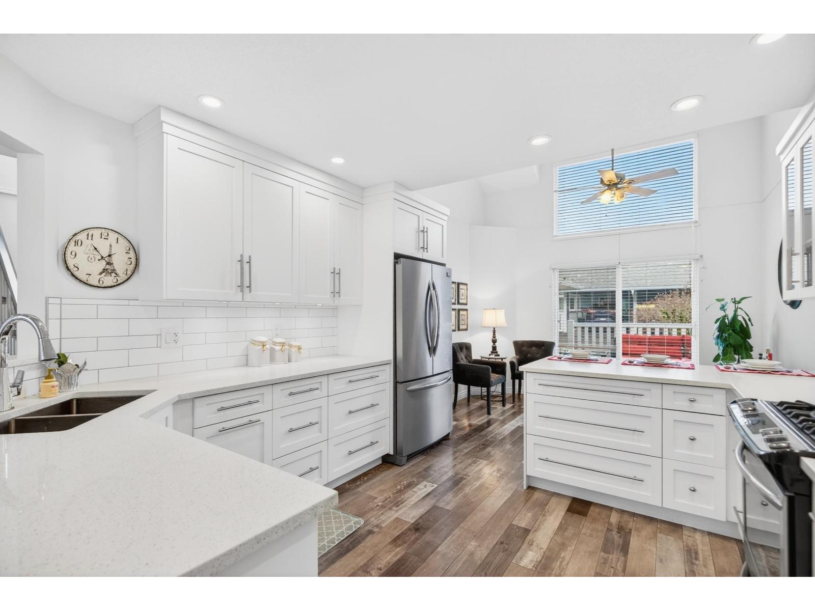 BEAUTIFULLY UPDATED UNIT - A MUST SEE! Discover easy living at Crown Point Villas, a popular 55+ community in East Abbotsford. This thoughtfully updated two-storey townhouse offers 2 bedrooms, 3 bathrooms, and a bright, functional living space. Recent updates throughout make this home truly turnkey and ready for immediate occupancy. The generous primary bedroom includes a large ensuite and a walk-in closet with natural light. Relax or entertain with both front and rear patios, plus a fully enclosed solarium that adds valuable extra living area. Residents enjoy access to an impressive clubhouse and a well-managed, friendly complex designed for a relaxed, low-maintenance lifestyle. Open house Sunday, March 1, 12-2pm. (id:64528)