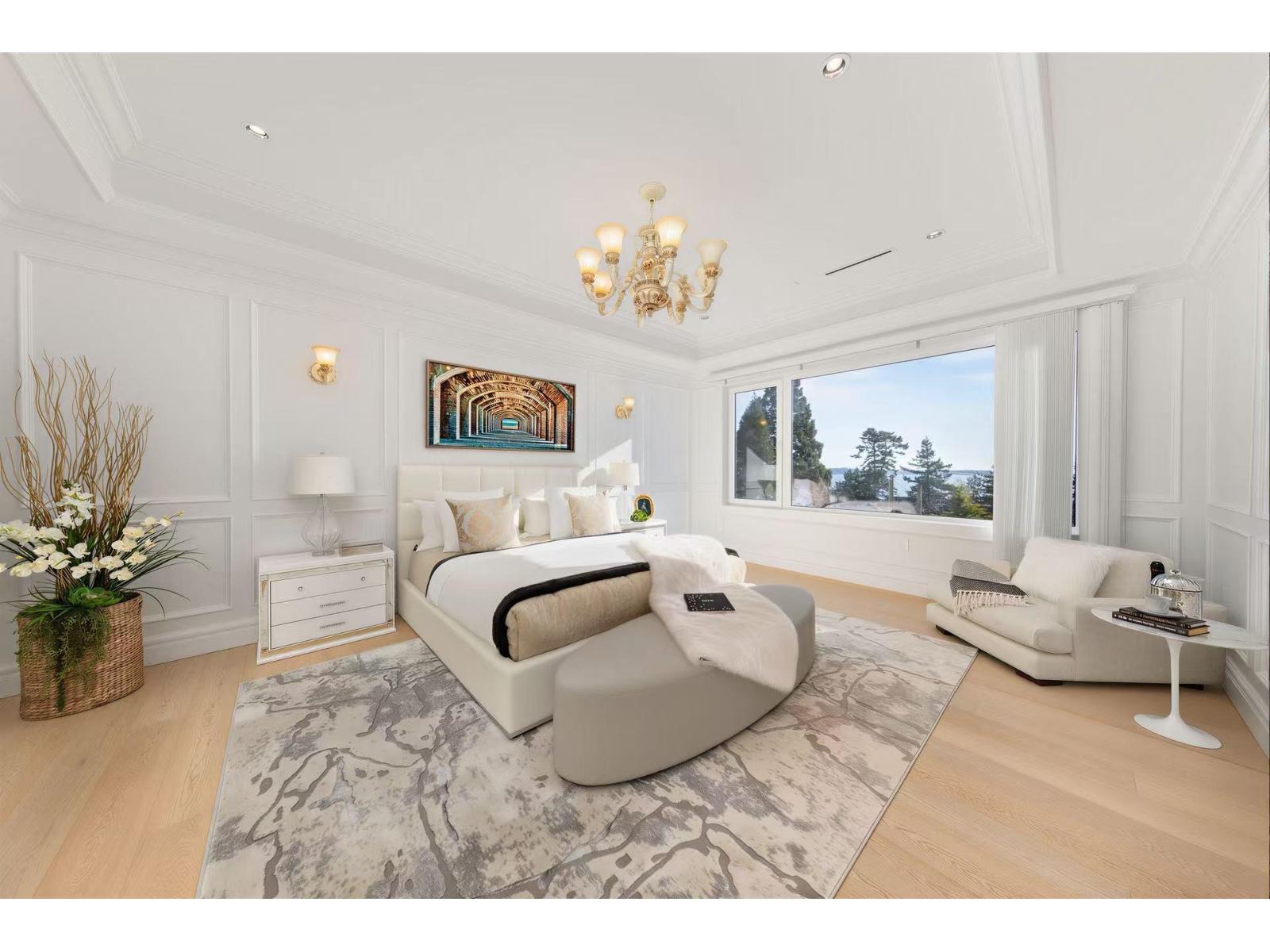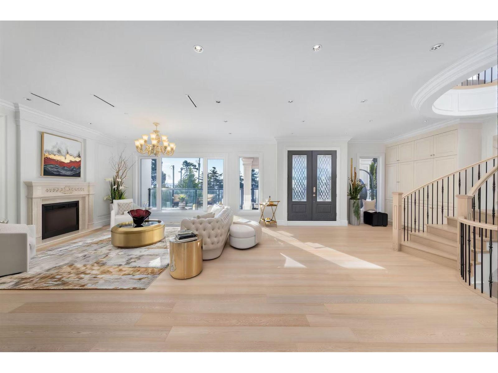 Exceptional custom-built 3-level ocean-view home in one of White Rock's most prestigious enclaves. Offering 7,000 sqft of refined living with ocean views from principal rooms on two levels. Main floor features open living and dining areas, gourmet chef's kitchen with premium appliances, separate wok kitchen, private office, and a main-floor primary/second master with patio access. Upper level offers three ensuited bdrm, including a primary suite with sitting area, two walk-in closets, and spa-inspired ensuite. Lower level includes a rec/media room, wet bar, gym, & guest bdrm. Expansive sun decks on main and upper levels total approx. 1,600 sqft (not included). Fully gated 13,939 sqft south-facing lot. Radiant heating, A/C, HRV, double garage, ample parking. Bayridge & Semiahmoo catchment. Open house Feb 28, Mar 01 (Sat, Sun) 2 - 4 pm. (id:64528)