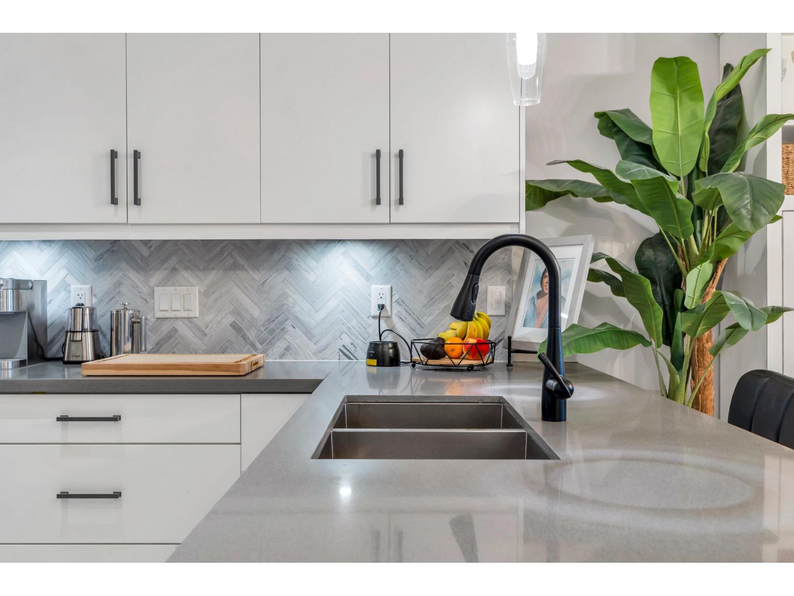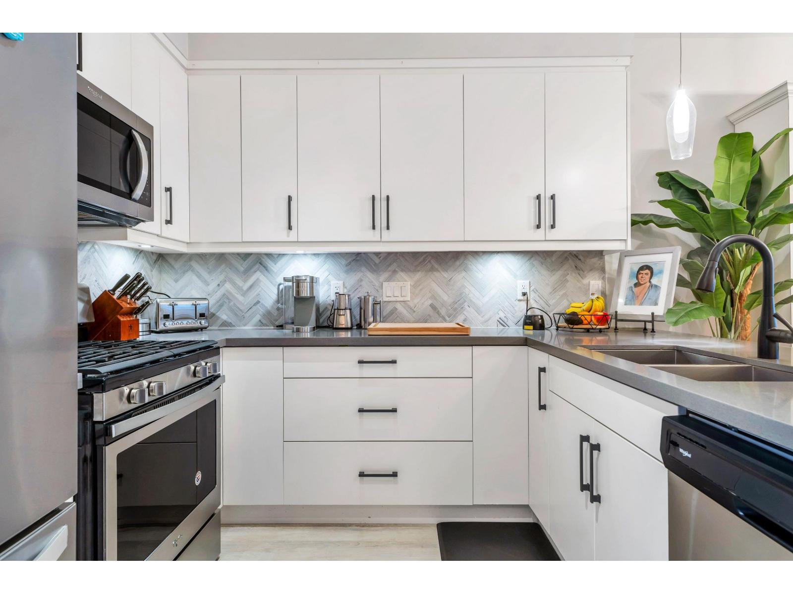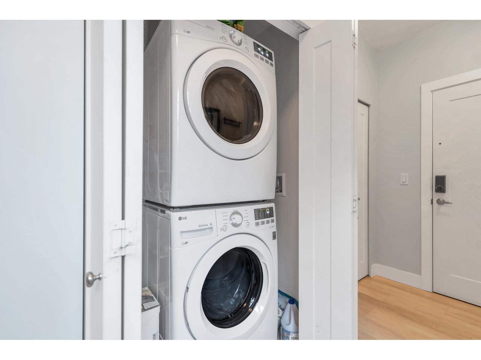 At 1108Sq.Ft, this private corner unit with no neighbors on either side is the largest floor plan in the Building, and offers 2 private bedrooms, 2 full baths, over-height 9ft ceilings, premium S/S appliances, gas stove, quartz countertops, shaker cabinets w/soft close doors, new premium laminate floors & fresh paint. Nestled in nature's expansive greens along the Nicomekl River, with sweeping views of the coastal mountains off the 2 balconies. Crescendo is a collection of luxury condos situated in South Surrey, minutes away from Crescent Beach. With easy access to King George Hwy, Hwy 99, Hwy 91, the US border, Shops at Morgan, Golf Courses, Park & Ride, & Restaurants, which makes this a very desirable location. This unit also comes with 1 underground parking stall & storage locker. (id:64528)