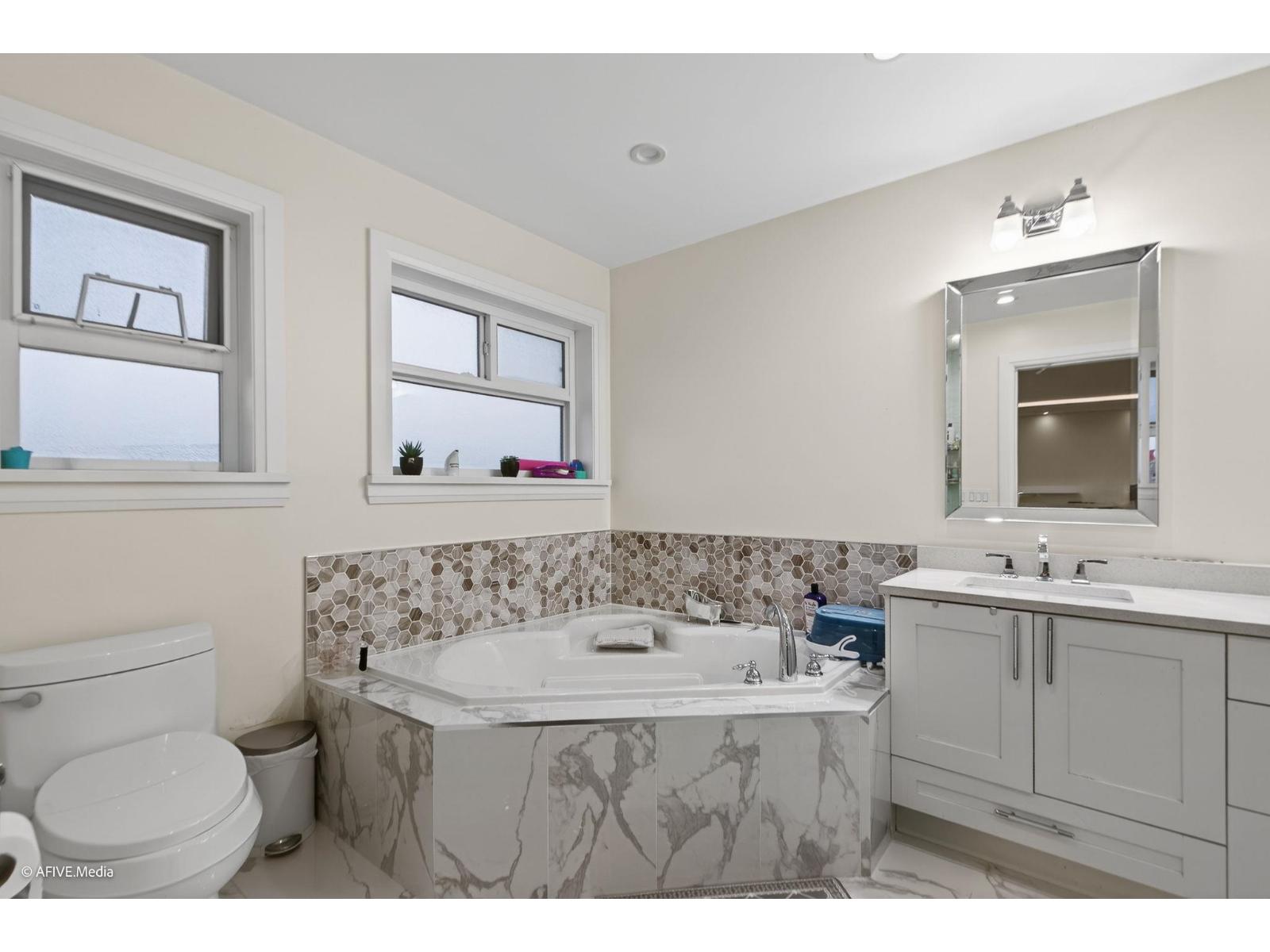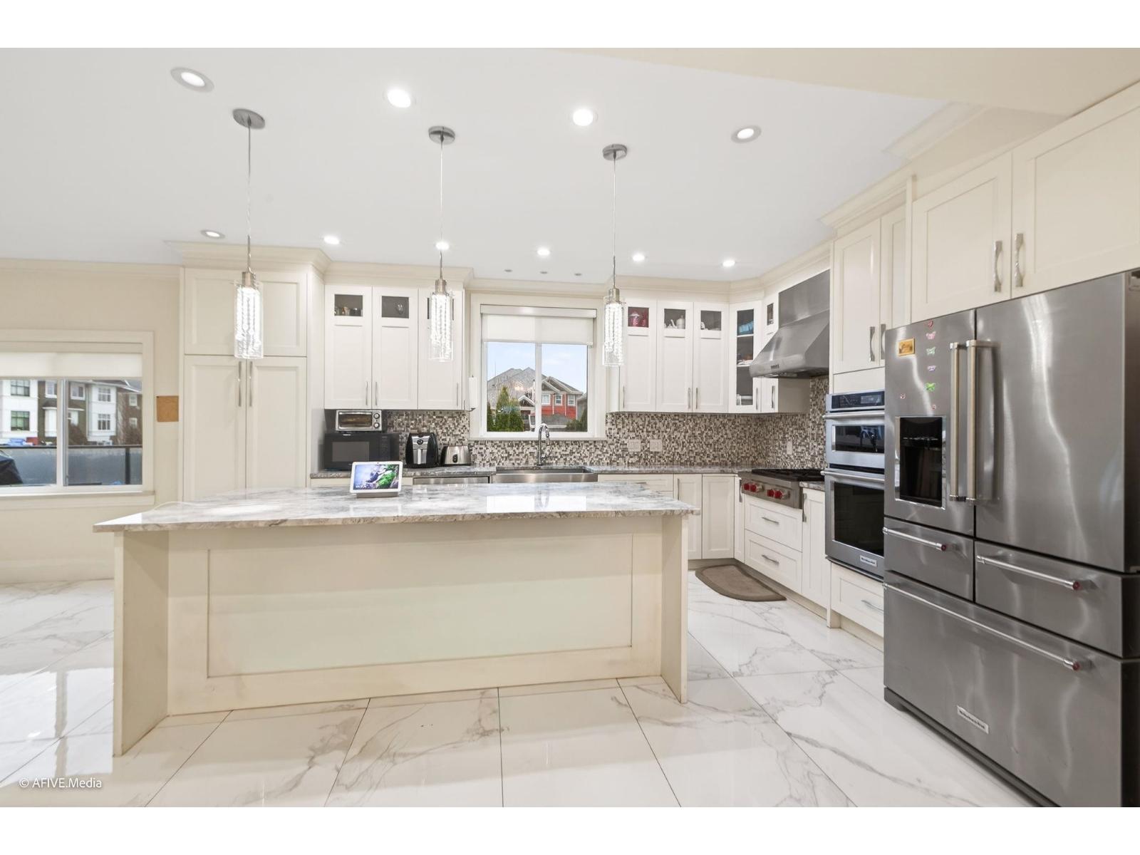Your dream family estate awaits on a quiet cul-de-sac in prestigious Aberdeen. This 2010-built custom gem boasts TONS of high-end upgrades on a rare 11,500 sq ft lot! Gourmet kitchen with marble counters, Wolf gas range, stainless appliances, and seamless access to a huge deck via accordion sliders. Spacious layout includes 5 upper bedrooms, basement 1-bed suite, oversized rec room with bar, and bright sunroom for all-season enjoyment. 8 parking spots (double garage + driveway), private cul-de-sac setting, and proximity to schools/shopping/highway. Ideal for multi-generational living or entertaining-don't miss this exceptional value in a top Abbotsford location! (id:64528)