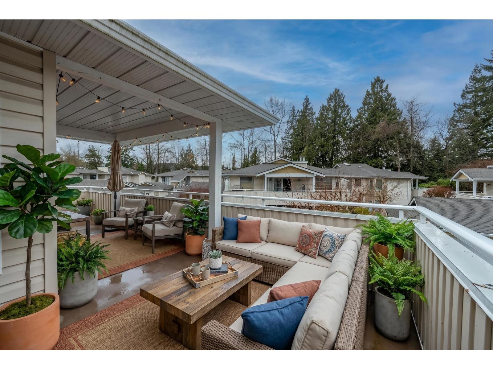 Welcome to Glenwood Village, a gated community in the heart of Guildford with no age restrictions and quick access to Highway 1. Steps to shopping, parks, schools and transit, this bright and spacious top-floor end unit townhouse features an excellent, well-designed layout with 2 beds and 2 baths. The generous primary suite offers a large walk-in closet and ensuite. Enjoy a large kitchen, spacious open living and dining areas filled with natural light, gas fireplace, radiant in-floor heating, and A/C. Recent upgrades include fresh paint and hot water on demand. Includes in-suite laundry, storage locker, and large balcony. Book your private showing today! (id:64528)