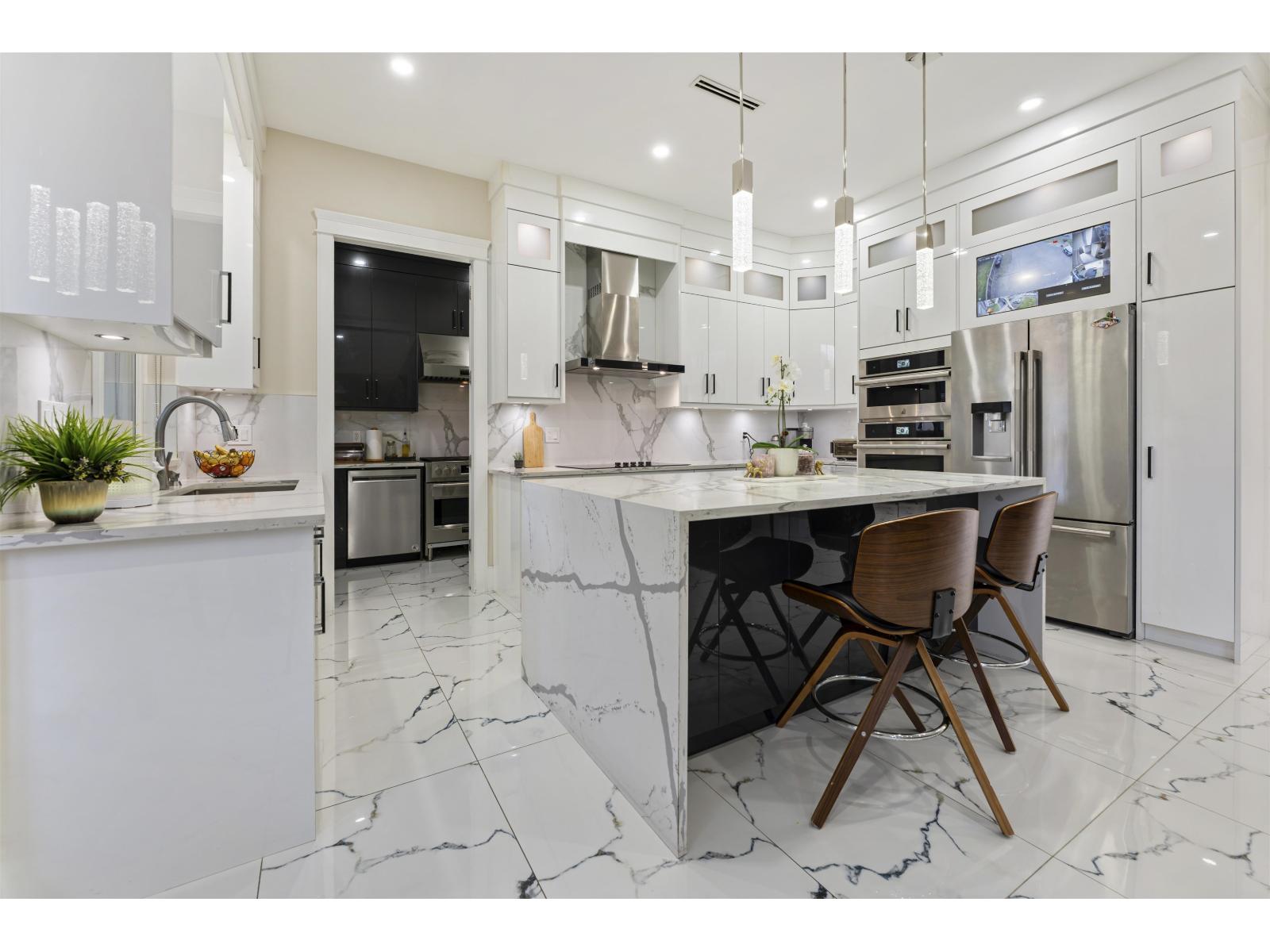 Luxury custom-built home offering 9-bed and 9-bath, located in the prime, family-friendly Scottsdale area of N. Delta. This impressive 2-storey home with basement features 5,332 sq. ft. of well-designed living space on a 7,452 sq. ft. lot. The main floor showcases spacious living and family rooms, a chef-inspired kitchen with premium Sub-Zero appliances, a separate spice kitchen, a bedroom with ensuite, private office, and laundry room. Radiant heating and air conditioning throughout all three levels. Upstairs offers four generously sized bedrooms, each with its own ensuite. The basement includes a large theatre room with wet bar, a legal 2-bedroom suite, with another 2-bed unauthorized suite. Close to schools, parks, and amenities. Open house Sun, March 1, 2-4pm. (id:64528)