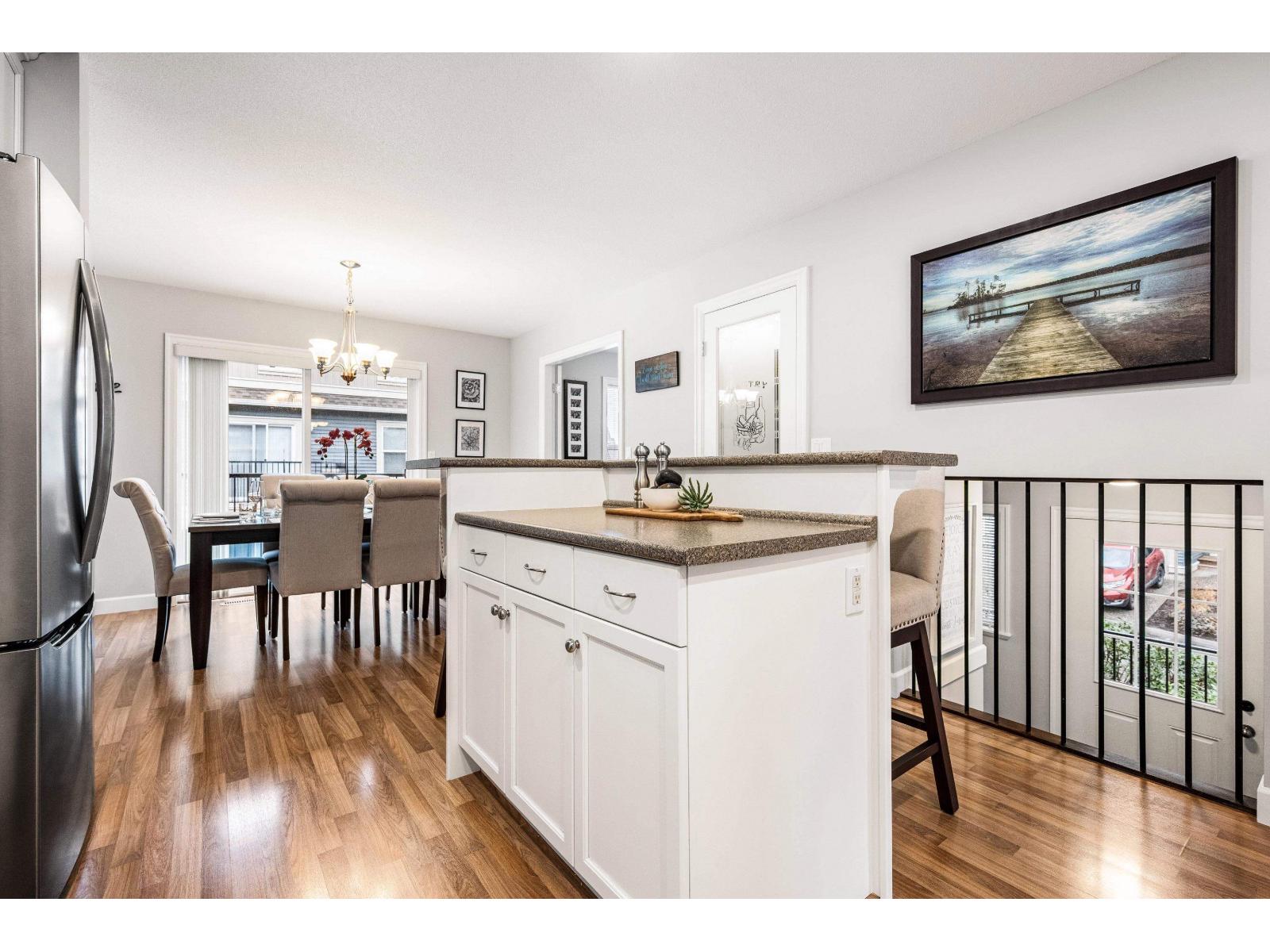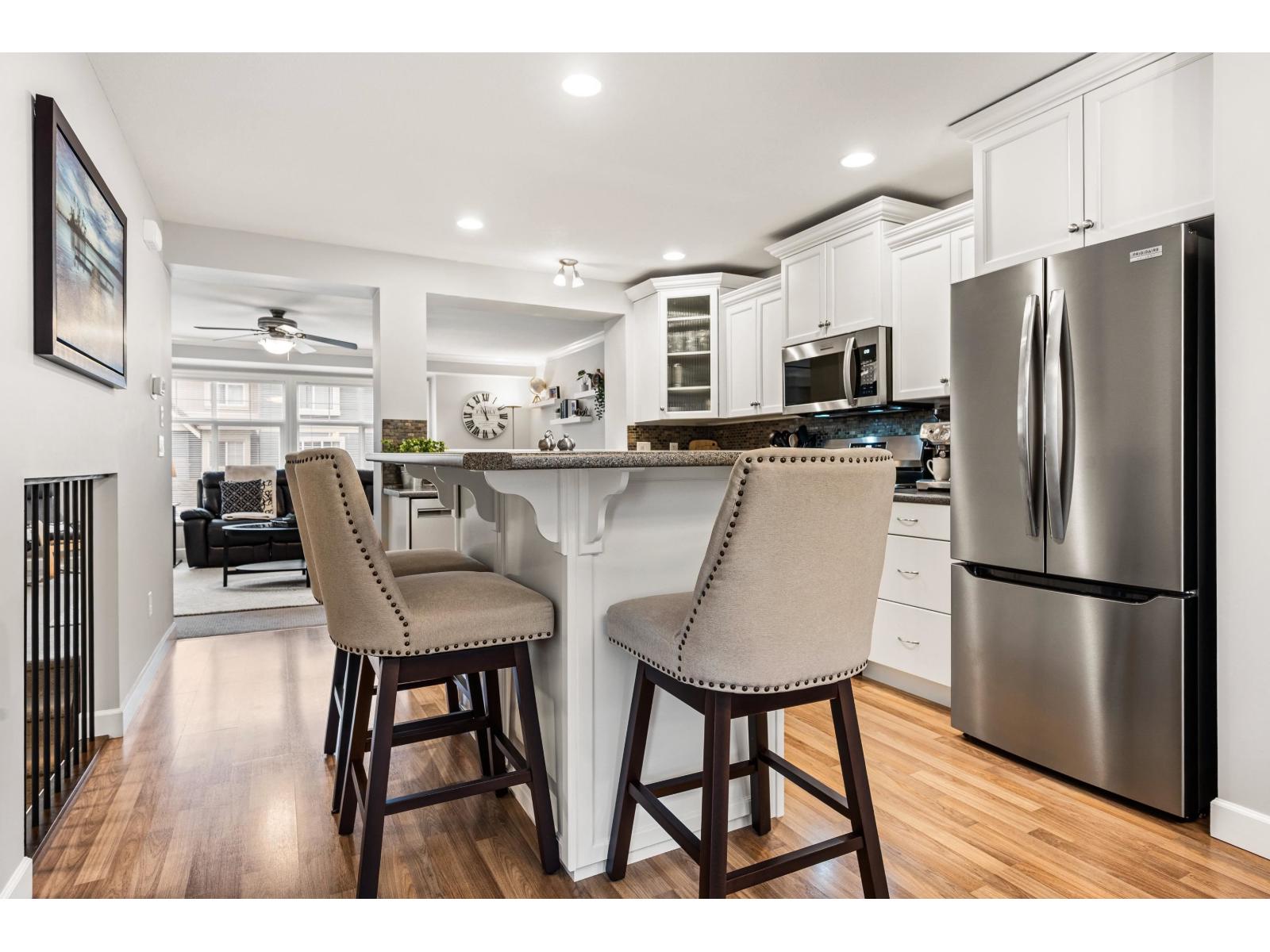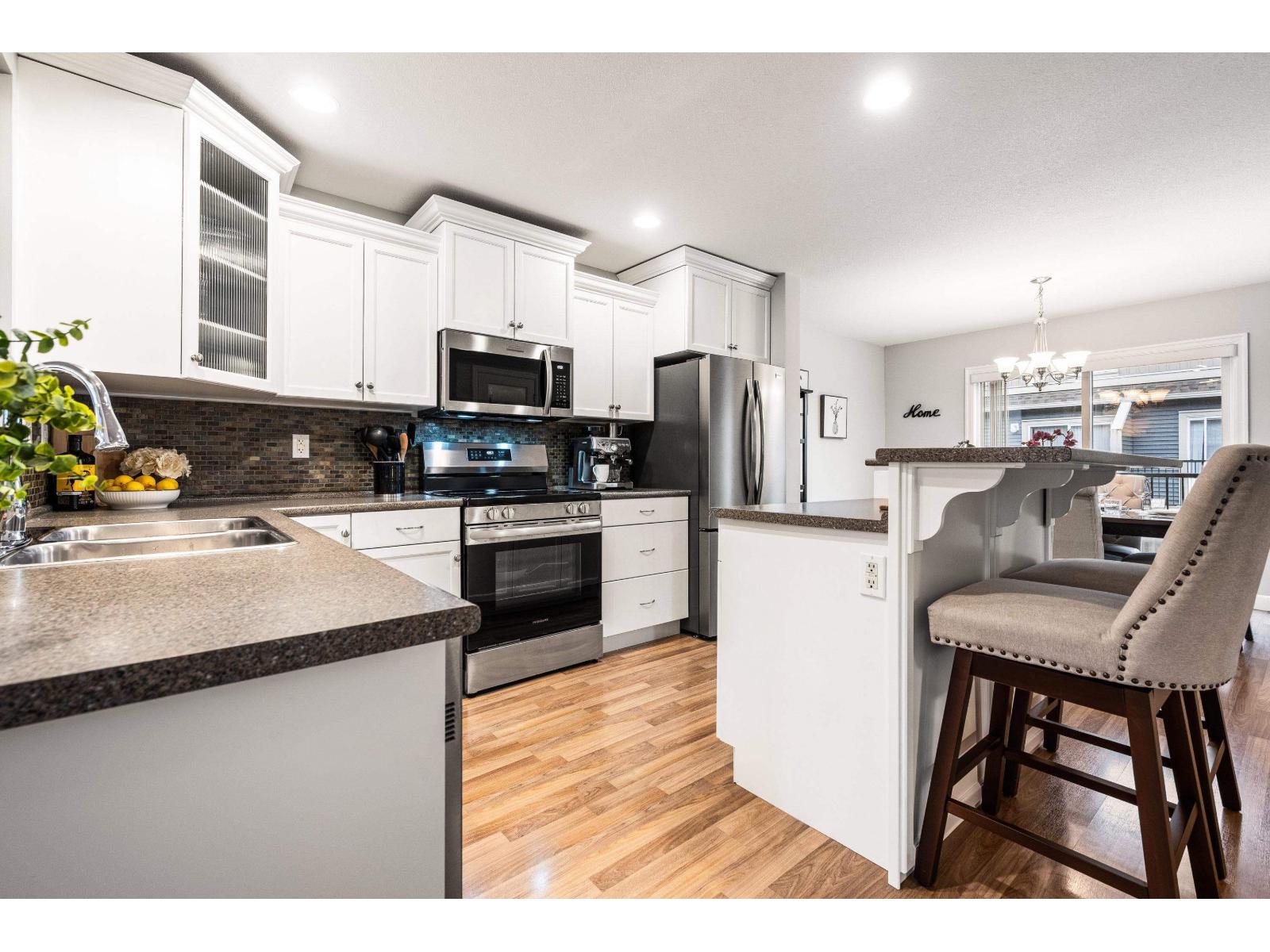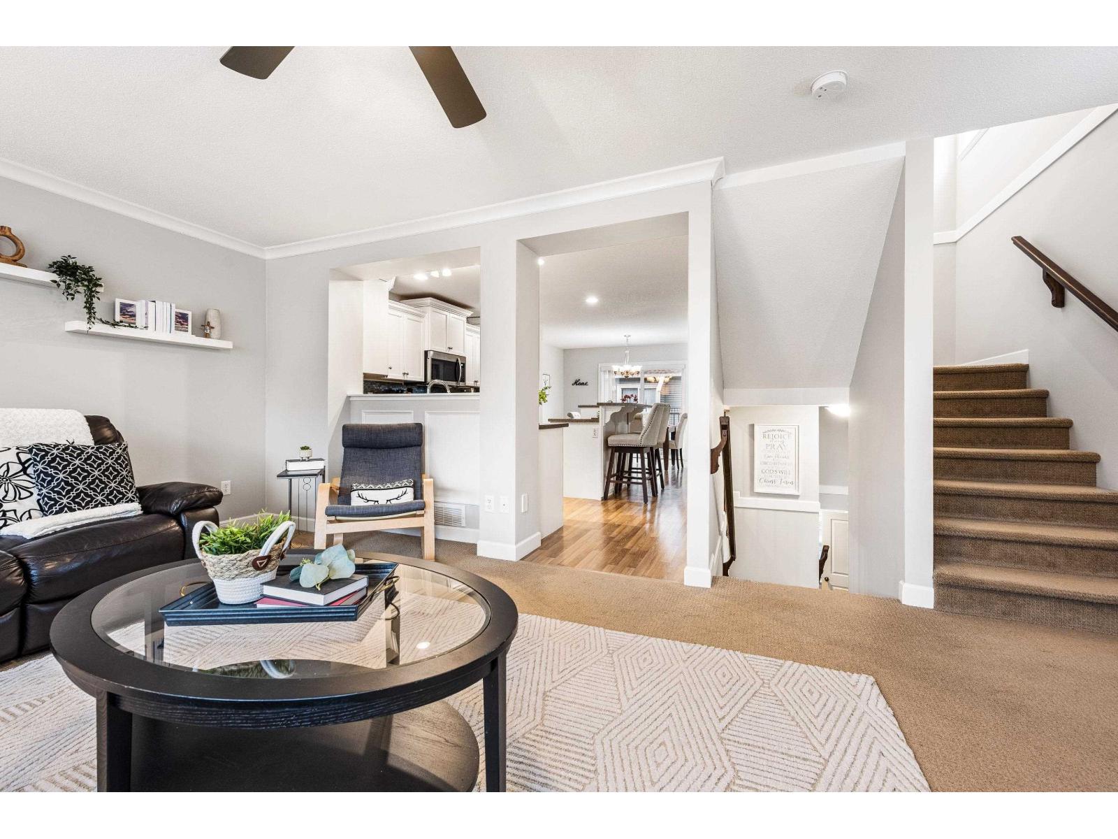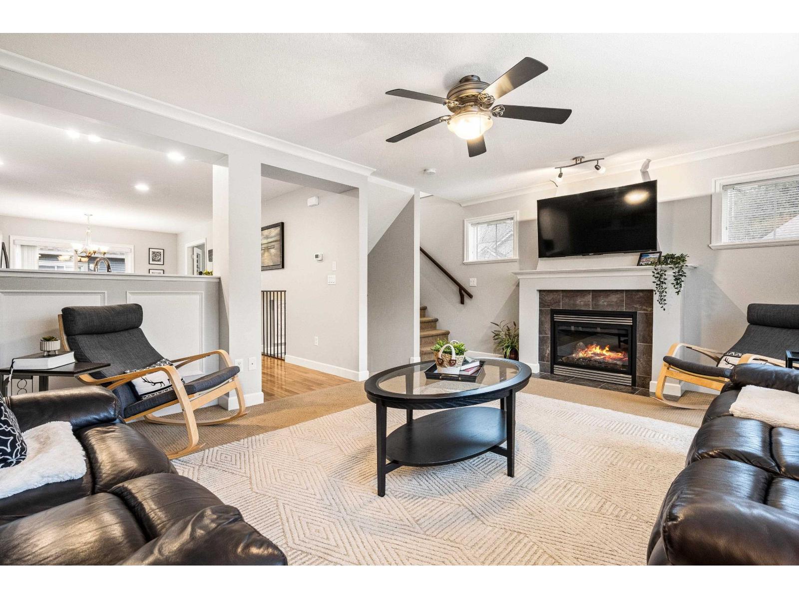 Immaculate original-owner highly desired floorplan END UNIT 3 Bed + DEN & REC and 3 Bath 1,979 SqFt townhome. Located in one of the best spots in the complex beside visitor parking, this bright home is drenched in natural light with morning sun in front and all-day sun in the back. The main floor has a den/office, updated kitchen with S/S appliances, shaker cabinets w/ crown moulding, and access to a sunny balcony w/ MT. VIEWS. Upstairs 3 bedrooms, laundry, and a spacious primary with a W/I closet and ensuite. Downstairs includes a large REC ROOM with yard access. Enjoy a PRIVATE FENCED YARD with a COVERED PATIO, HOT TUB, and REAR GATE to parking. DOUBLE GARAGE, large driveway and central A/C. Steps to parks, trails, schools, and 5 mins to all amenities and the upcoming ANDMAR development. (id:64528)