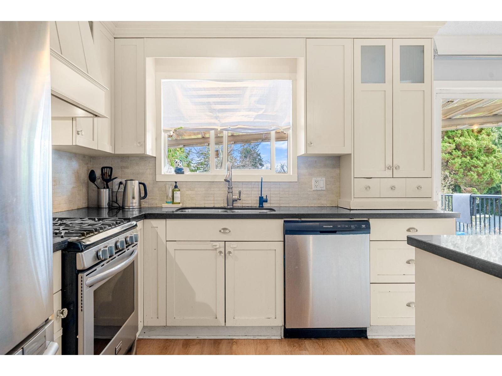 Welcome to this beautiful,large yet cozy SOUTHERN SLOPE residence in prestigious *WHITE ROCK*, just a few blocks walk to the BEACH. Significantly renovated in recent years,this home showcases exceptional pride of ownership and a spectacular finish throughout. The exterior offers a warm yet stately presence, surrounded by lush landscaping and set on an expansive 8,000+ sq ft. LOT providing ample space to entertain, relax & grow. The well-designed interior features 6 BEDROOMS,2 KITCHENS & 2 SPACIOUS LIVING AREAS offering flexibility for extended family or a Mortgage Helper.Kitchens and bathrooms have been beautifully updated, along with flooring,mouldings, windows, and more.Step out onto the massive private rear deck and enjoy a sun-drenched setting setting with stunning MT. BAKER. ACT NOW! (id:64528)