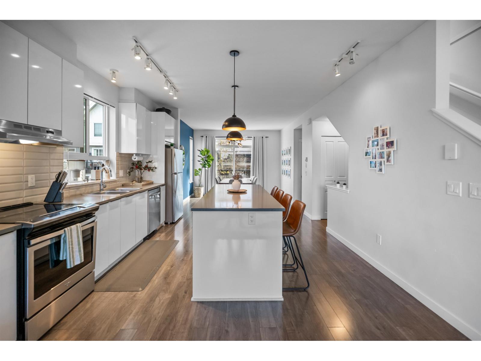 Sought-after Bristol Heights! This immaculate 3 BED, 2.5 BATH CORNER UNIT blends refined comfort with timeless style. Soaring 9' ceilings, wide-plank flooring, and expansive windows flood the home with natural light. Perfectly positioned with no residence directly opposite, enjoy exceptional privacy. The elegant main level features a stunning island kitchen with stone counters, stainless steel appliances, and access to a private balcony for effortless entertaining. Upstairs offers three spacious bedrooms, including a serene primary retreat with a spa-inspired 4-piece ensuite and convenient upper laundry. Double garage with flex space opens to a fully enclosed patio. Steps to Discovery Trail and exclusive Club West amenities. OPEN HOUSE FEB 28 | 2-4 PM THIS GEM WON'T LAST! (id:64528)