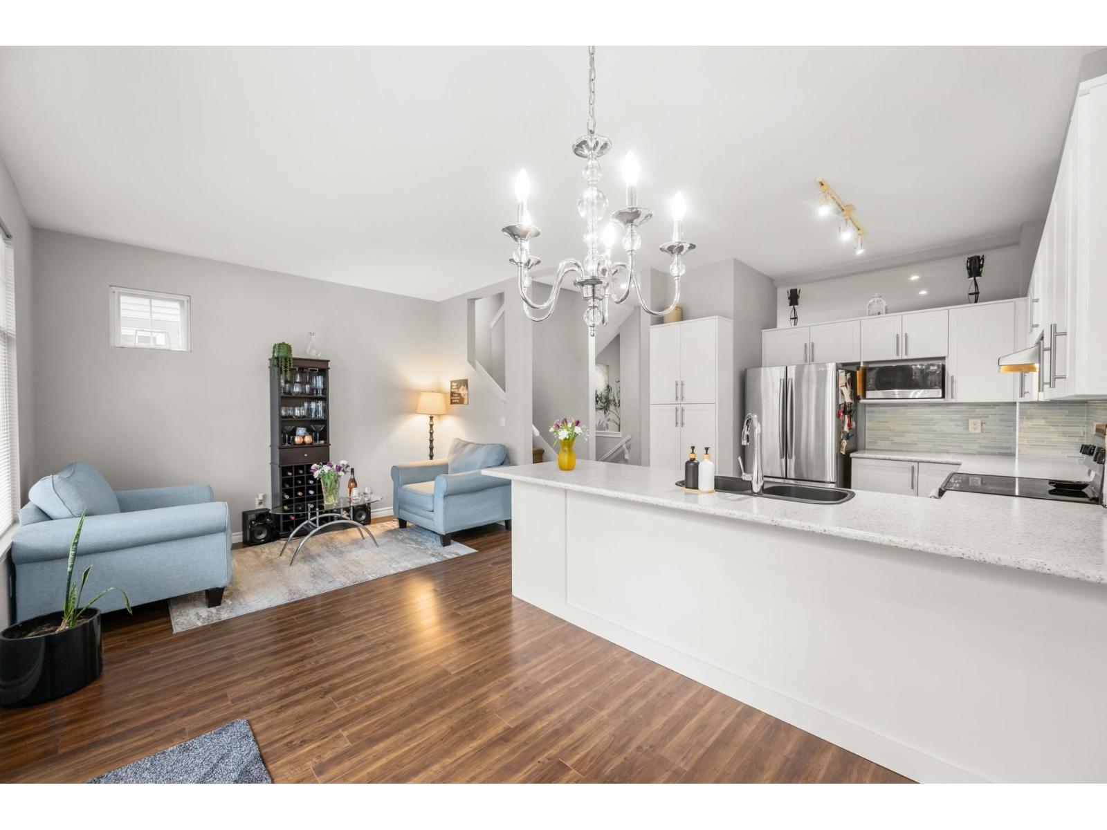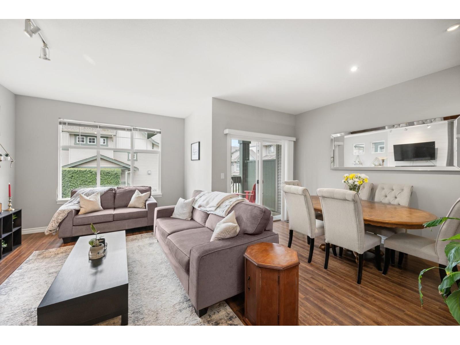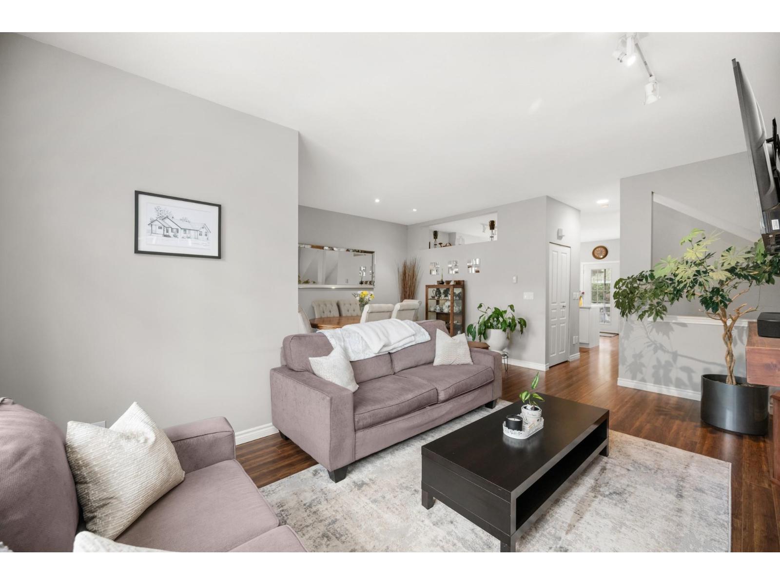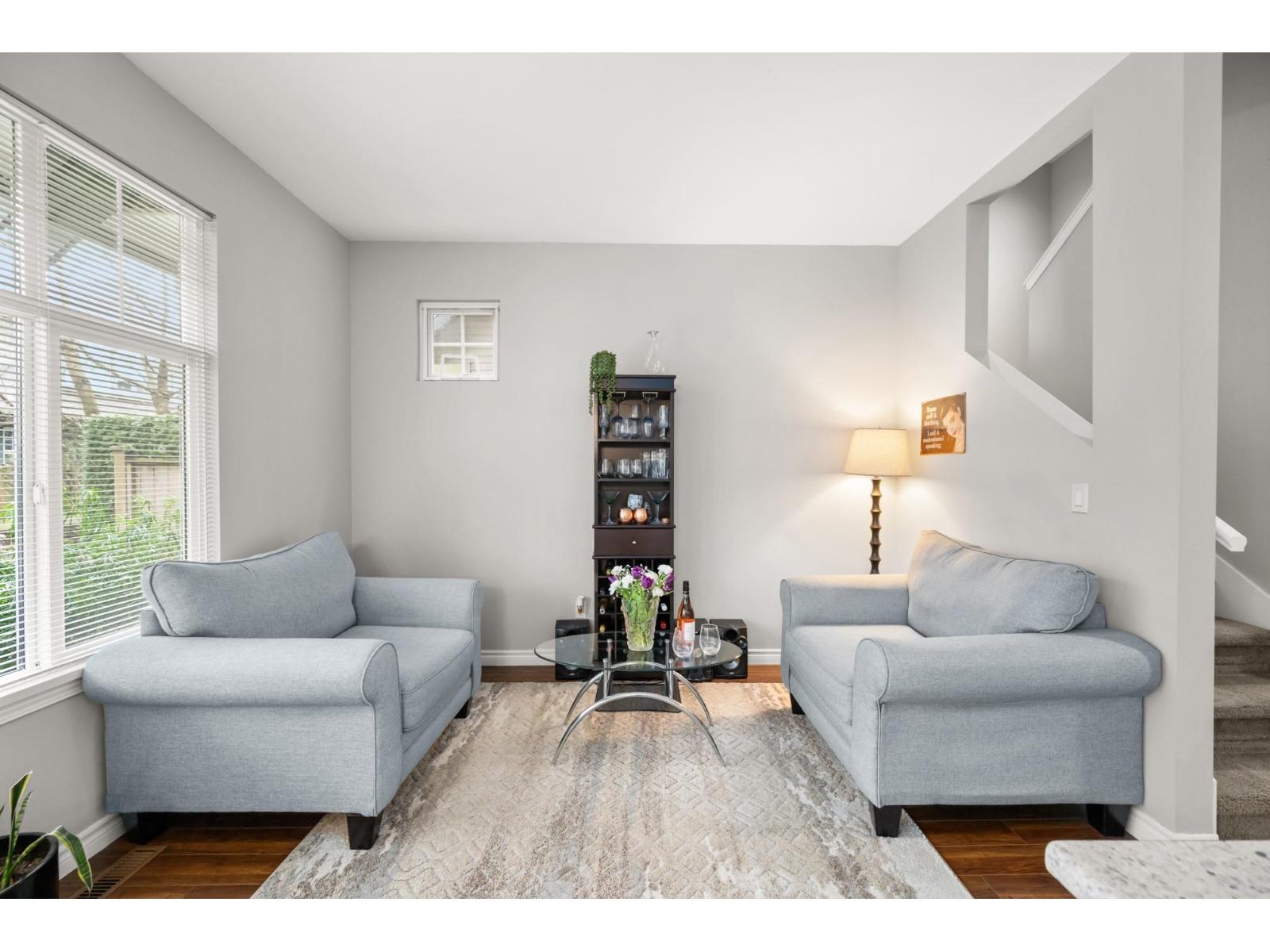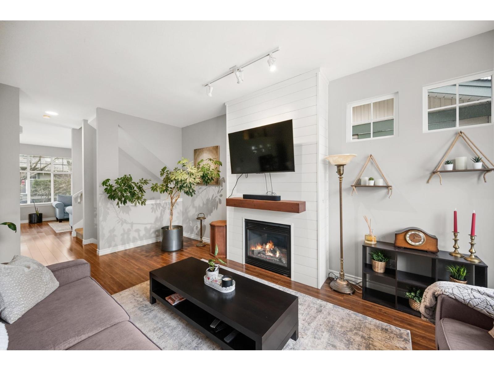 Welcome to Westfield! Bright and spacious, updated, 1952 sqft townhome in West Cloverdale, that feels more like a detached home. This home features 3 bedrooms, 2.5 bathrooms, 9' ceilings, laminate flooring and oversized windows. The updated open-concept kitchen with eating bar flows into the family room, and out to a private, fenced backyard. Separate living and dining areas feature a cozy gas fireplace and front balcony. Downstairs features one of the largest rec/media rooms in complex with separate bathroom. Plenty of room for parking and storage with large side by side garage and driveway. Highly sought after Cloverdale location with schools, transit and golf within walking distance. First showings Saturday February 28th at OPEN HOUSE 12:00 to 1:30pm or by appointment. (id:64528)