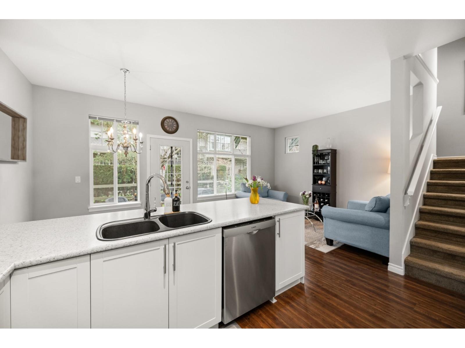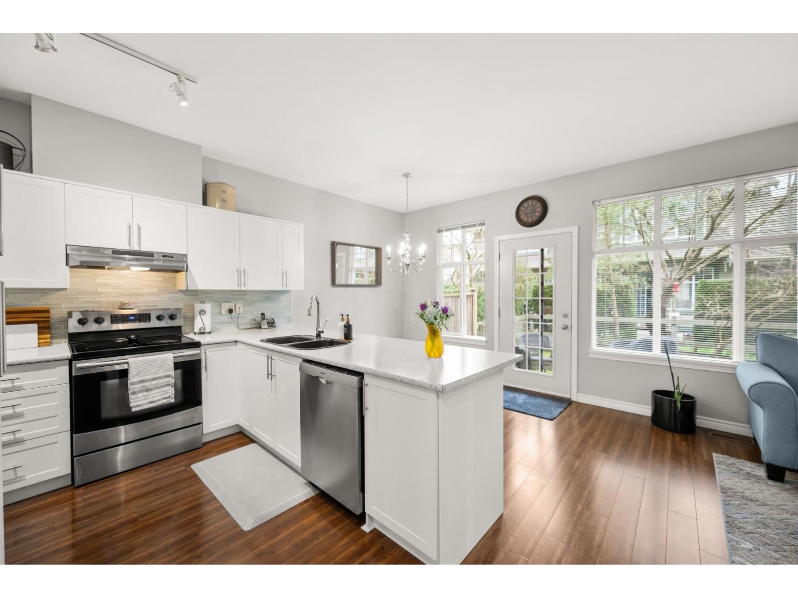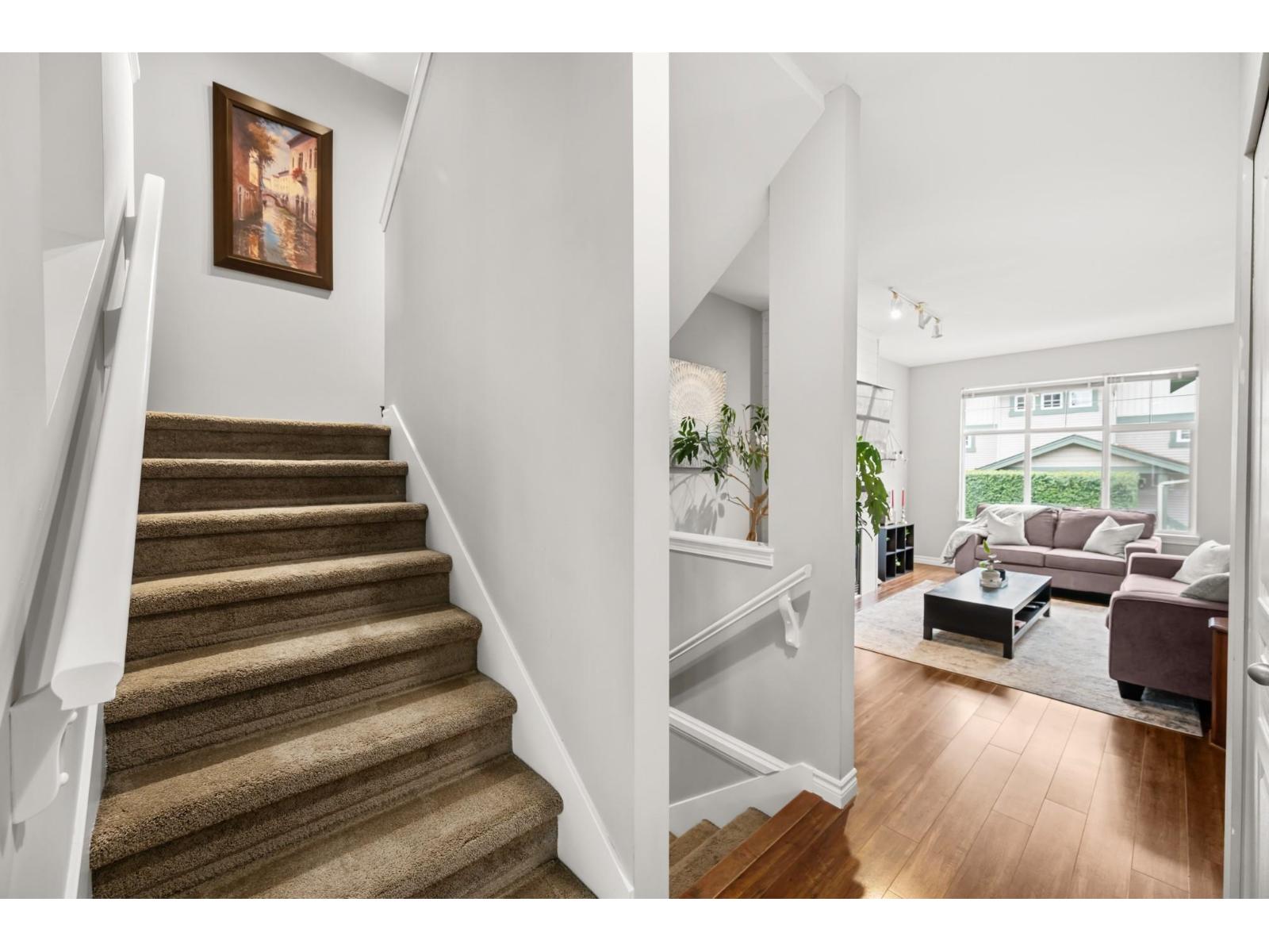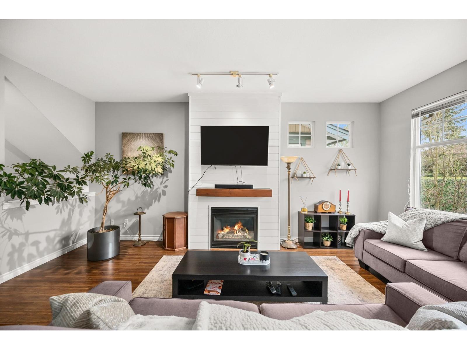 Welcome to Westfield! Bright and spacious, updated, 1952 sqft townhome in West Cloverdale, that feels more like a detached home. This home features 3 bedrooms, 2.5 bathrooms, 9' ceilings, laminate flooring and oversized windows. The updated open-concept kitchen with eating bar flows into the family room, and out to a private, fenced backyard. Separate living and dining areas feature a cozy gas fireplace and front balcony. Downstairs features one of the largest rec/media rooms in complex with separate bathroom. Plenty of room for parking and storage with large side by side garage and driveway. Highly sought after Cloverdale location with schools, transit and golf within walking distance. First showings Saturday February 28th at OPEN HOUSE 12:00 to 1:30pm or by appointment. (id:64528)
