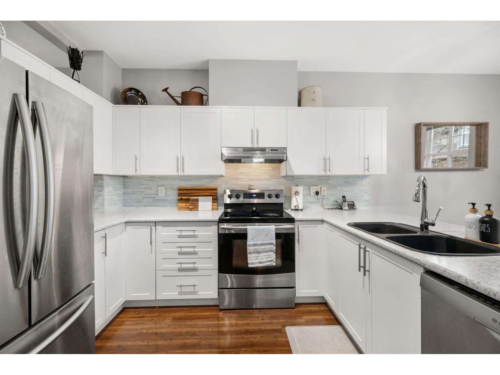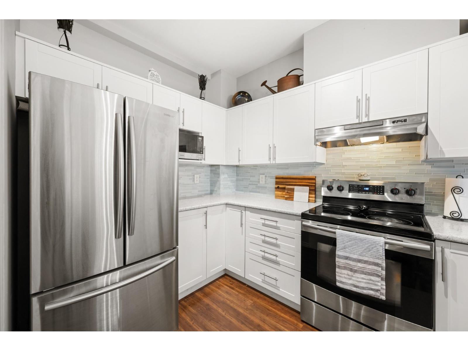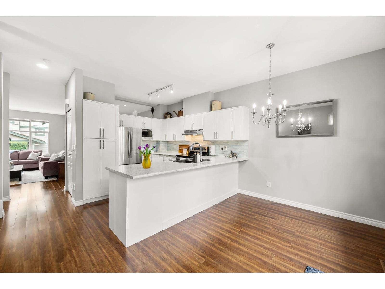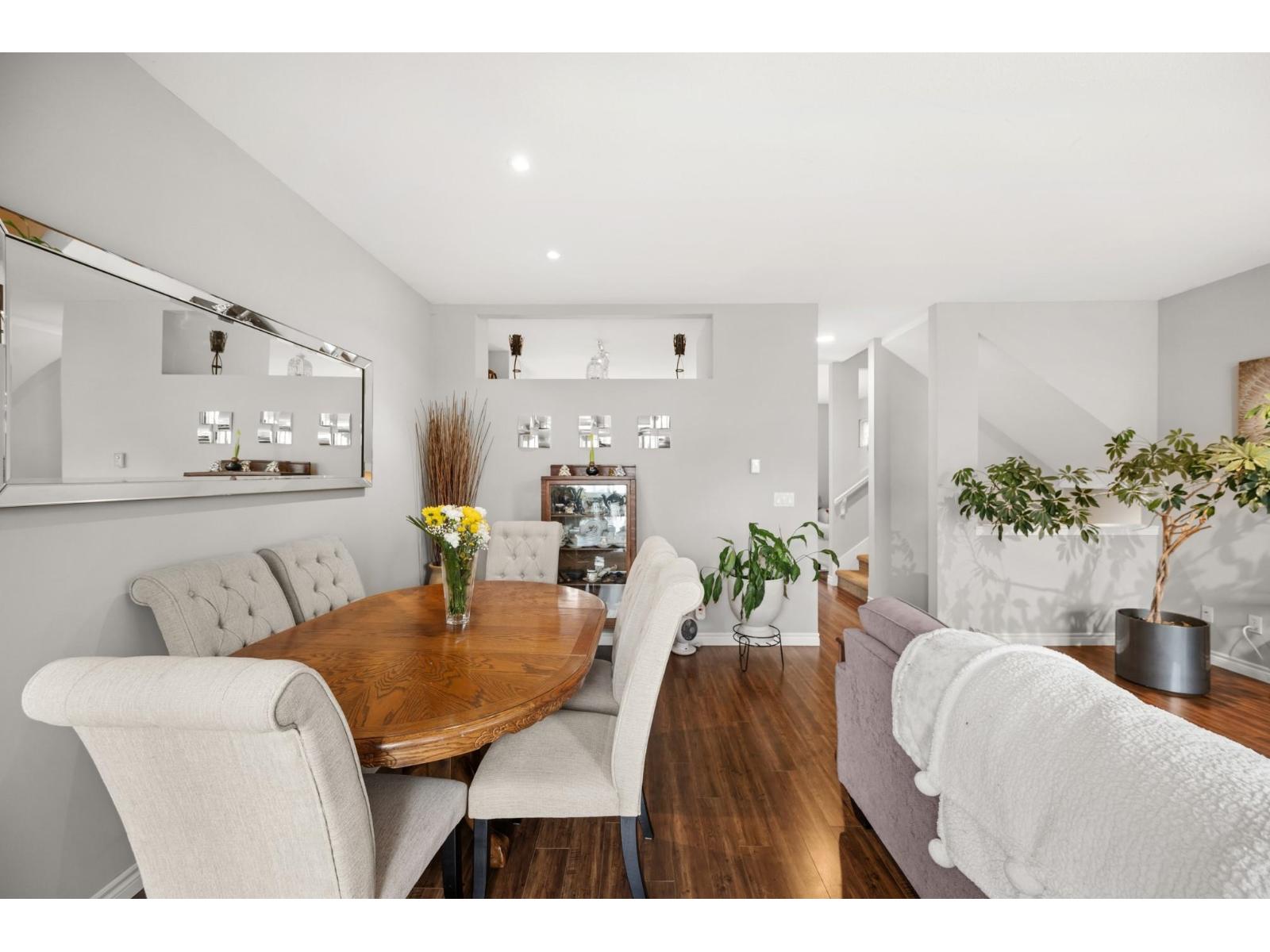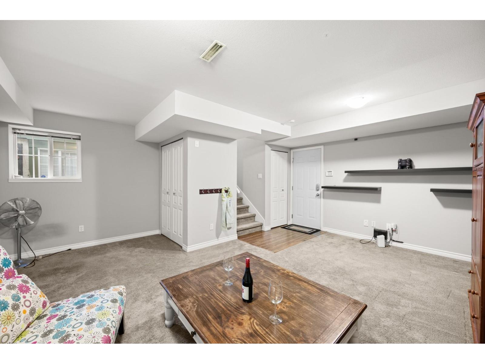 Welcome to Westfield! Bright and spacious, updated, 1952 sqft townhome in West Cloverdale, that feels more like a detached home. This home features 3 bedrooms, 2.5 bathrooms, 9' ceilings, laminate flooring and oversized windows. The updated open-concept kitchen with eating bar flows into the family room, and out to a private, fenced backyard. Separate living and dining areas feature a cozy gas fireplace and front balcony. Downstairs features one of the largest rec/media rooms in complex with separate bathroom. Plenty of room for parking and storage with large side by side garage and driveway. Highly sought after Cloverdale location with schools, transit and golf within walking distance. First showings Saturday February 28th at OPEN HOUSE 12:00 to 1:30pm or by appointment. (id:64528)