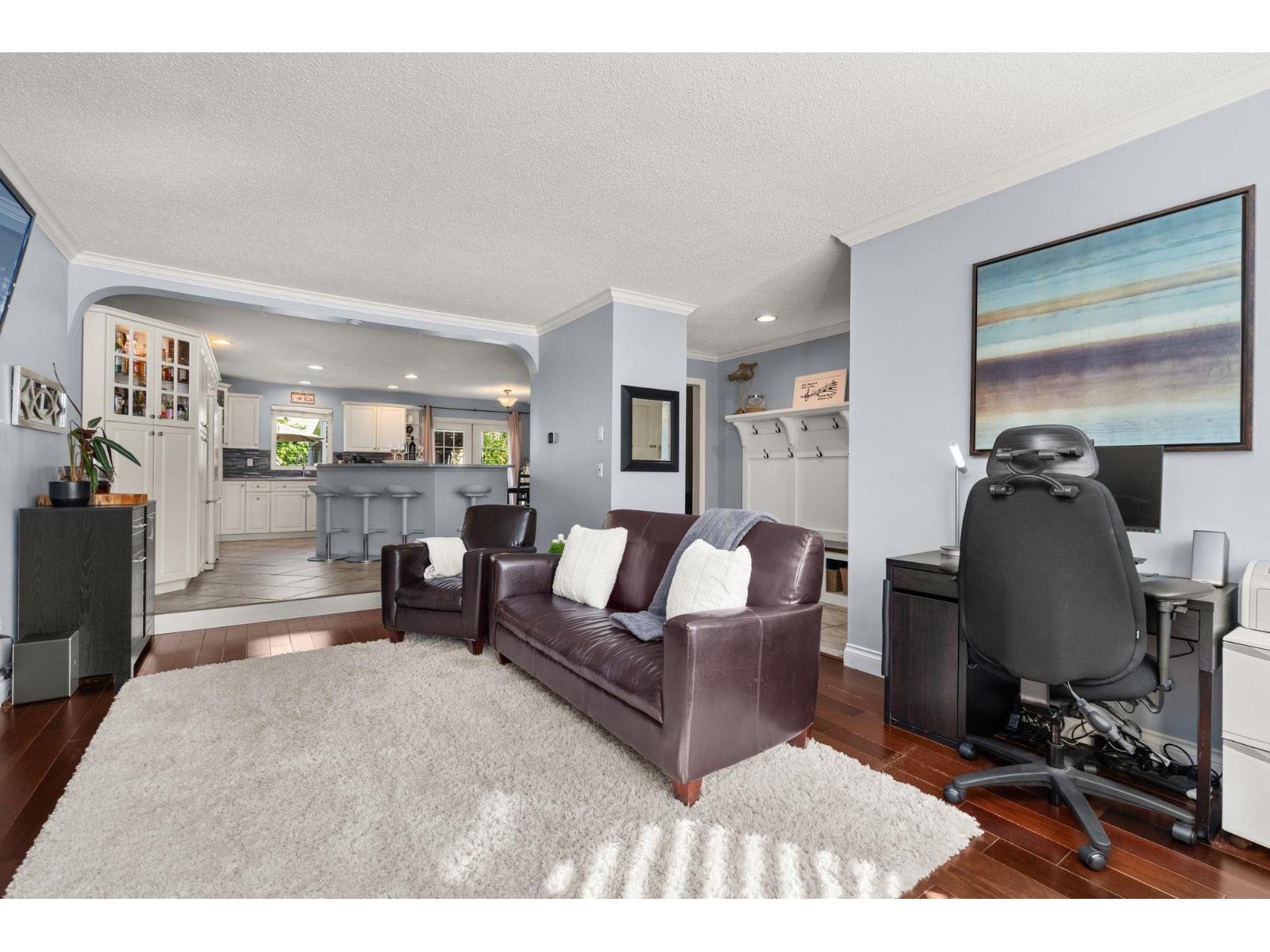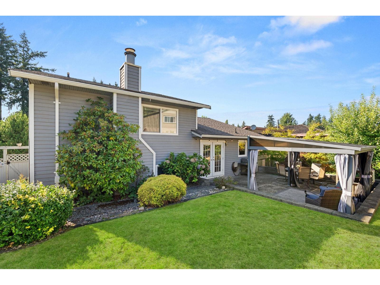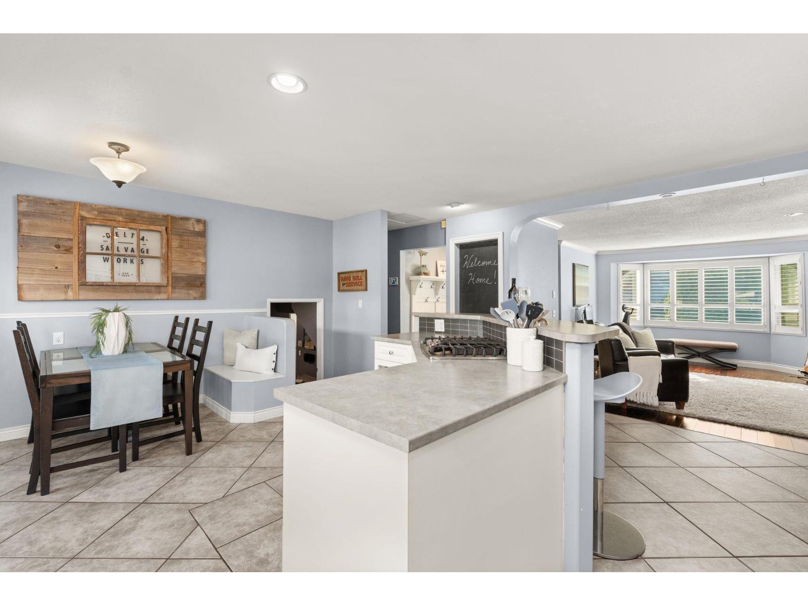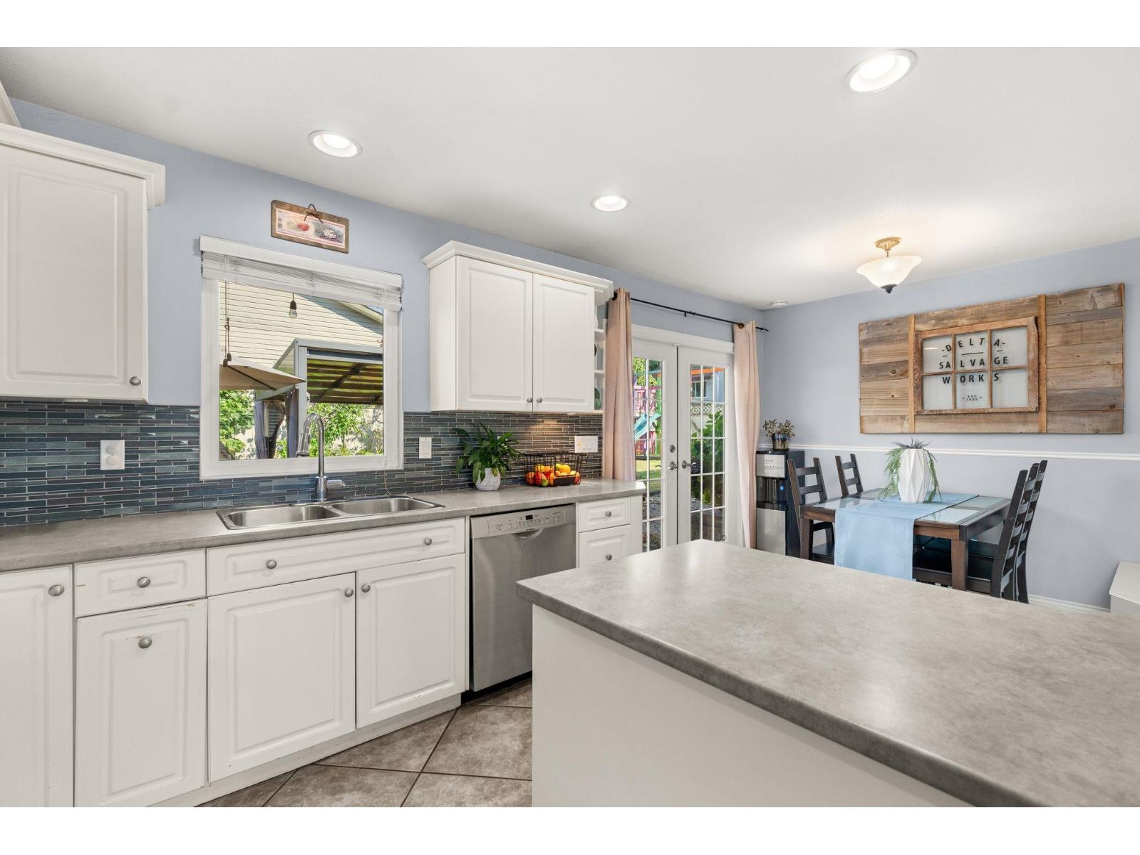 Beautifully updated 3 bdrm, 2.5 bath home in sought-after Sunshine Hills. The kitchen, redesigned approx. 10 years ago, features a generous island, gas stovetop, updated backsplash, laminate counters, abundant cabinetry & excellent natural light. The open design connects the kitchen, dining & living areas, creating an easy, functional main floor. Hardwood flooring runs throughout the dining, living & upper level. The spacious primary easily accommodates a king bed & offers a WI closet + 3 pc ensuite. Two additional bdrms & a well-appointed main bath complete the upper floor. The lower level provides a versatile flex space ideal for a media room, office, gym or family room. Key updates include furnace (2017), water heater (2019), vinyl windows (2003), roof (2005) & newly updated gutters w/ downspout cleanouts (2025). Refreshed driveway, crawlspace storage & electrical ready for EV charging. Driveway & double garage access off Staples Cres. Walk to Cougar Canyon Elem, Seaquam Sec (IB), shops, transit & Watershed (id:64528)