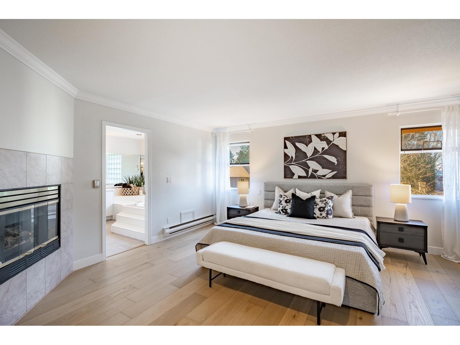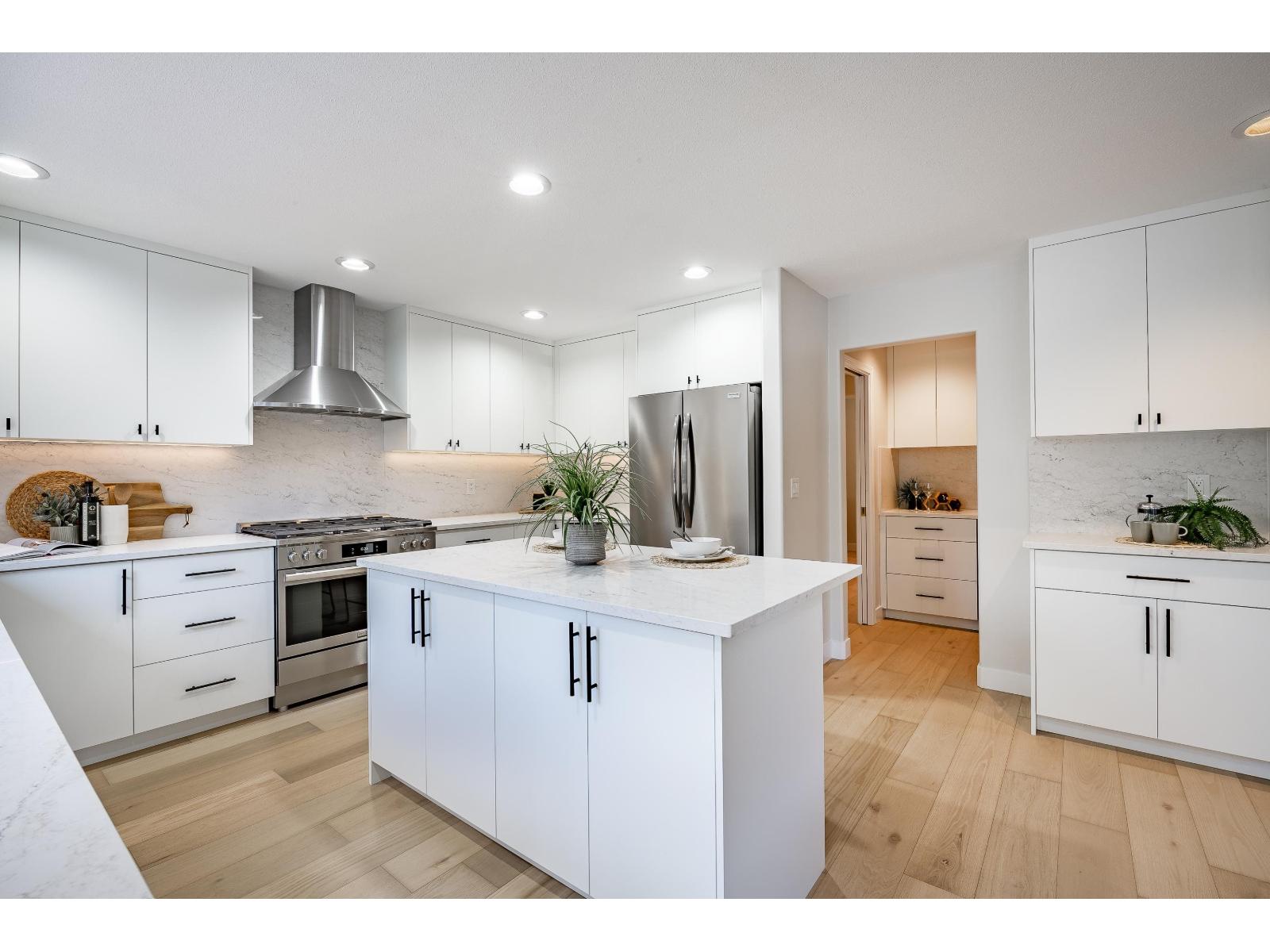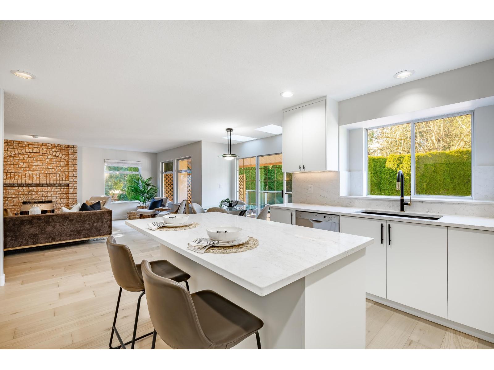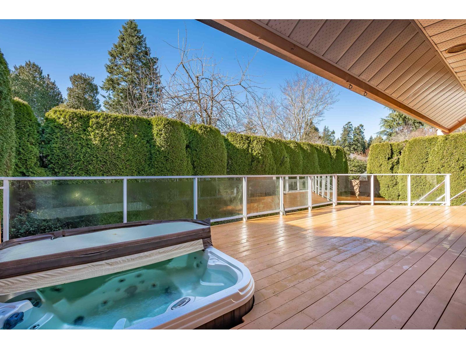 Welcome to this beautifully renovated family home in the friendly Ocean Cliff neighborhood! Offering 3 bedrooms up (plus a potential 4th on the main) and 3 baths, this bright and welcoming home features a brand-new chef kitchen with wet bar, modern appliances, and engineered hardwood floors throughout. The spacious primary bedroom includes a cozy fireplace and a peek-a-boo ocean view. Enjoy sunny afternoons on the southwest-facing deck, or soak in the hot tub, then relax in the cheerful solarium with heated floors. Steps to Ocean Cliff Elementary, top-ranked Elgin Park Secondary, and close to beaches and the famous 1001 Steps-this home truly has it all! Don't miss it and call for your private showings! (id:64528)