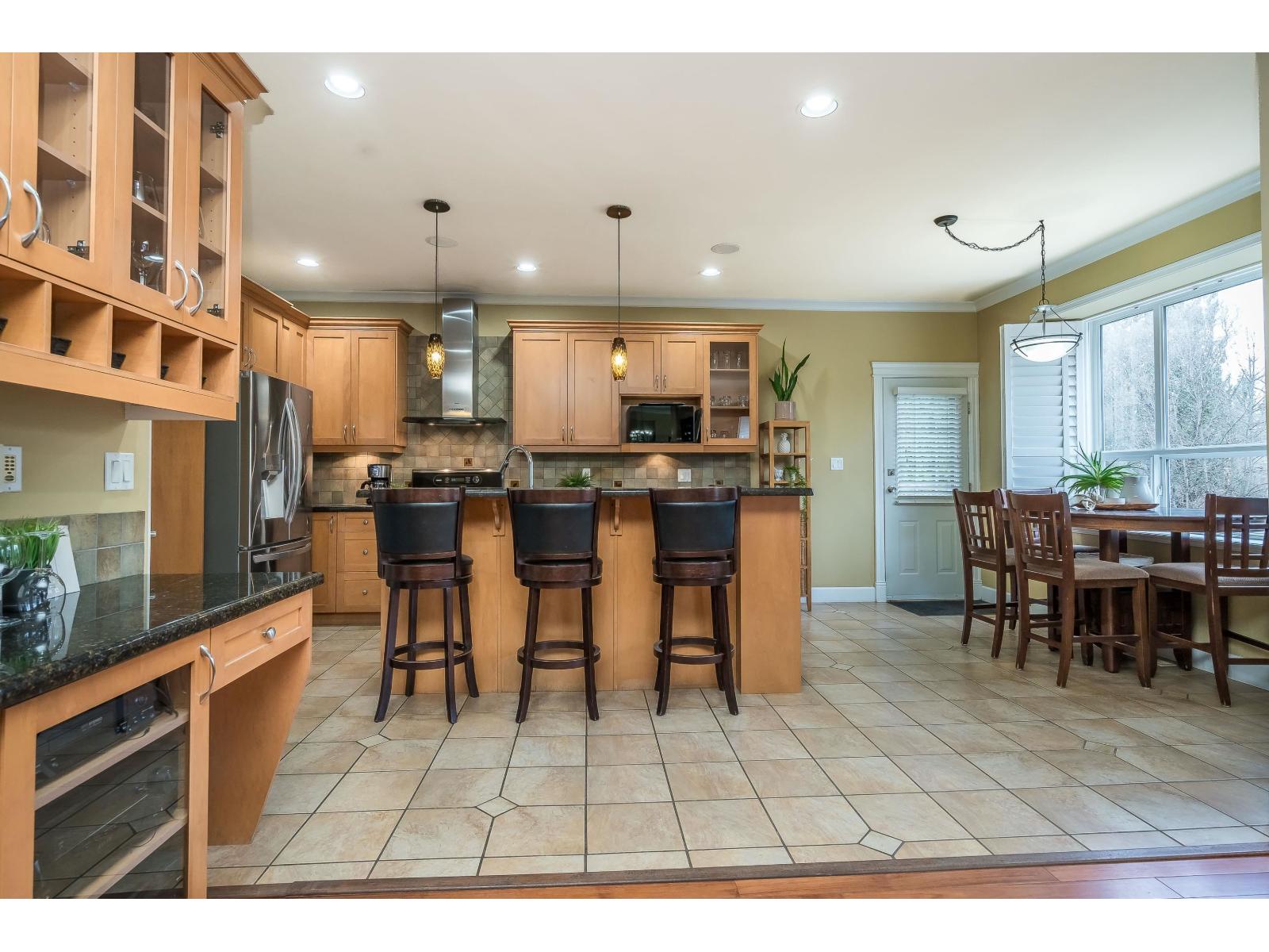 Custom-built and impeccably maintained 3,669 sq ft home on a quiet, family-oriented cul-de-sac. Offering 5 bedrooms and 5 bathrooms (3 ensuites), the bright open-concept great room features a spacious island kitchen and adjoining dining area-perfect for entertaining. The primary suite impresses with his & hers walk-in closets, a cozy fireplace, and a spa-inspired 5-piece ensuite. Quality finishes include granite counters, hardwood floors, ceramic tile, extensive millwork, built-in sound, central A/C, high-end fixtures, and a NEW furnace. The finished basement provides 2 bedrooms, a modern kitchen with gas range, 4-piece bath, and laundry-ideal for extended family or a mortgage helper. Relax on the huge stamped concrete patio & hot tub overlooking the private greenspace views. A must see! (id:64528)
