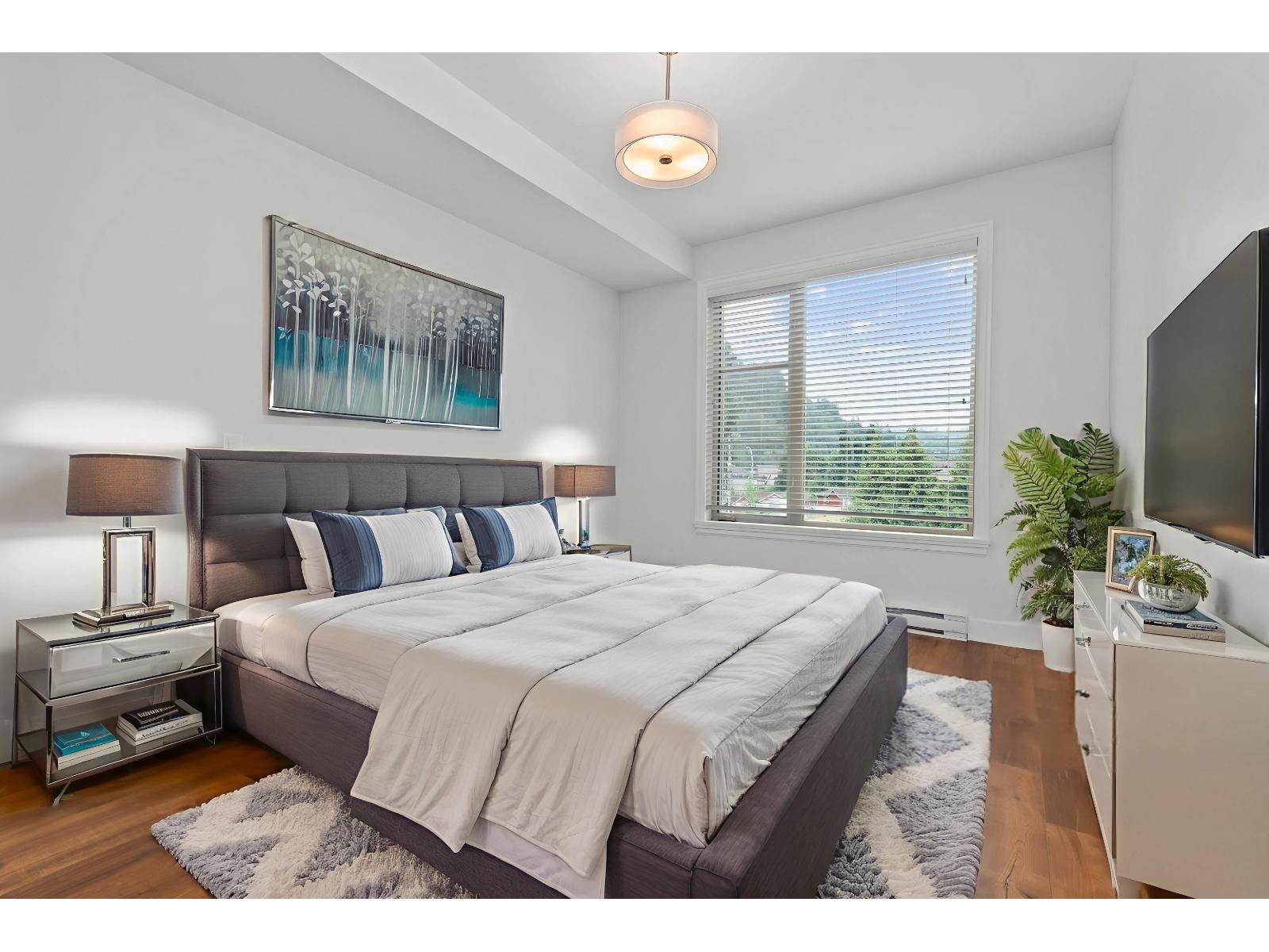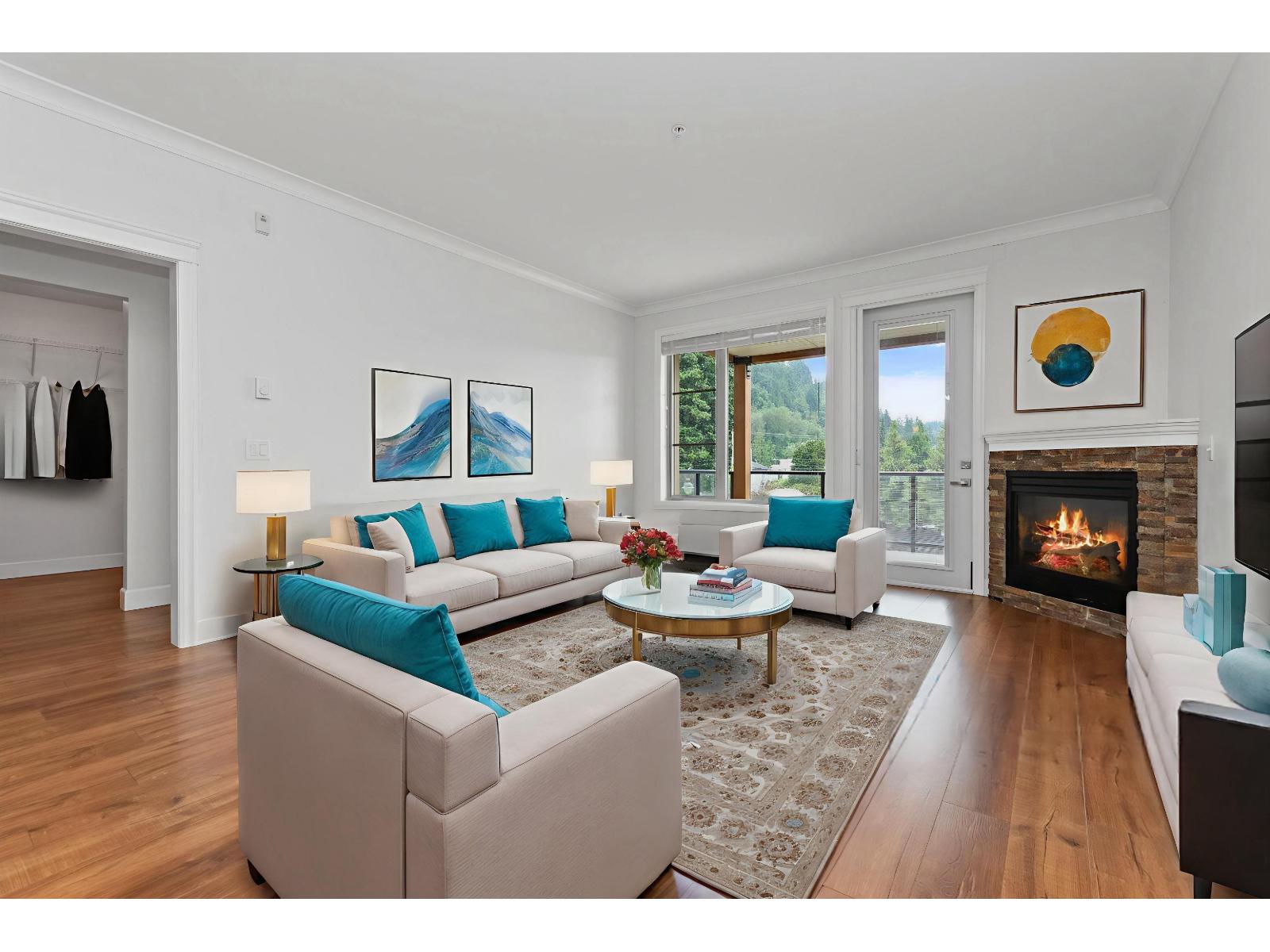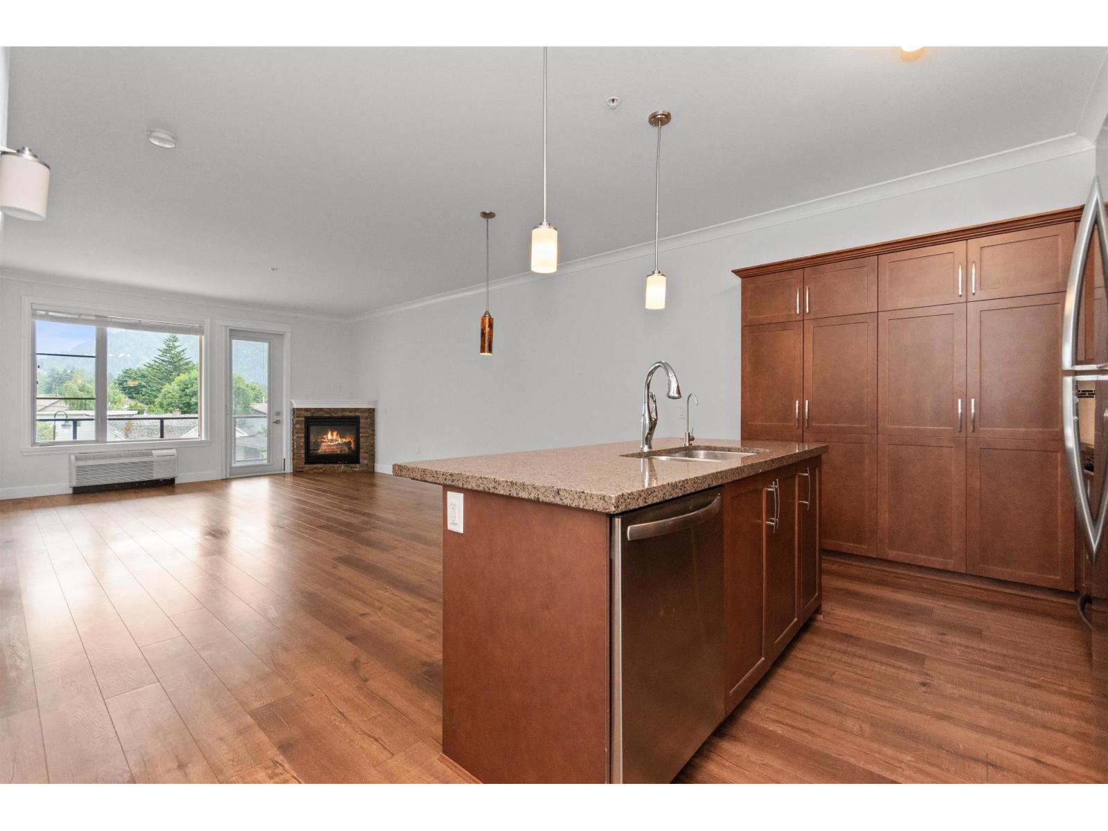 Welcome to this beautifully maintained 3rd floor unit in Englewood Courtyard"-one of Chilliwack's premier adult (45+) gated communities. This bright, move-in ready home features newer appliances & A/C, fresh paint, and more. Enjoy a gourmet kitchen with high-end cabinetry and counters, a spacious deluxe bathroom, walk-in closet, and a cozy gas fireplace alongside large bay windows. Soak in stunning mountain views from the generous patio. The oversized laundry room offers extra storage or workspace potential. Englewood offers a vibrant clubhouse, guest suites, RV parking available, and allows a pet. A rare opportunity to own in this sought-after development! (id:64528)