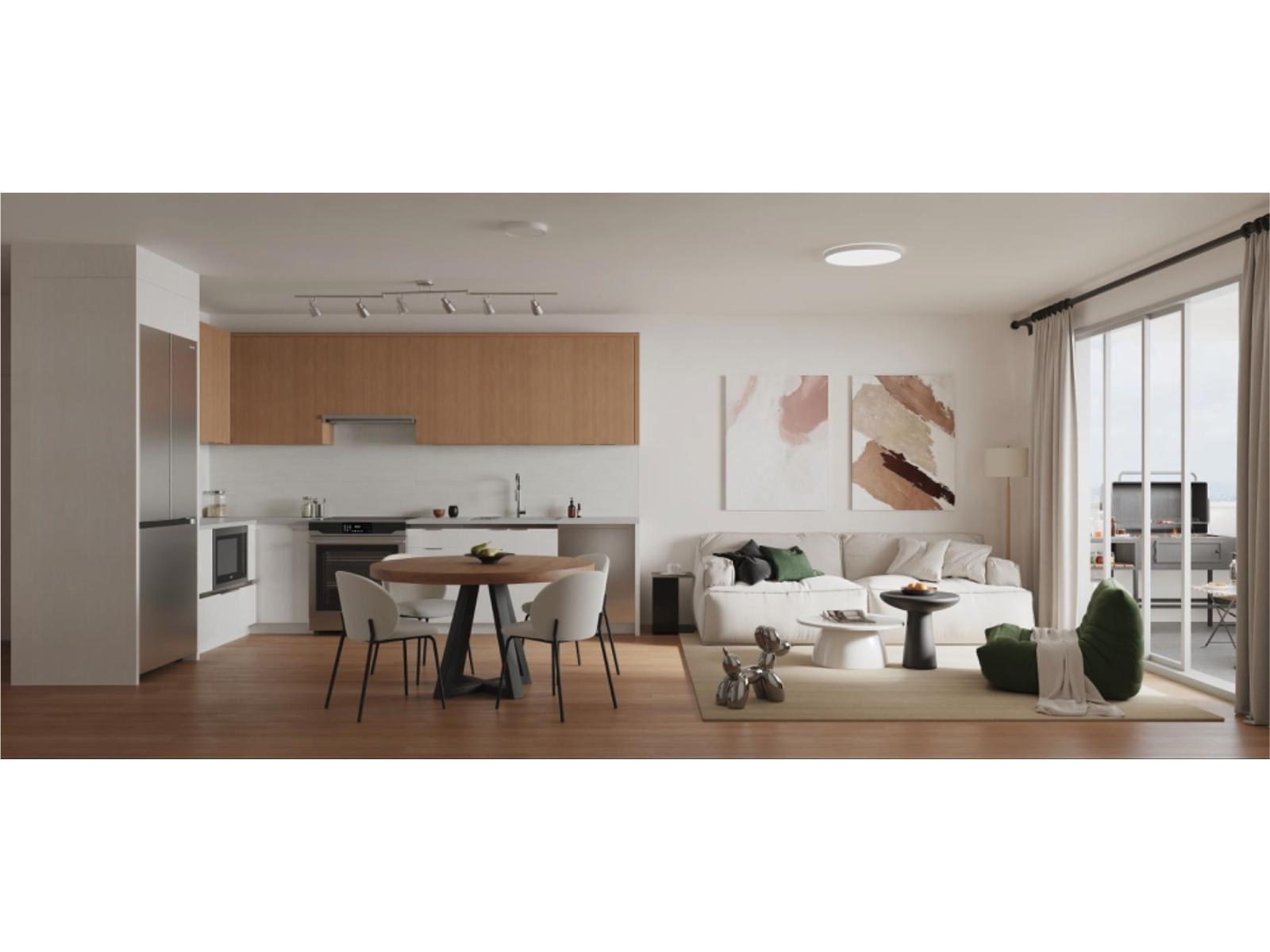 Say hello to homeownership at Terra Gardens in Guildford! A work, play & stay community. These spacious homes are perfect for families, offering generous square footage and modern design. Located directly across from Guildford Mall, this prime spot combines convenience and livability in one of Surrey's most desirable neighborhoods. Enjoy over 3,700 sq. ft. of amenities, including a gym, yoga studio, games room, co-working space, community lounge, and a rooftop patio with a putting green. With top-tier Samsung appliances and energy-efficient heat pumps with heating and cooling. The Guildford community center with library and swimming pool is just steps away. and GST rebate for first-time buyers from federal government.2bedrooms + den (id:64528)