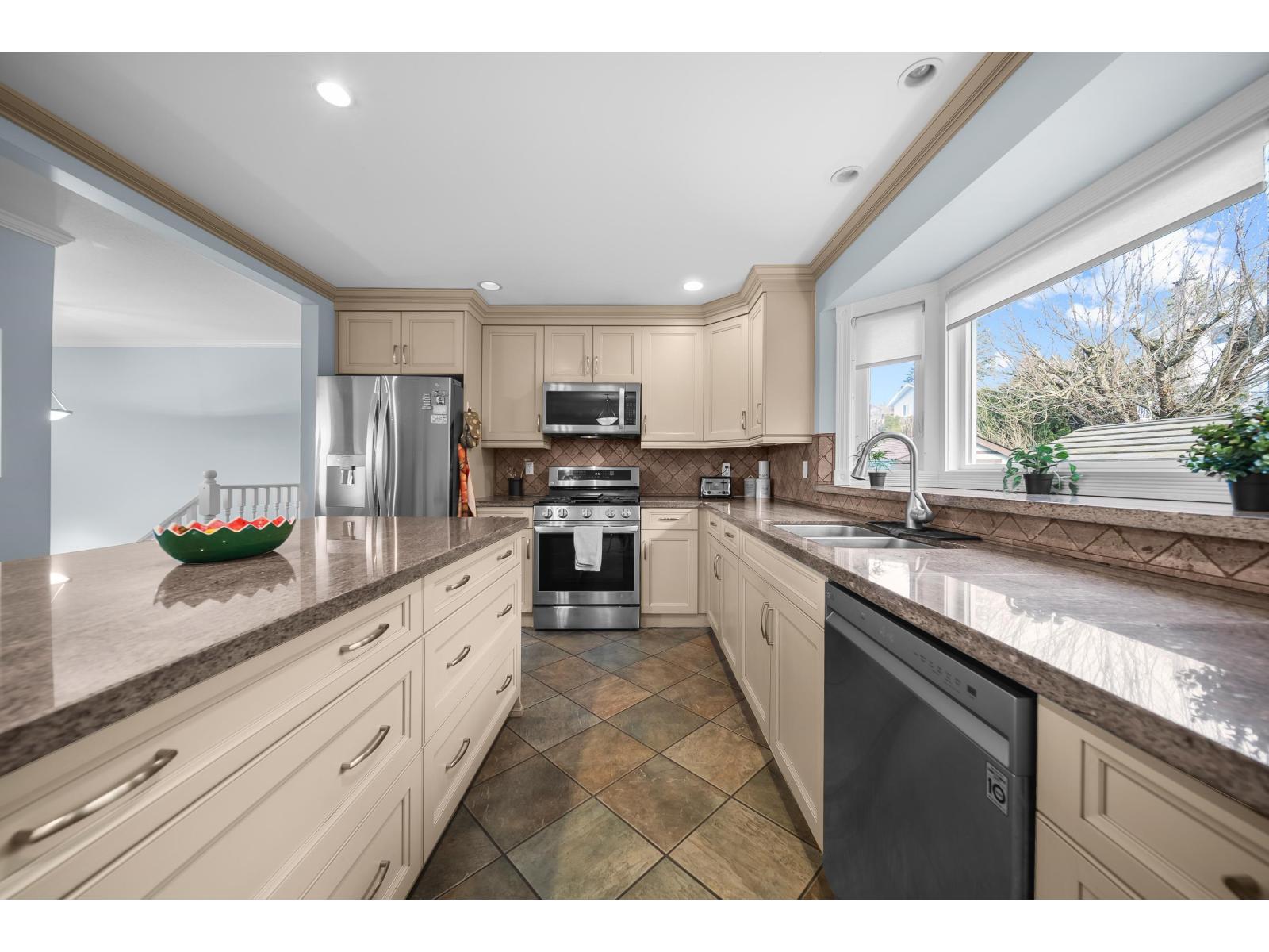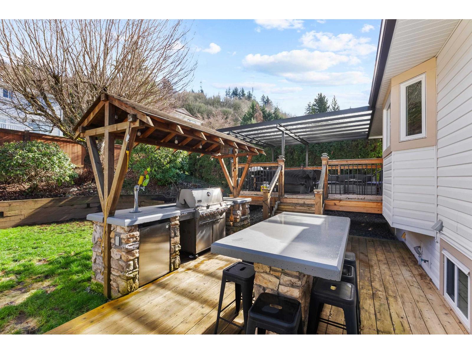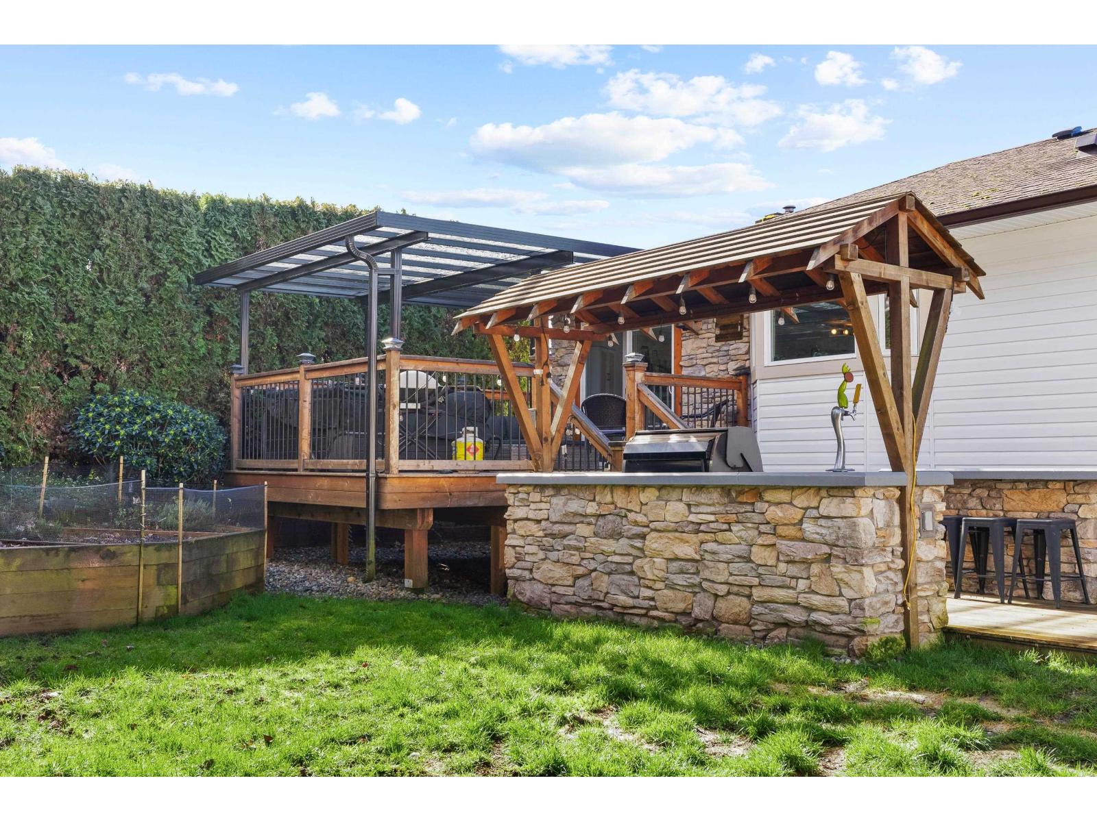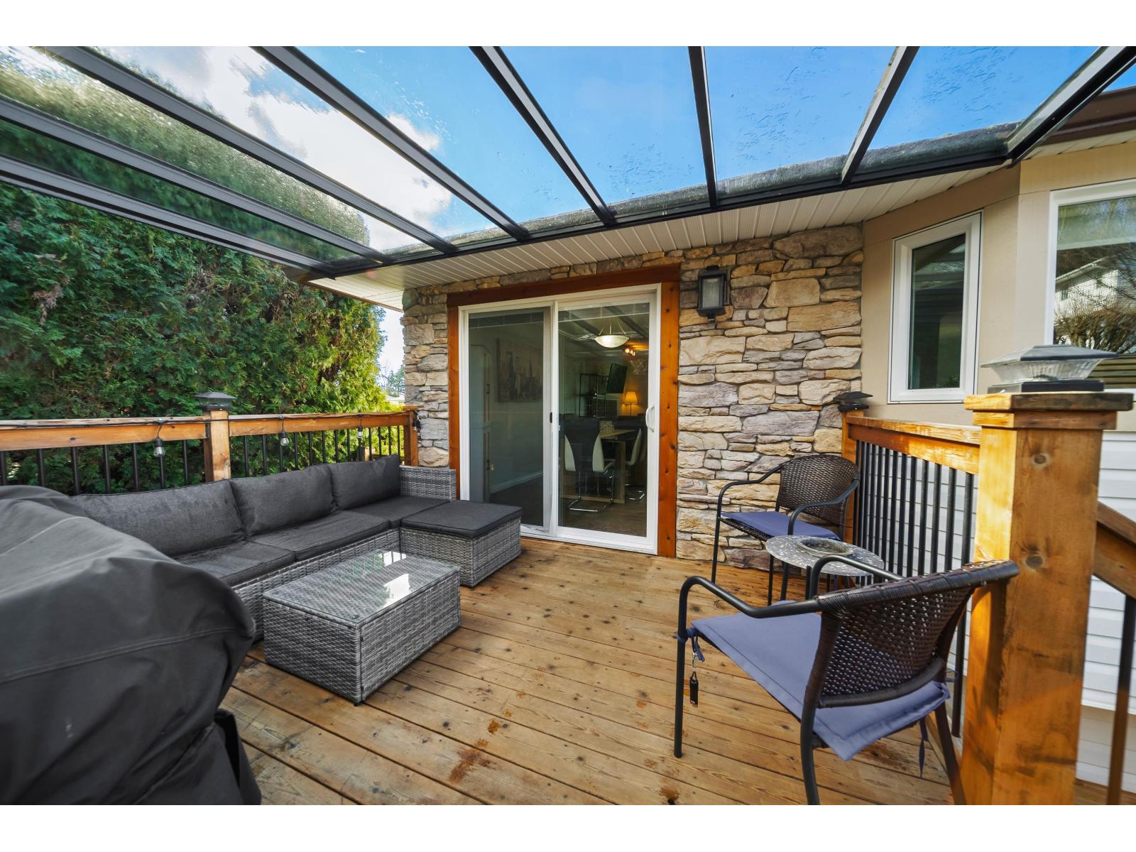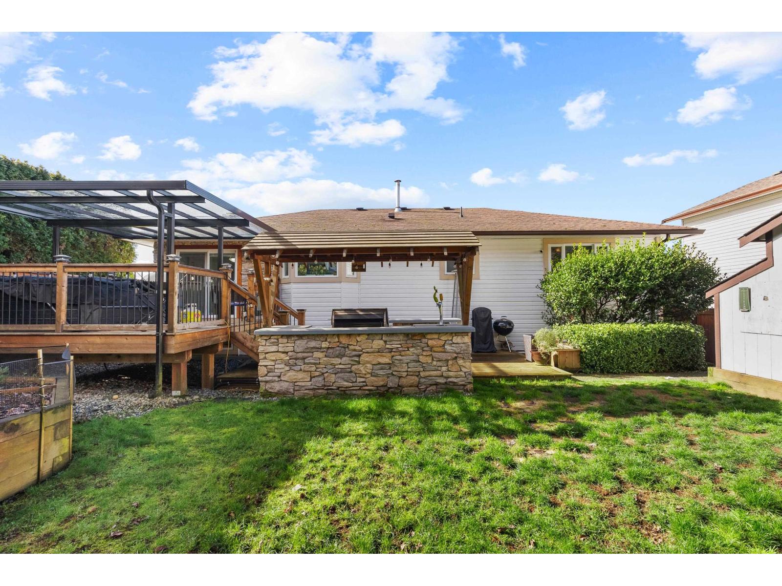 East Abbotsford living! Beautiful family home located in desirable location that checks all the boxes: fantastic school catchment, short drive to Hwy access, quick access to shopping, parks, trails and more. You will appreciate these 3 bedrooms (very easily turned into a four bedroom) and 3bathroom home! Enjoy several improvements over the past 6-7 years including roof, windows, blinds, covered deck, kitchen, bathrooms, gutters, furnace, fencing, recent appliances and more. Sitting on a 6000 sq ft lot with lots of privacy and fully fenced! Entertain your family and friends out back with hot tub and outdoor built-in BBQ area. Other features include oversized 620+ sq ft double garage, gas fireplace, granite counters, A/C and lots of natural light. Simply move-in and enjoy your new home! (id:64528)