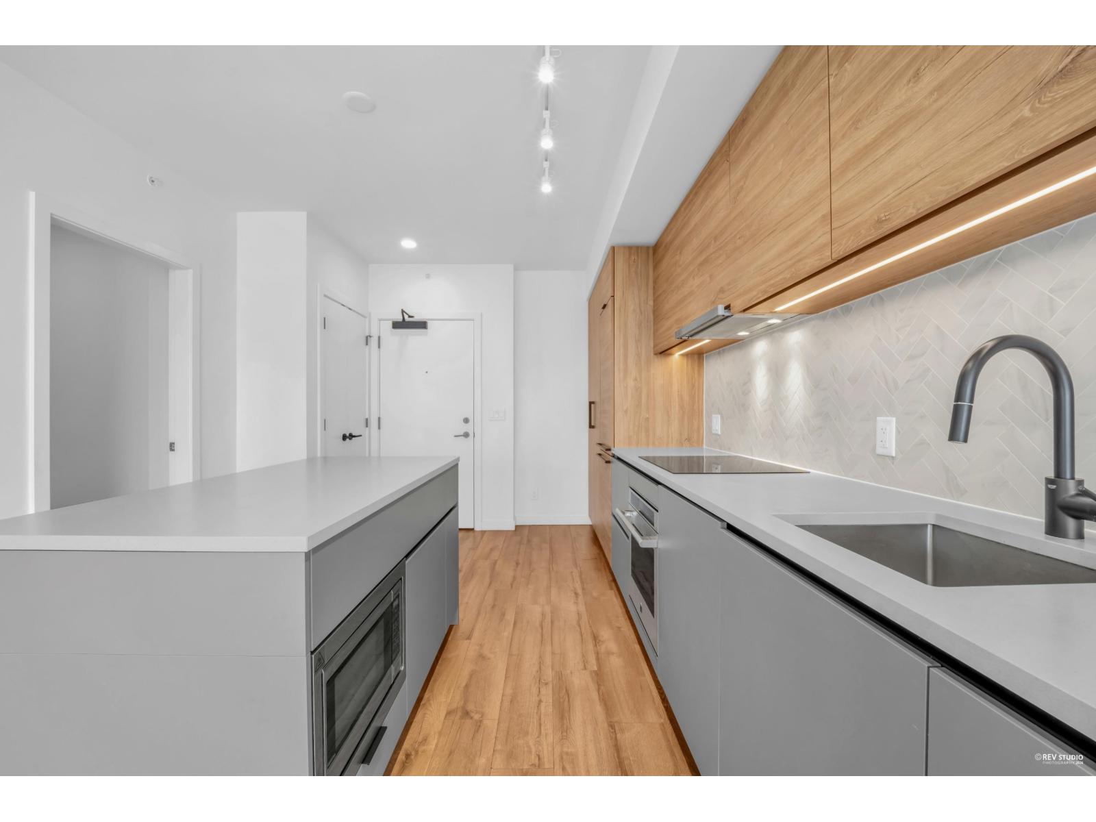 Welcome to University District by BOSA, a thoughtfully designed community steps from SFU Surrey Campus and built with student living in mind. Enjoy award-winning amenities including a commercial-grade fitness centre, outdoor pool, media lounge and secure bike room. Centrally located in the heart of Surrey, just a short walk to SkyTrain, shopping and daily conveniences. This spacious 610 sqft one-bedroom offers an efficient layout with a retractable dining table to maximize space, granite countertops, premium stainless steel appliances and floor-to-ceiling windows. Includes one parking stall and a standard-size storage locker. Move-in ready. (id:64528)