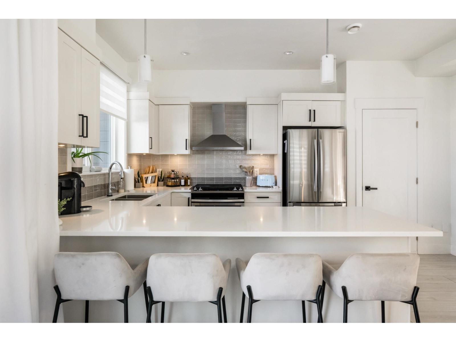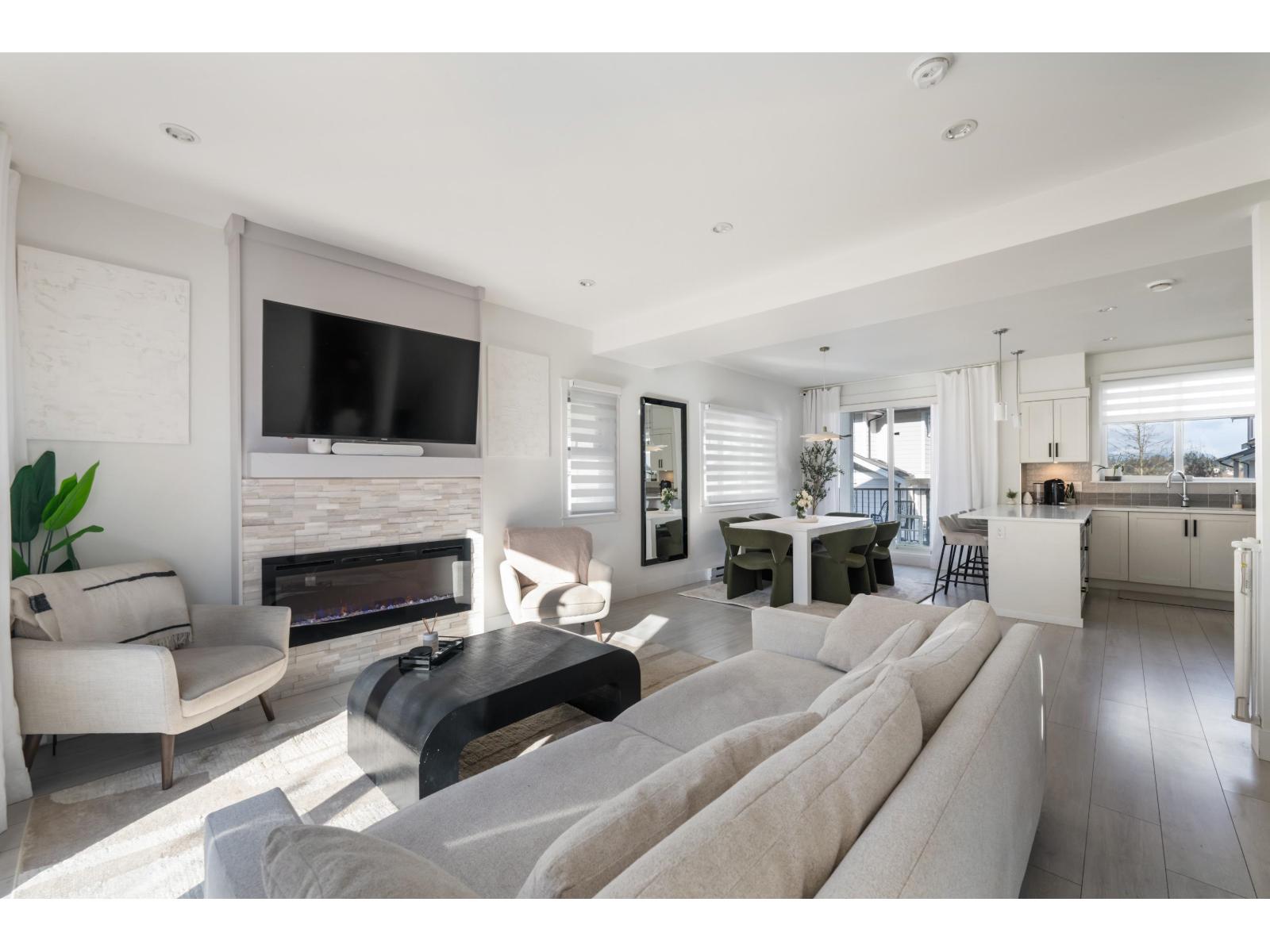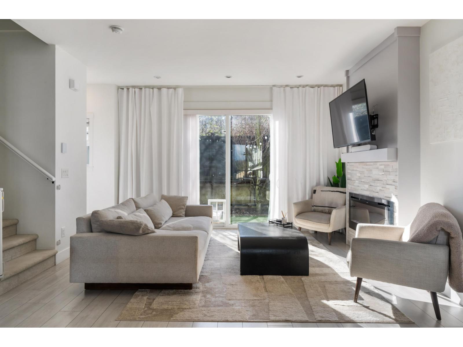 The best townhome in Vantage, featuring a rare corner unit with mountain views and a sun-filled south-facing yard complete with hot tub and a separate covered patio with gas hookup, ideal for year-round outdoor living and entertaining. Extra corner windows provide exceptional natural light and open outlooks rarely found in townhomes. Quiet location with a side-by-side garage and versatile lower-level space with its own full bath suited for guests, office use, or extended family. Enjoy a walkable lifestyle with the greenbelt path leading directly to McLeod Park and École Woodward Hill Elementary, Bell Performing Arts Centre, shopping, transit, Hwy 10, and King George Boulevard all nearby. A rare combination of features rarely available in Surrey townhomes. Book your private showing today! (id:64528)