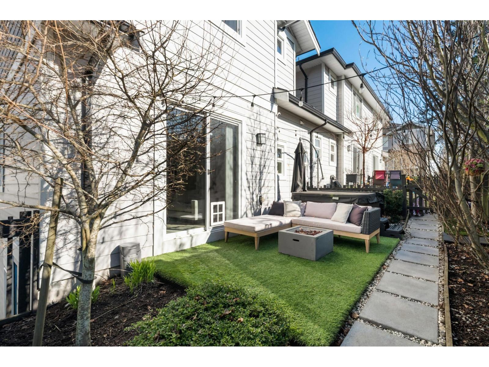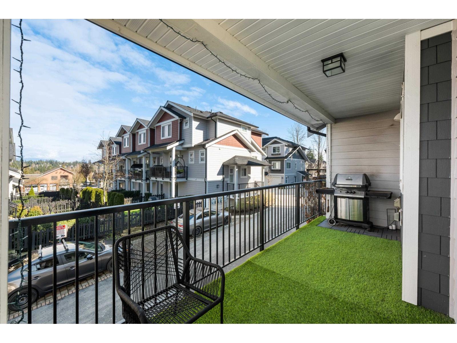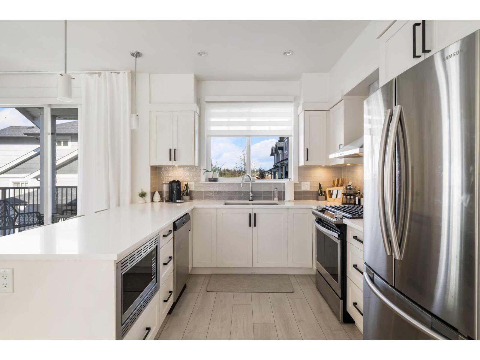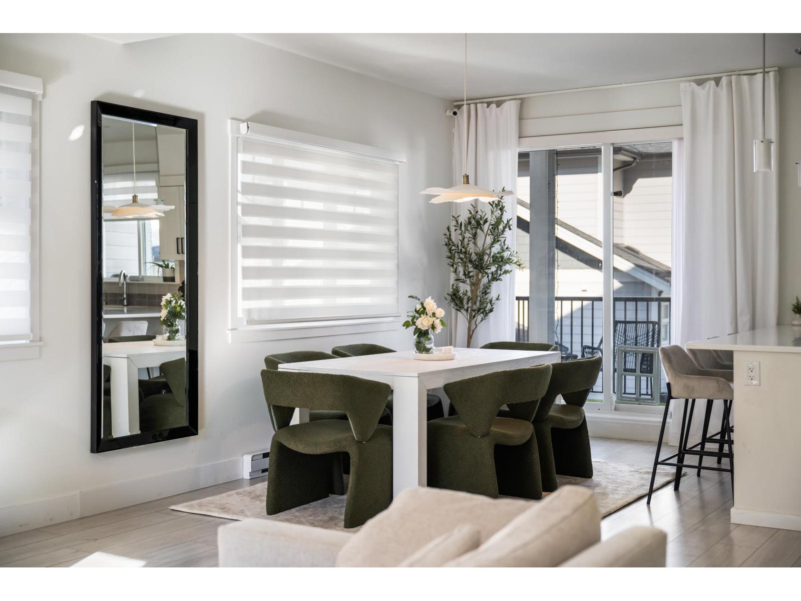 The best townhome in Vantage, featuring a rare corner unit with mountain views and a sun-filled south-facing yard complete with hot tub and a separate covered patio with gas hookup, ideal for year-round outdoor living and entertaining. Extra corner windows provide exceptional natural light and open outlooks rarely found in townhomes. Quiet location with a side-by-side garage and versatile lower-level space with its own full bath suited for guests, office use, or extended family. Enjoy a walkable lifestyle with the greenbelt path leading directly to McLeod Park and École Woodward Hill Elementary, Bell Performing Arts Centre, shopping, transit, Hwy 10, and King George Boulevard all nearby. A rare combination of features rarely available in Surrey townhomes. Book your private showing today! (id:64528)