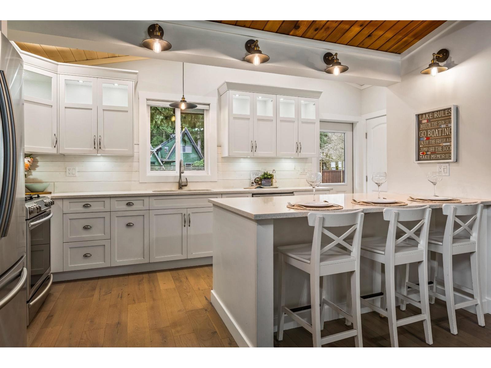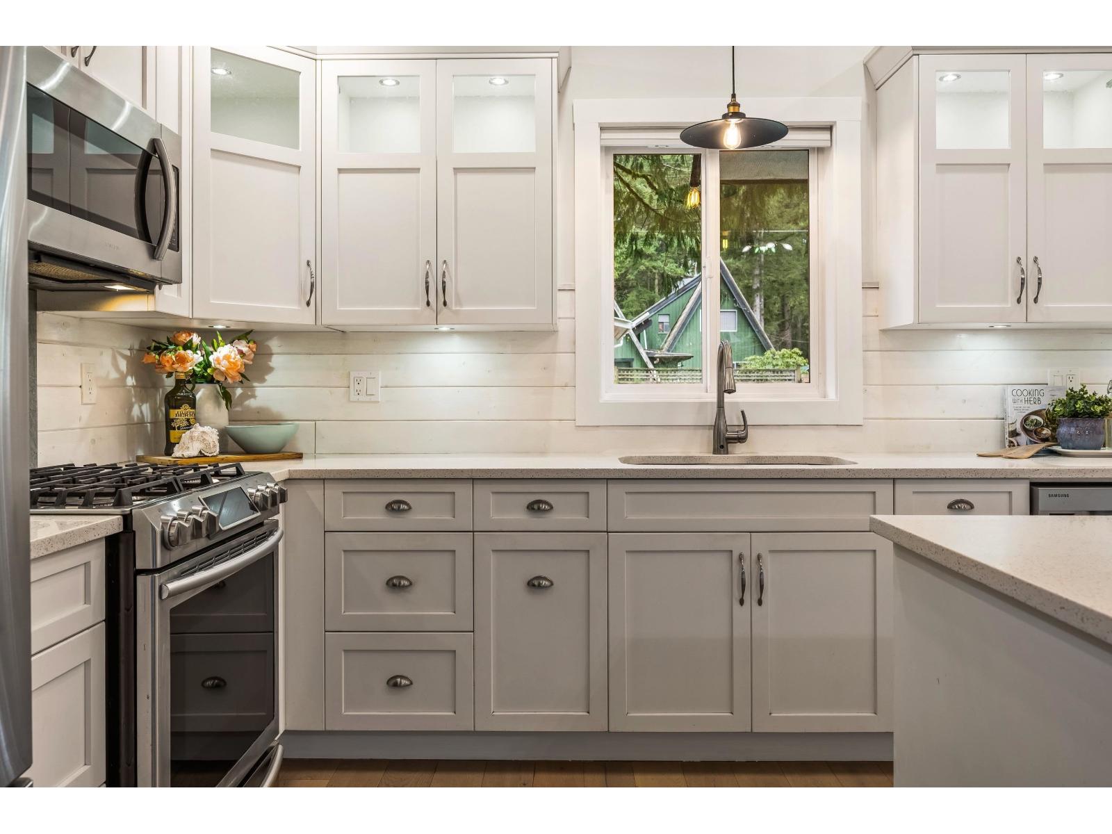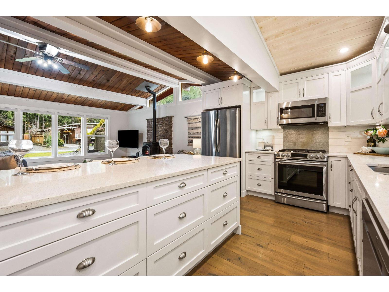 CULTUS LAKE DREAM! Situated on coveted Mountain View, this RENOVATED 2 bed, 1 bath RANCHER offers bright OPEN CONCEPT living designed for year-round enjoyment or the perfect summer escape. This STUNNING kitchen features SHAKER cabinets, QUARTZ counters, SS appliances, GAS STOVE, oversized ISLAND & generous PANTRY"-ideal for entertaining. Expansive living room with cozy GAS FIREPLACE & HEAT PUMP A/C for comfort in every season. Spa-inspired 5-piece bath with DUAL SINKS & HEATED TILE. Primary retreat with HIS & HERS closets & patio access to OUTDOOR SHOWER. AMPLE PARKING for 6+ vehicles, RV & BOAT. CARPORT, STORAGE SHED, powered 12x15 WORKSHOP & MANICURED FENCED YARD with FRUIT TREES! A MUST SEE!! * PREC - Personal Real Estate Corporation (id:64528)