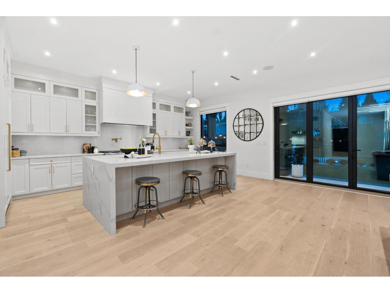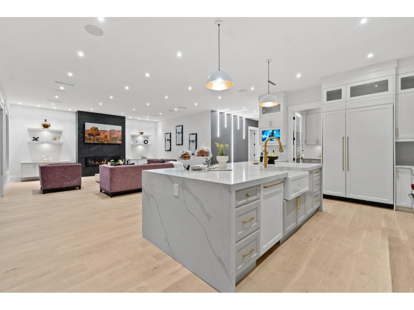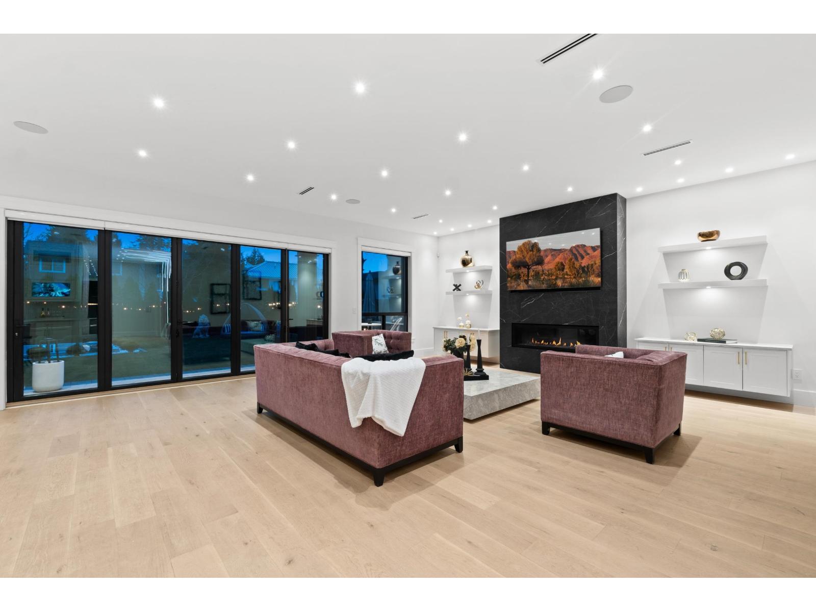 Nestled in the prestigious Crescent Beach neighborhood, this custom-built masterpiece blends contemporary elegance with functionality. Just a 6-minute walk to Crescent Park Elementary, this home offers unparalleled craftsmanship and premium finishes. A grand cast iron & glass door welcomes you into a space featuring 10-ft ceilings, engineered hardwood, A/C, radiant heating, HRV, built-in vacuum, smart thermostats, and a speaker system. The chef's kitchen boasts a 60" Wolf double range and Thermador appliances. Each bedroom has a private ensuite. A 15-ft nano door leads to a sunken fire pit patio with a Napoleon fireplace. Prepped for a gas BBQ, hot tub, and electric gate, this home delivers an unparalleled lifestyle in Crescent Beach. (id:64528)