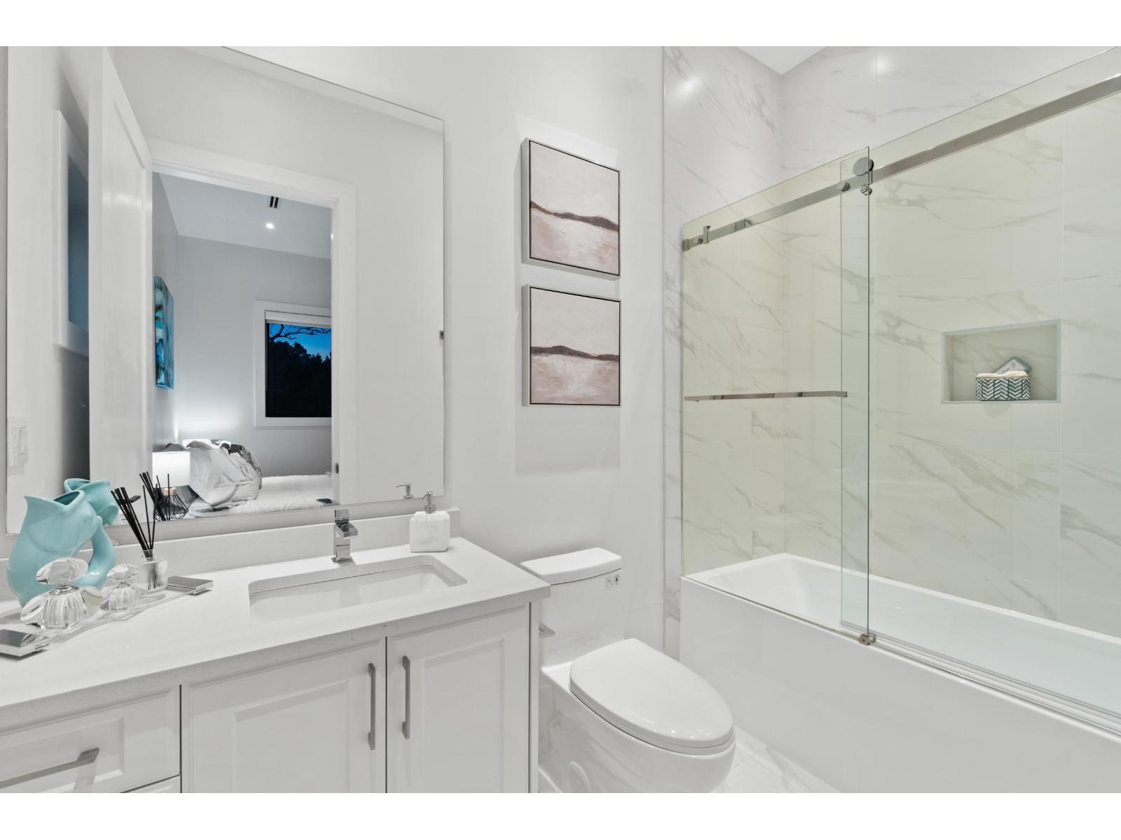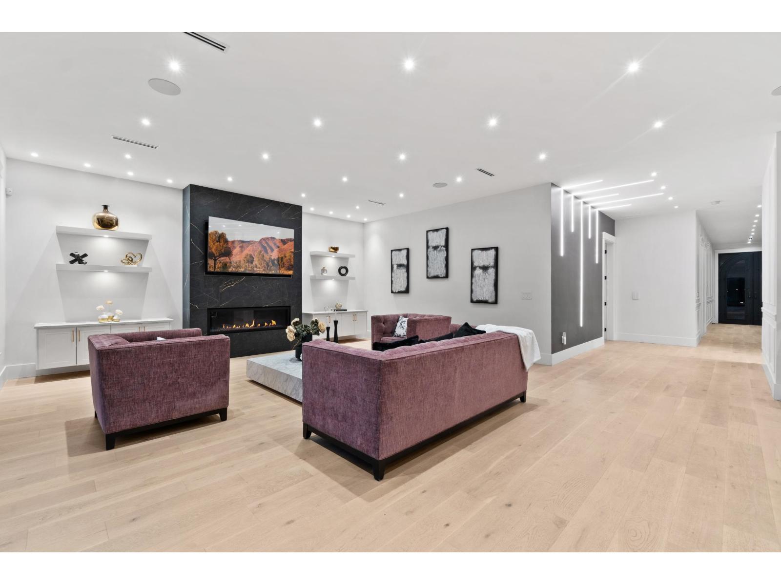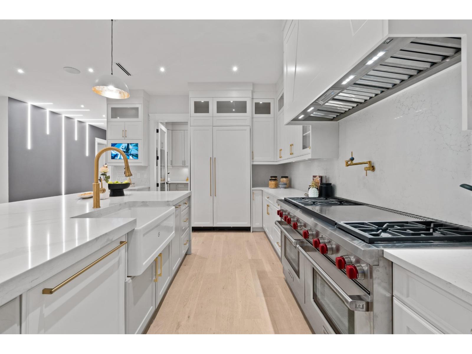 Nestled in the prestigious Crescent Beach neighborhood, this custom-built masterpiece blends contemporary elegance with functionality. Just a 6-minute walk to Crescent Park Elementary, this home offers unparalleled craftsmanship and premium finishes. A grand cast iron & glass door welcomes you into a space featuring 10-ft ceilings, engineered hardwood, A/C, radiant heating, HRV, built-in vacuum, smart thermostats, and a speaker system. The chef's kitchen boasts a 60" Wolf double range and Thermador appliances. Each bedroom has a private ensuite. A 15-ft nano door leads to a sunken fire pit patio with a Napoleon fireplace. Prepped for a gas BBQ, hot tub, and electric gate, this home delivers an unparalleled lifestyle in Crescent Beach. (id:64528)
