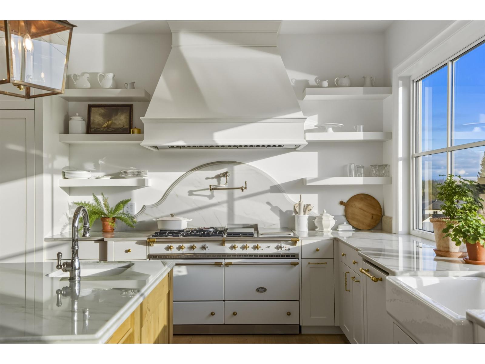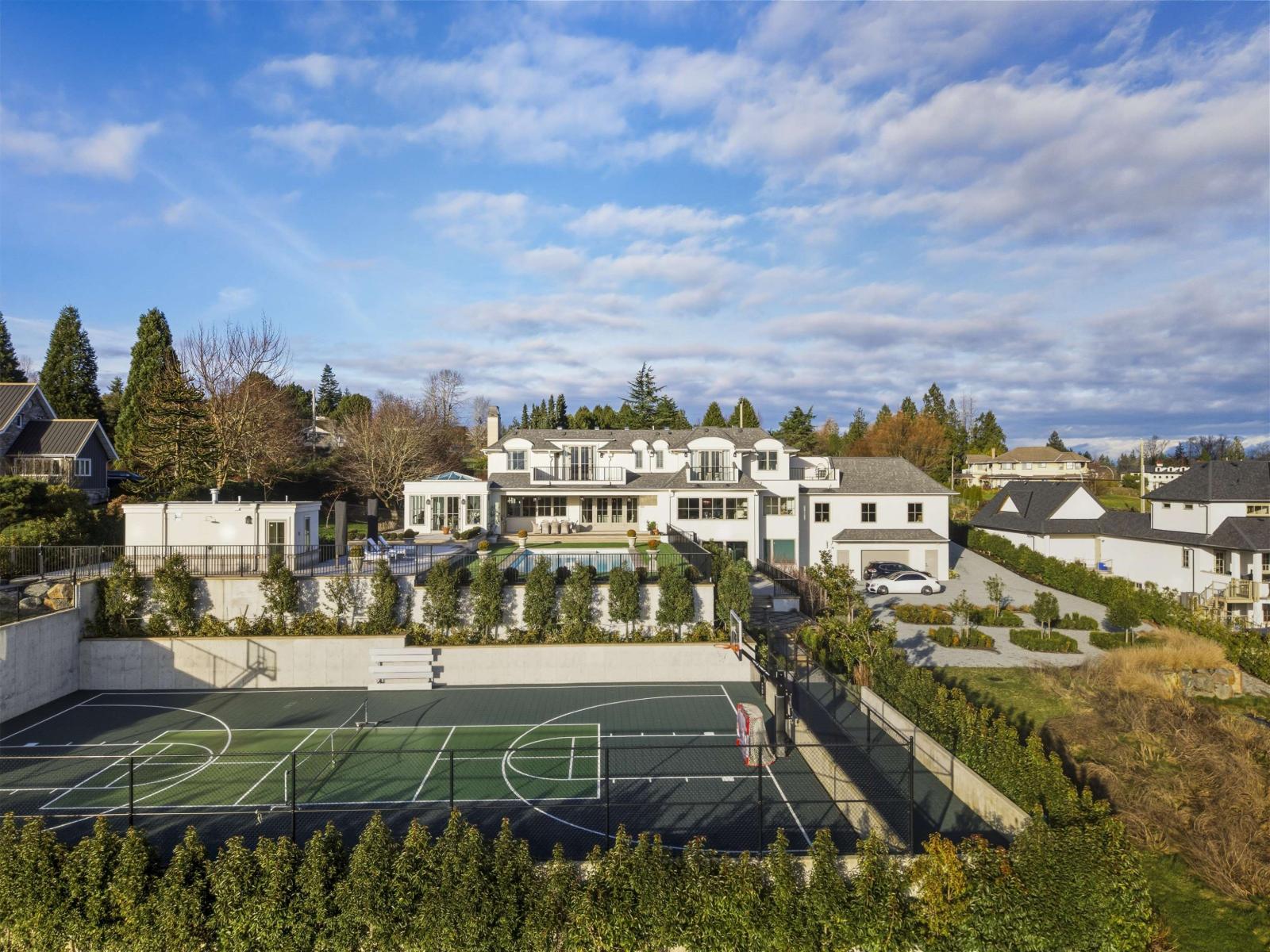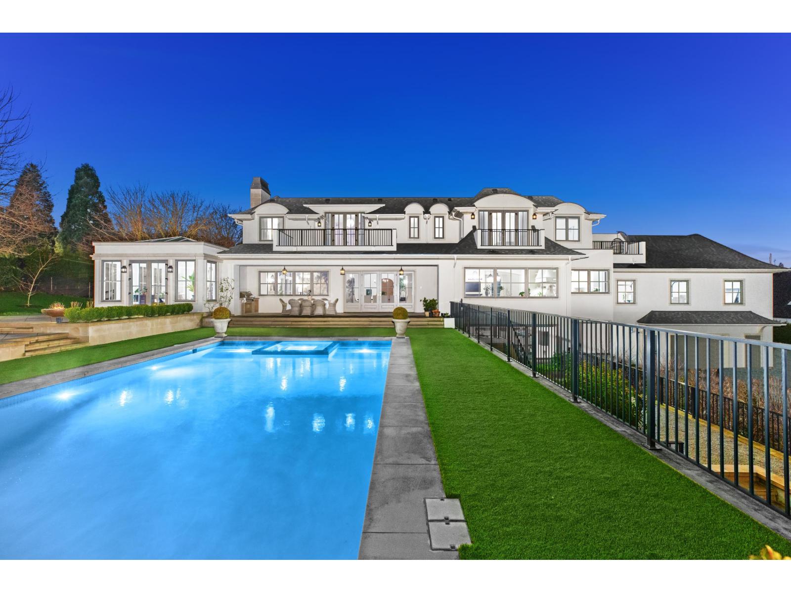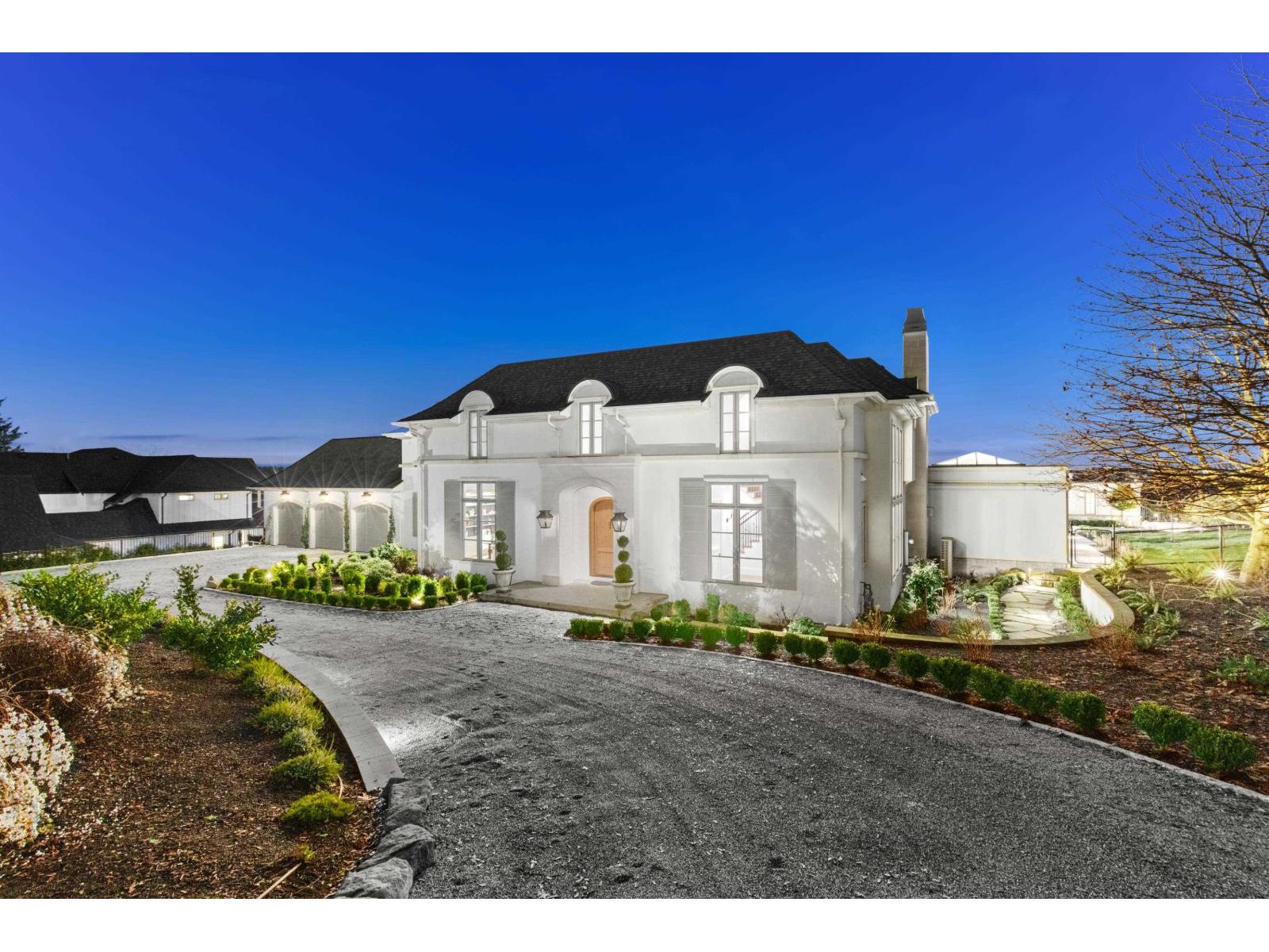 Extraordinary architectural masterpiece by award-winning Jaheny Custom Builders, set on a private 1.5-acre estate and conceived as a modern interpretation of the French Château. This landmark residence blends grandeur with contemporary sophistication, showcasing exceptional craftsmanship and the finest imported materials. The limestone exterior, dramatic rooflines, and precise detailing create a commanding arrival. Inside, Italian marble, French white oak flooring, and European-designed lighting and hardware define timeless elegance throughout. Spanning three levels with 10-ft ceilings, the home is perfectly oriented to capture sweeping water views and panoramic vistas across the Fraser Valley. A once-in-a-generation offering of unparalleled luxury, privacy, and presence! (id:64528)