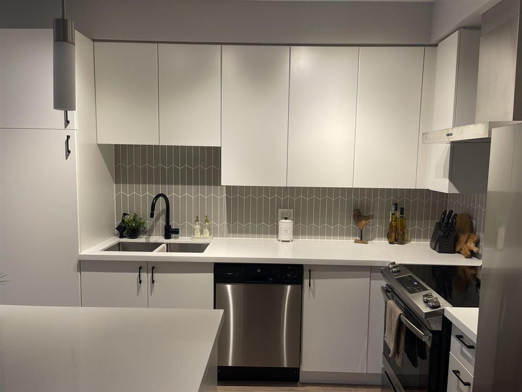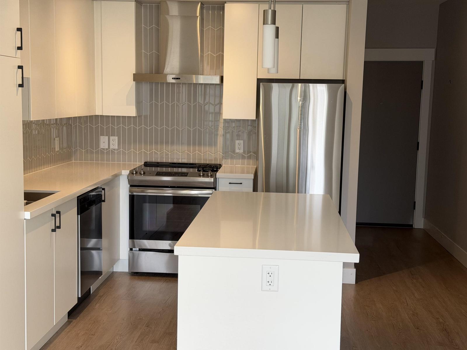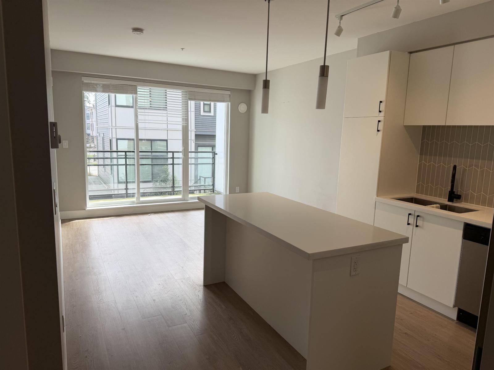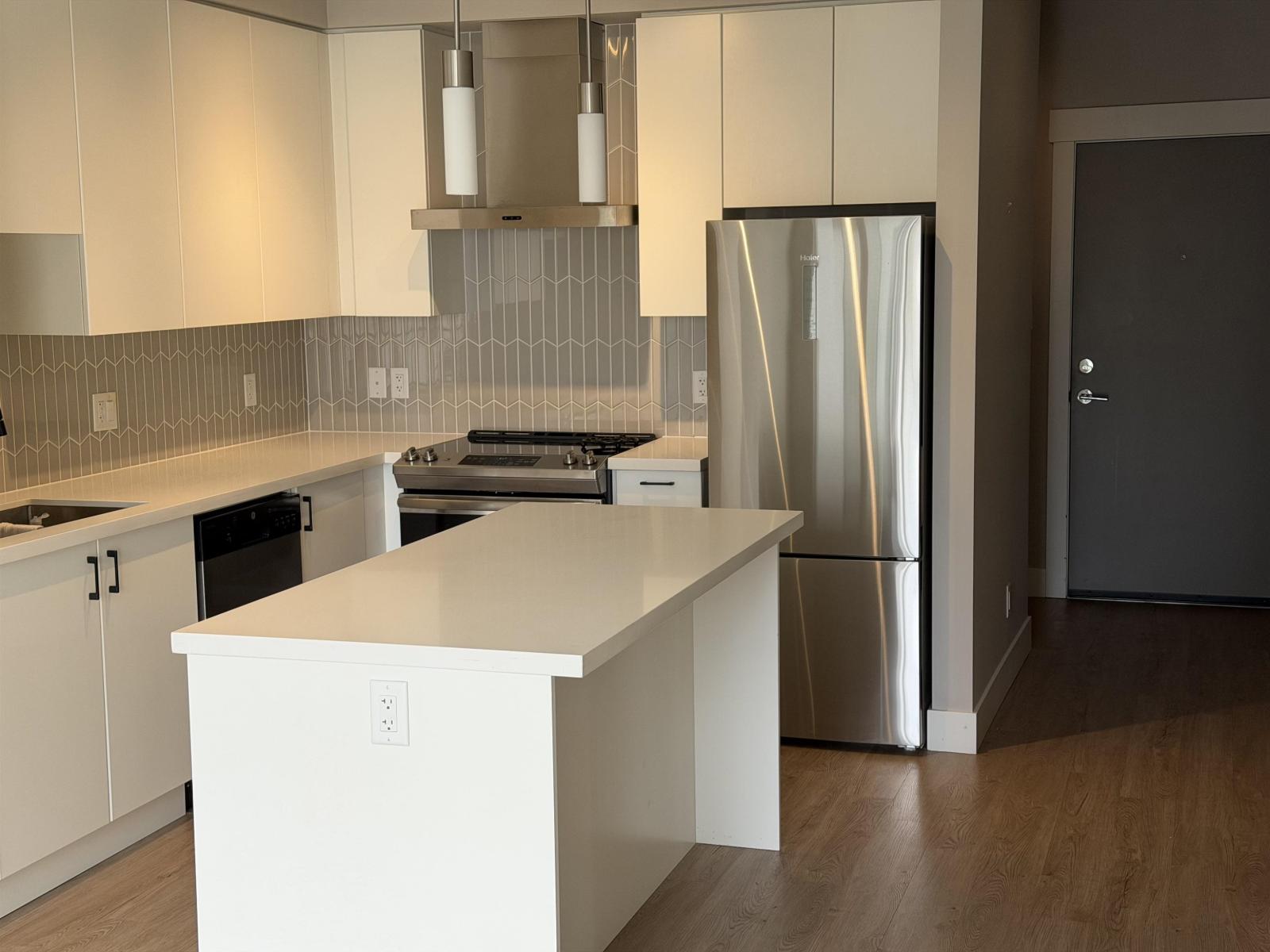 Best Price in the Development, Welcome to Hudson & Singer in the heart of Willoughby. This spacious 1-bedroom, 1-bathroom home features an open layout with a large kitchen island , sleek finishes, perfect for entertaining, spacious east-facing balcony overlooking the quiet side of the building. Just steps to Willoughby Town Centre with its shops, restaurants, and groceries, and across from Yorkson Community Park. Complete with 1 parking space and1 storage locker. Low maintenance fees. Two pets allowed and rental friendly Perfect for first-time buyers or investors! Easy to Show. (id:64528)