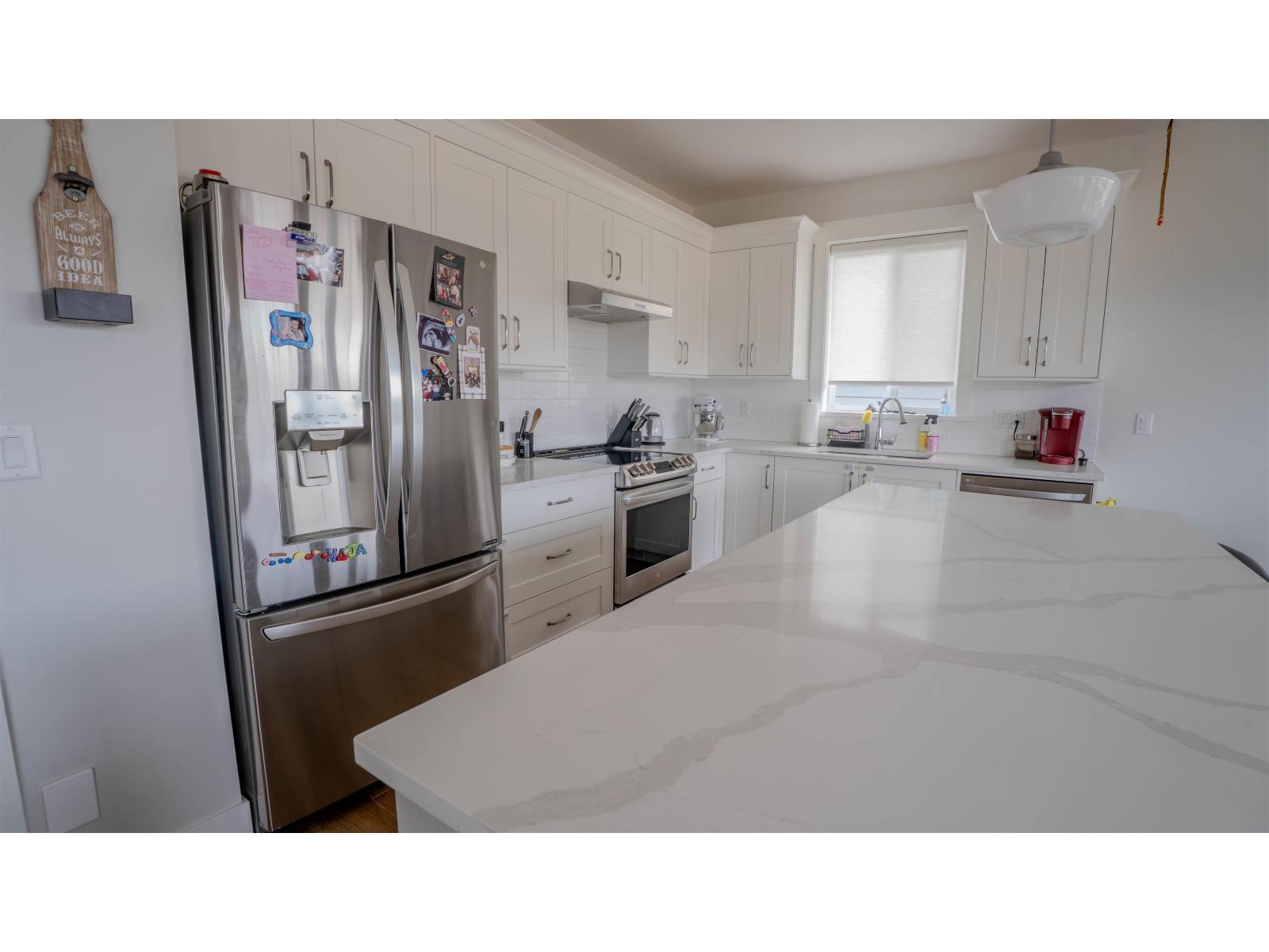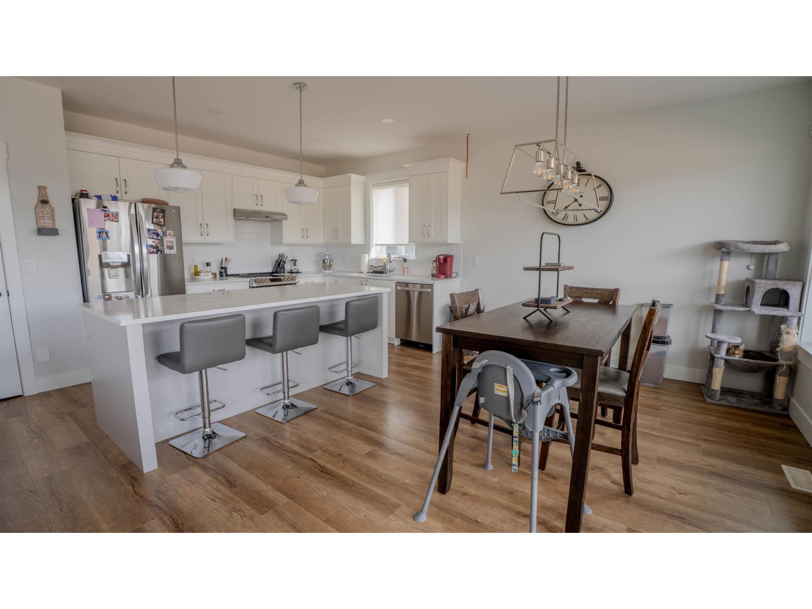 Welcome to this beautifully designed 5-bedroom home. The open-concept kitchen features quartz countertops, quality appliances, a spacious pantry, and plenty of natural light, flowing seamlessly into a cozy living area ideal for entertaining. The main floor offers three bedrooms, including a primary suite with a 5-piece ensuite and an additional full bathroom. This home is equipped with modern features such as central air conditioning, a built-in vacuum system, custom blinds, and stylish laminate flooring throughout. The lower level provides additional living space, offering excellent flexibility for extended family use. Enjoy a fully fenced backyard with scenic views. Still under warranty, this well-maintained home is located in a desirable neighbourhood close (id:64528)