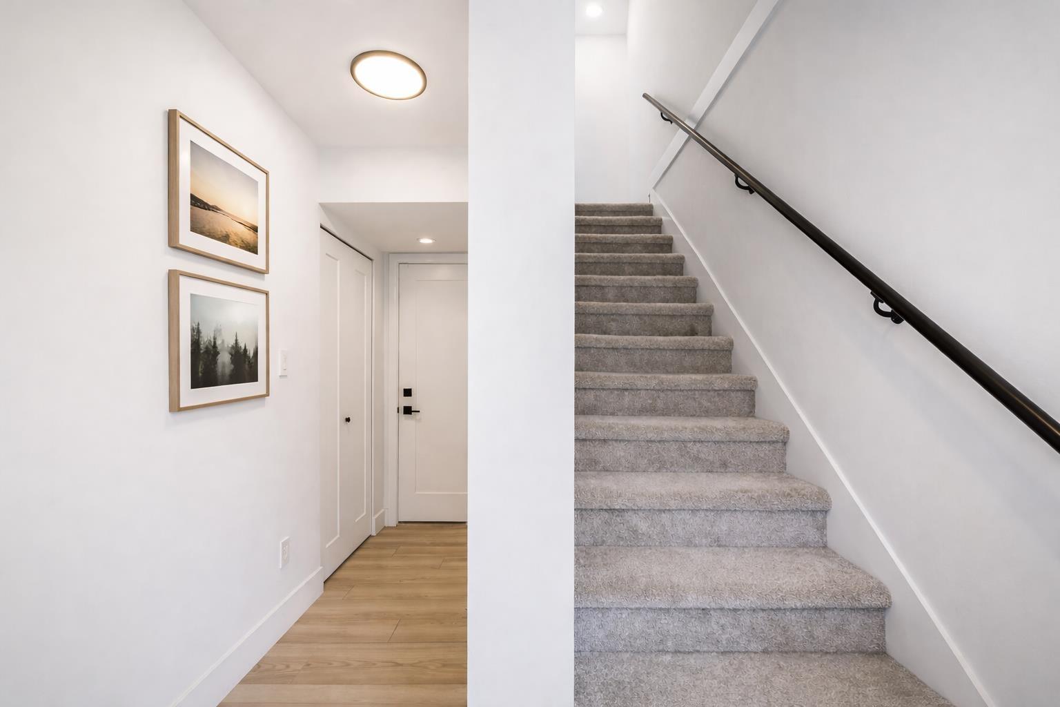 Don't miss out! This end unit boasts additional windows for enhanced natural light, 10' ceilings, and high-end finishes throughout. Chef-inspired kitchen with a 30" KitchenAid gas range, pot filler, 60" French door fridge, white cabinetry, under-cabinet lighting, granite countertops, and a stunning 9' island-perfect for entertaining. Enjoy exceptional privacy with no direct rear neighbours in this tree-lined setting in sought-after Fraser Heights. Upstairs features 3 bedrooms, custom closets, and laundry with added storage. Spacious primary retreat with dual walk-in closets and a spa-like ensuite. Lower level offers a bedroom, full bath, and wet bar-ideal for guests, a nanny, extended family, or potential rental use. Double car garage with EV charger. OPENS: Sat & Sun, Apr 18 & 19, 2-4 PM (id:64528)