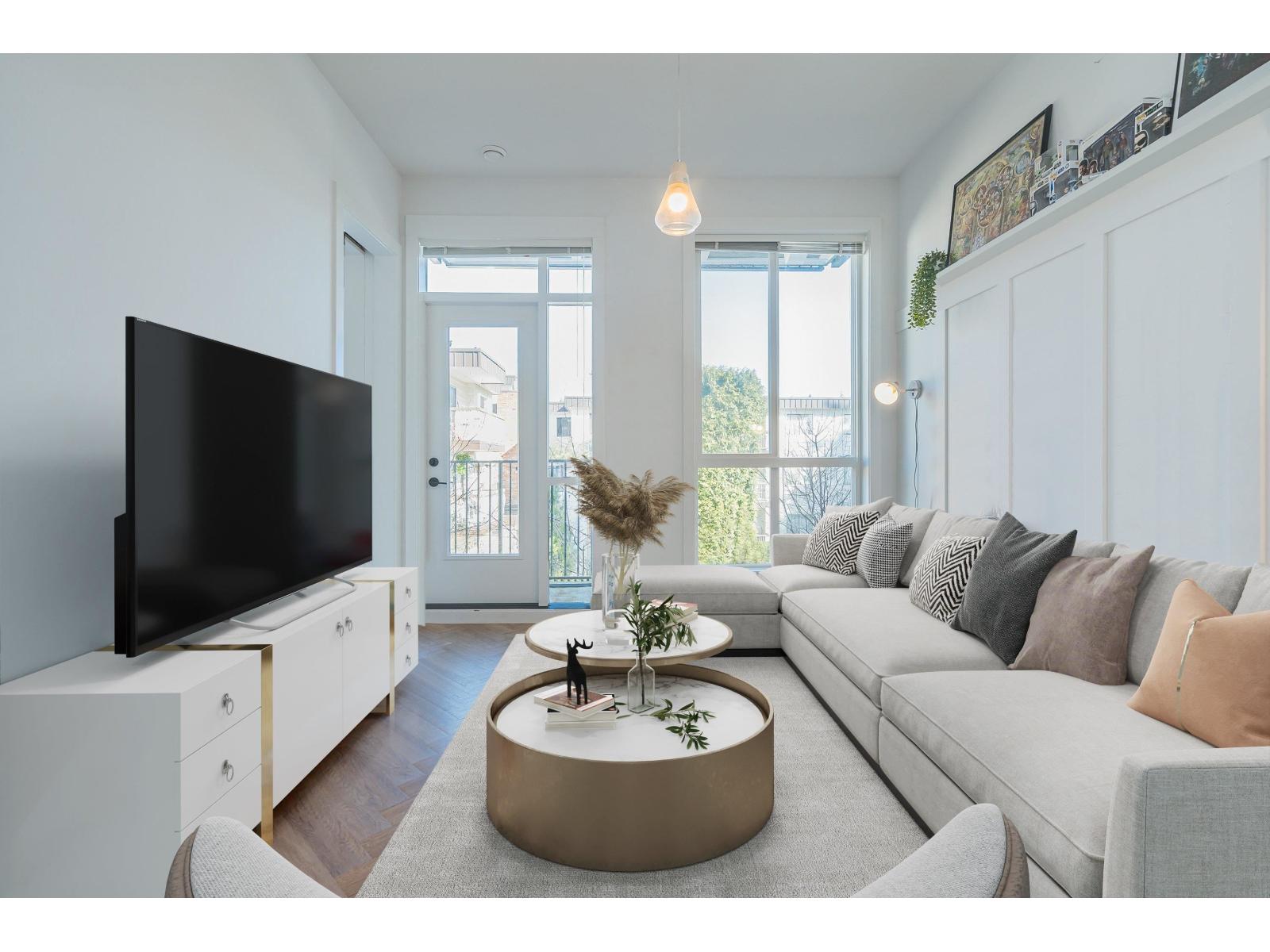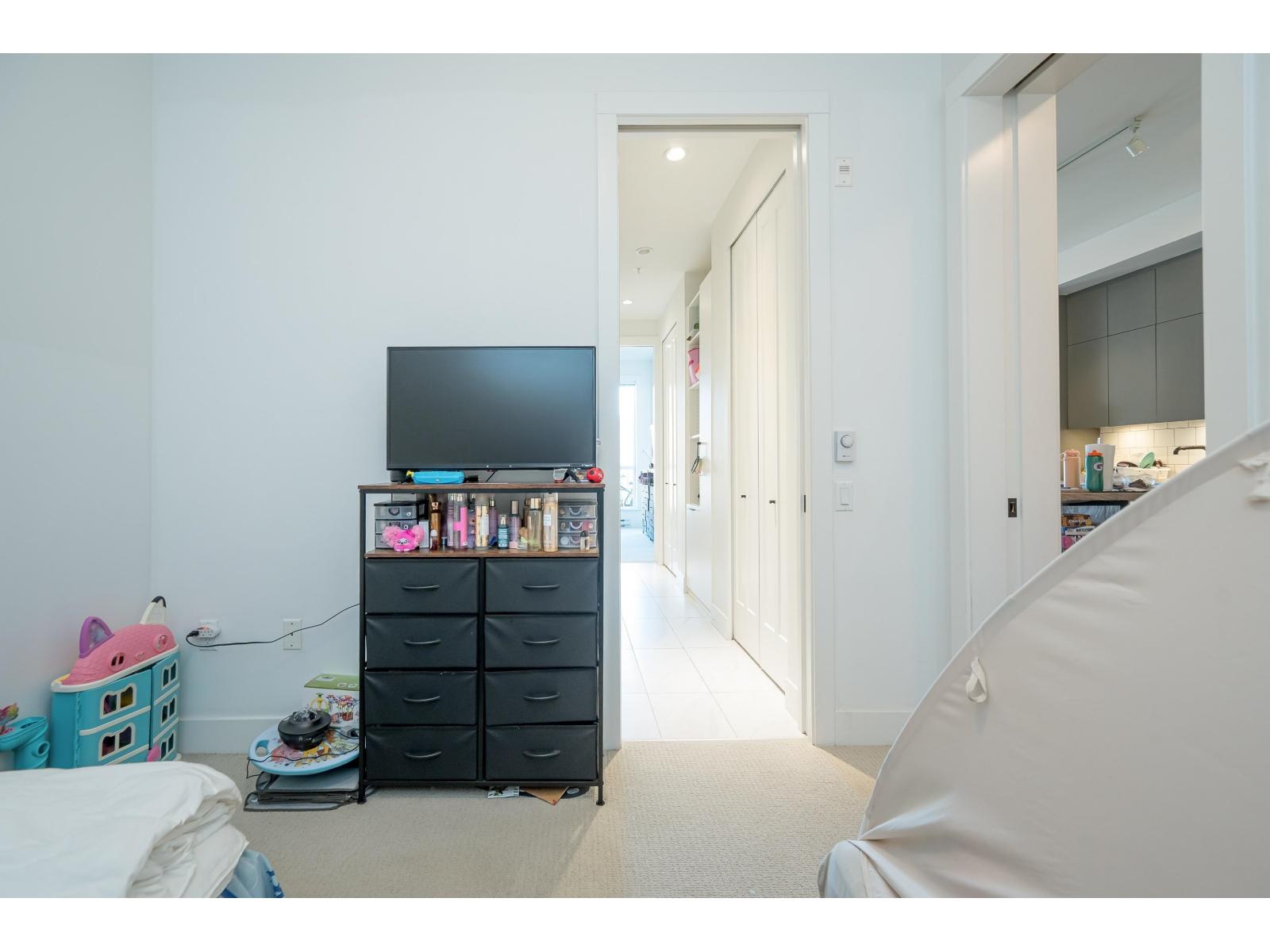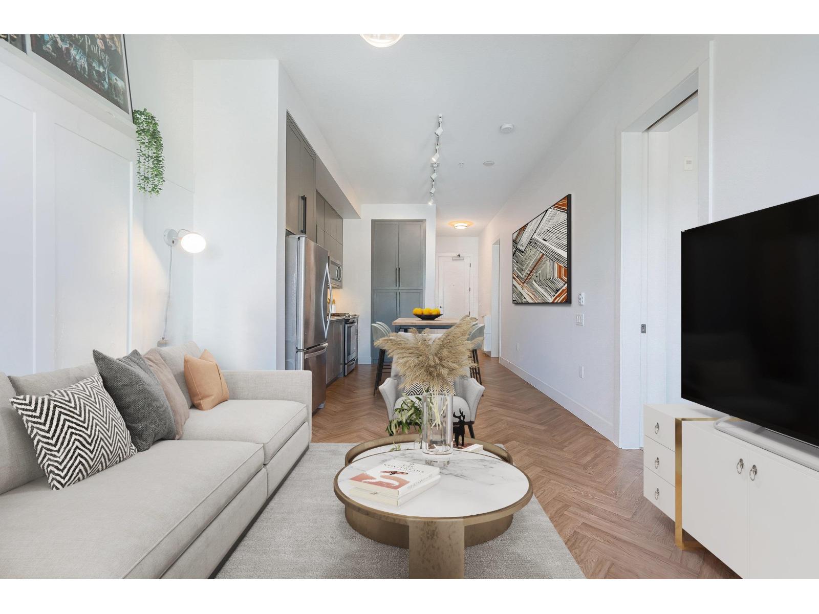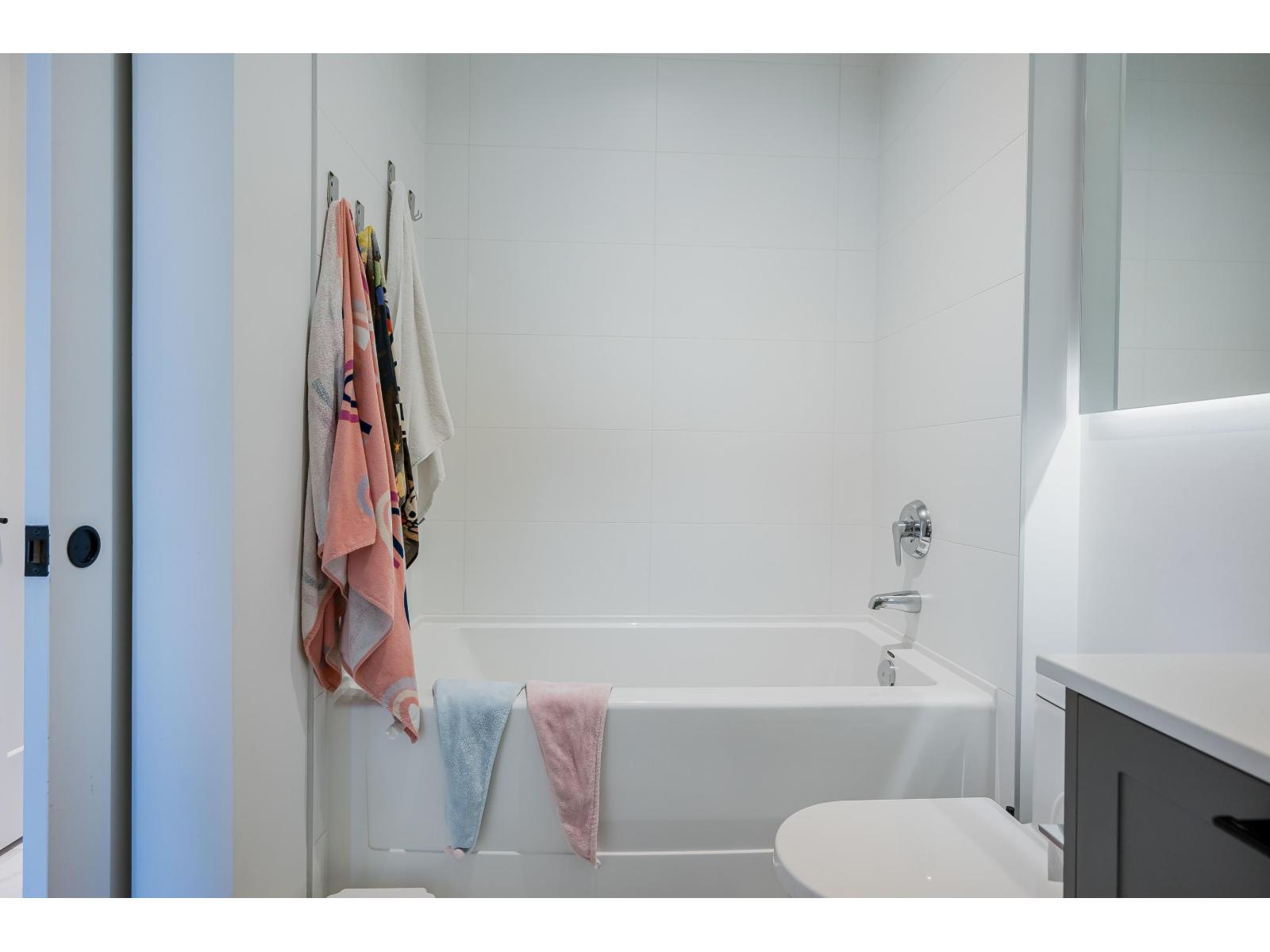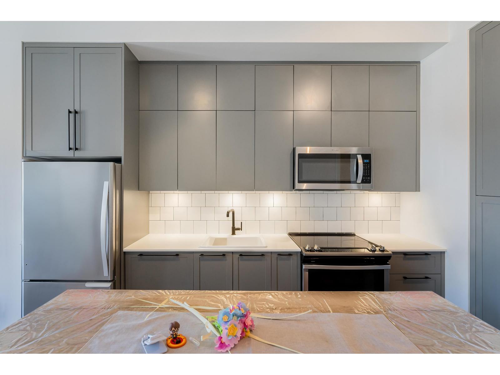 Welcome to Guildhouse II by award-winning Mosaic Homes, still under warranty. Lovely, modern 2 bedroom, 2 bathroom condo with soaring 10' ceilings and over-sized windows for lots of natural light. Peaceful, private outlook towards trees and garden with balcony for relaxing and bbqs. Excellent open-concept layout w spacious kitchen, high-end stainless steel appliances and pantry. Both bedrooms are a generous size with walk through closet and luxurious ensuite bathroom. Powder room for convenience. Two side-by-side parking spaces. Pet friendly. Well-equipped recreation centre. Centrally located, steps to Guildford Town Centre, schools and transit. Tenants are leaving 30 June. (id:64528)