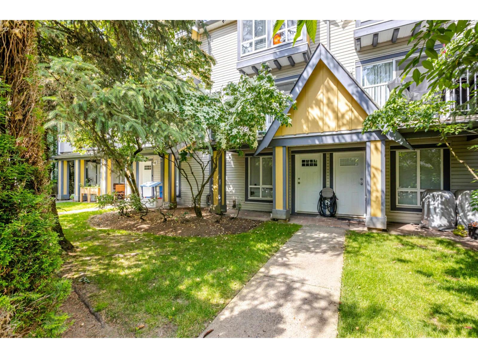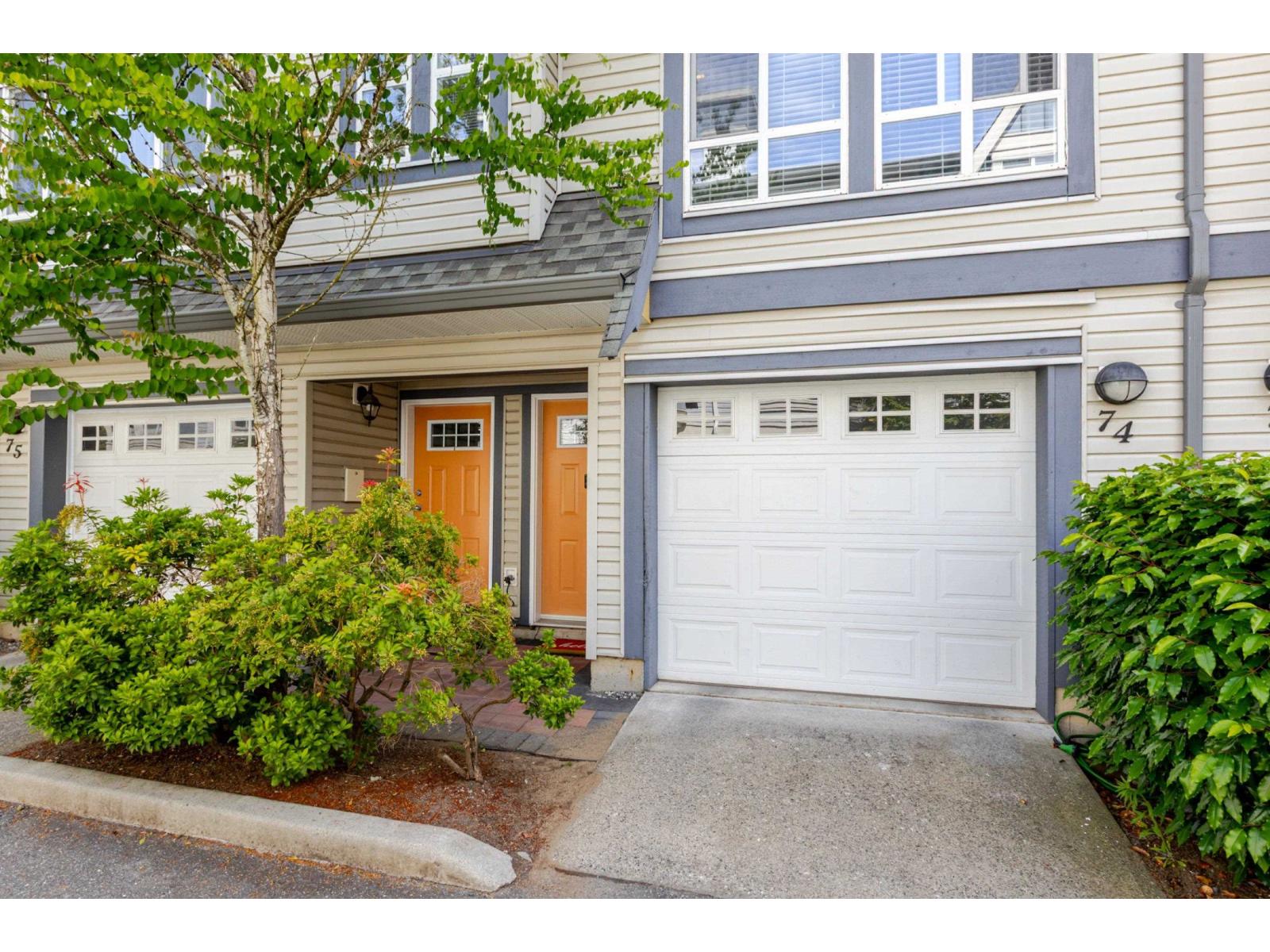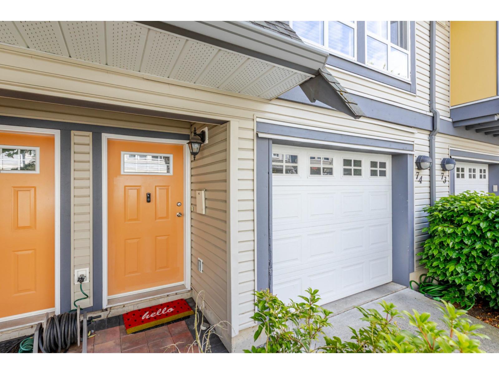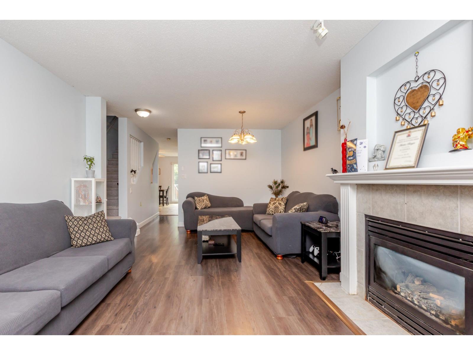 Welcome to this bright and spacious unit with 3 bedrooms & 3 bathrooms at Camelot. Large kitchen featuring island with breakfast bar, granite counters and a large eating area. Open concept living and dining room with laminate flooring & a cozy gas fireplace. The tandem garage is huge, with windows & doors at both ends, park 2 cars or convert the back half to a games room or office with its own private entrance. Good sized back yard, Bonus street parking right out the back! The location can not be beat, short walk to shopping, restaurants, rec center, library, both levels of school, public transportation and Future Sky Train Station at walking distance. Open House this Sunday, 2PM - 4PM. (id:64528)
