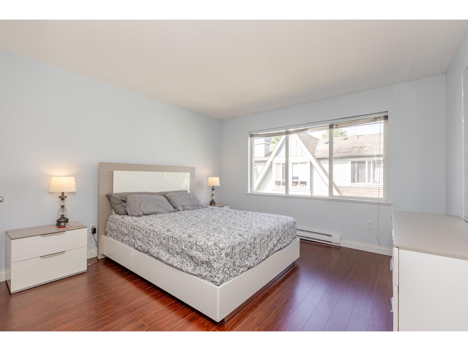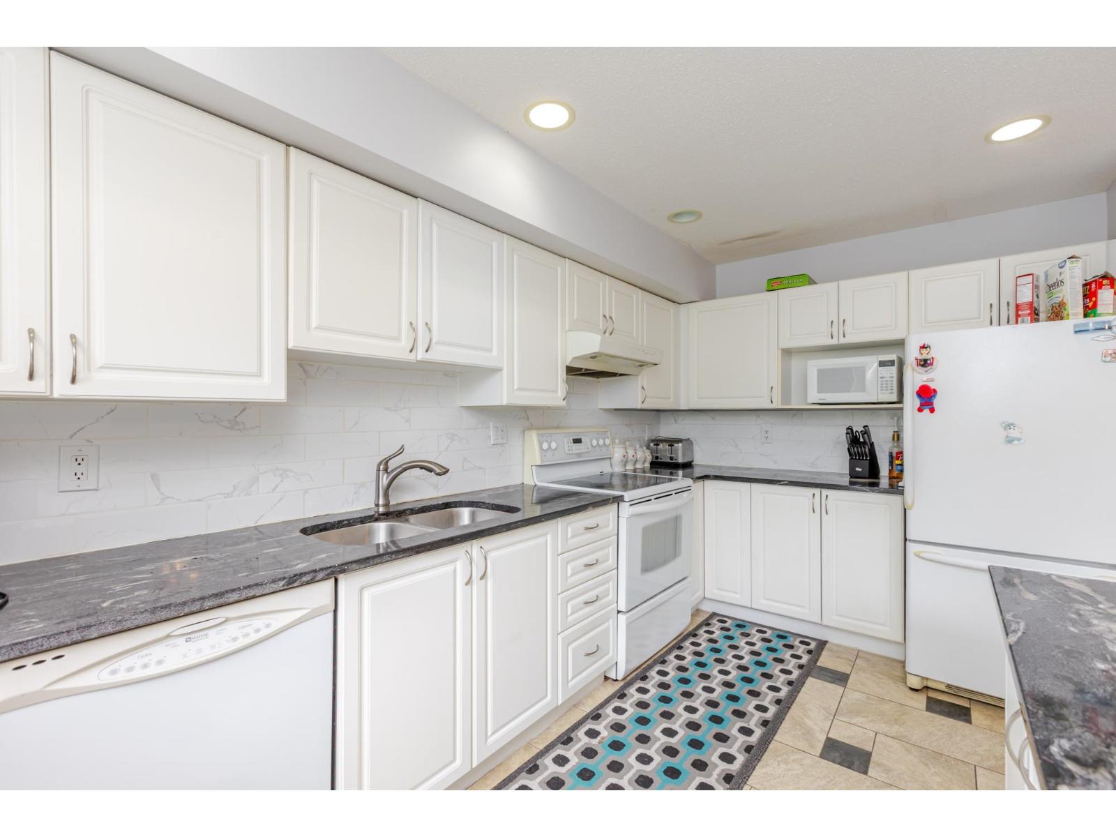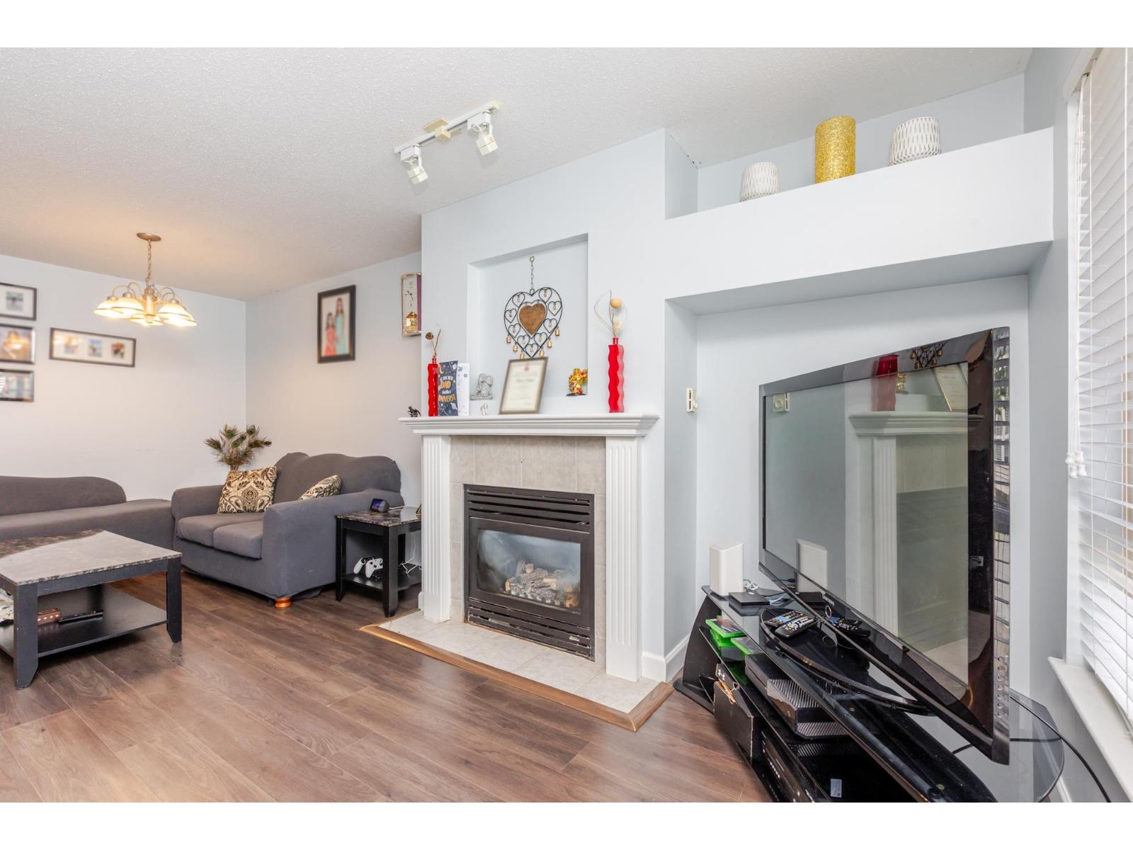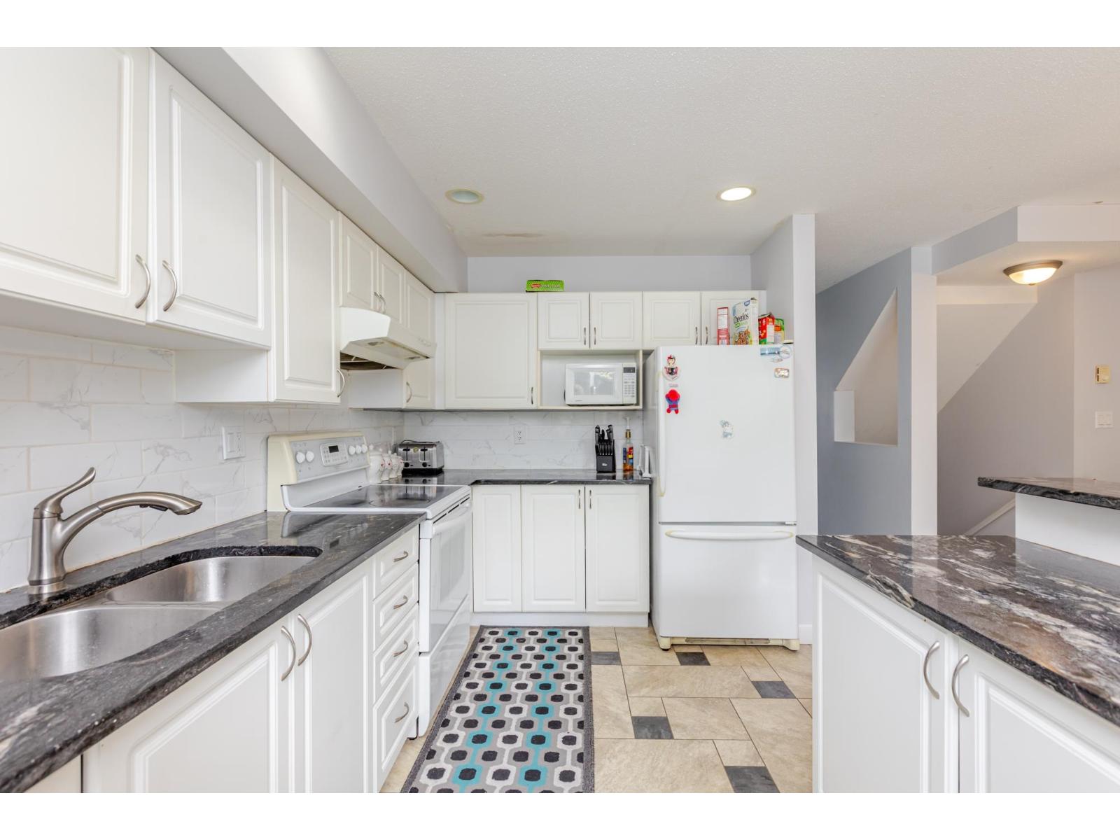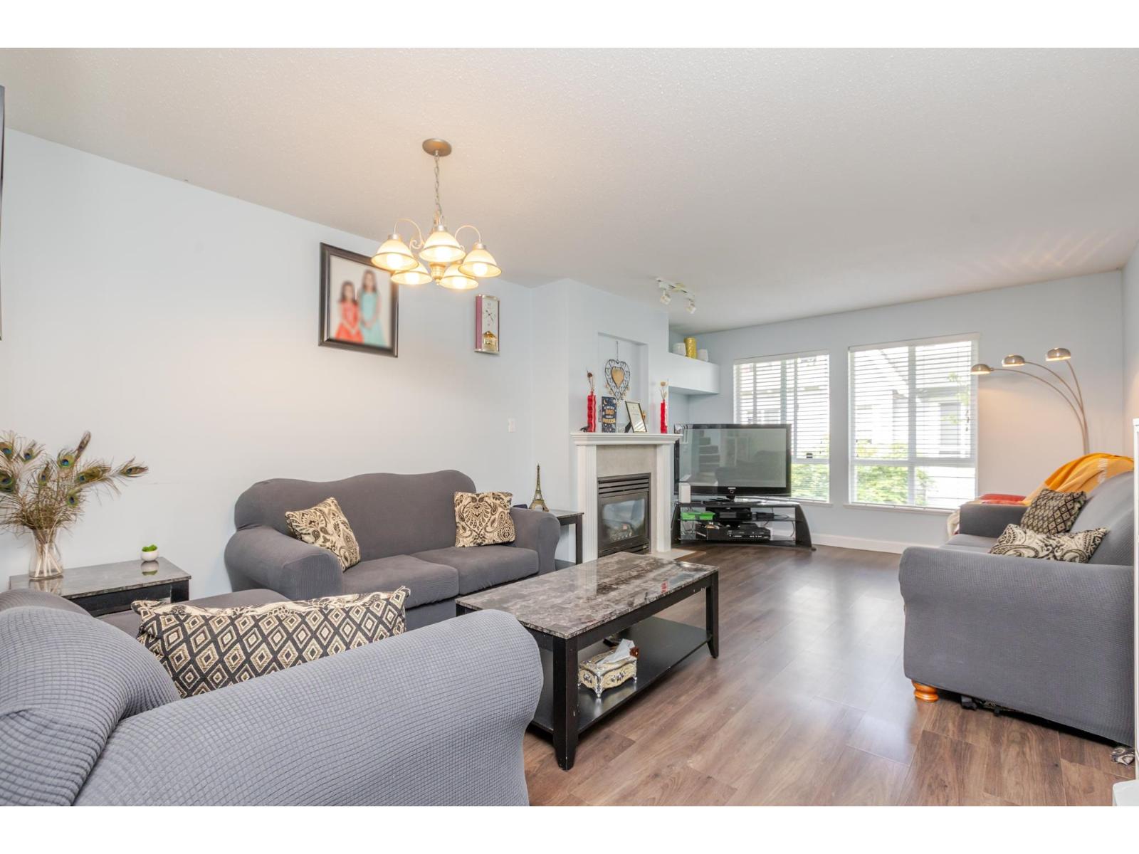 Welcome to this bright and spacious unit with 3 bedrooms & 3 bathrooms at Camelot. Large kitchen featuring island with breakfast bar, granite counters and a large eating area. Open concept living and dining room with laminate flooring & a cozy gas fireplace. The tandem garage is huge, with windows & doors at both ends, park 2 cars or convert the back half to a games room or office with its own private entrance. Good sized back yard, Bonus street parking right out the back! The location can not be beat, short walk to shopping, restaurants, rec center, library, both levels of school, public transportation and Future Sky Train Station at walking distance. Open House this Sunday, 2PM - 4PM. (id:64528)
