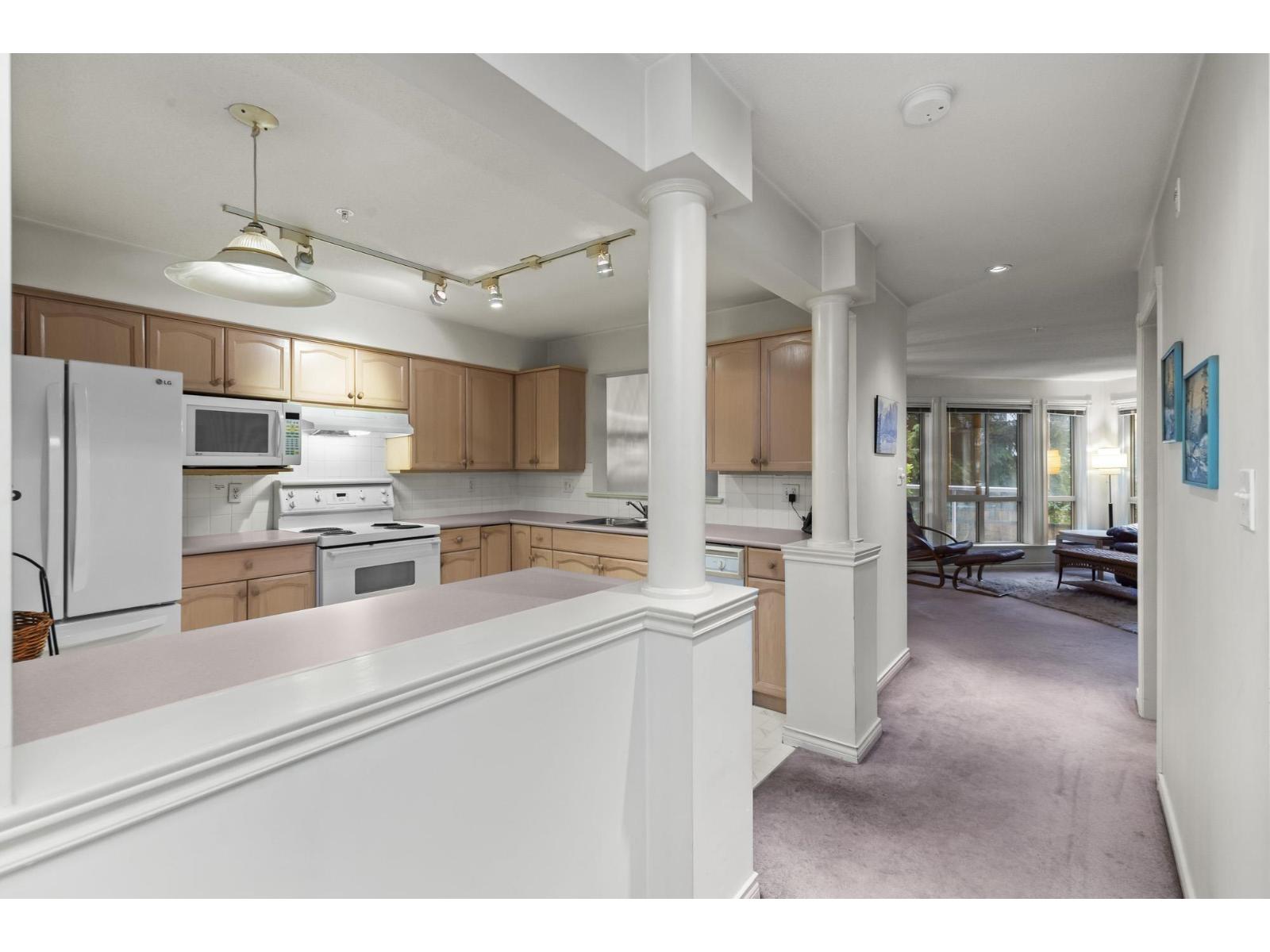 NEW PRICE! Endless Potential! Exceptional Location! Spacious 2 bed, 2 bath 1,177 sq ft corner unit. Huge open living & dining areas, extra corner windows for abundant light & serene deck on the quieter side of the complex. Generous kitchen w/ ample counter space, massive Primary bed w/walk in closet & ensuite + full laundry rm & extra storage. Mostly original cond. giving an opportunity to add value, preliminary estimate of approx $15k for new flooring and paint, simple refresh allowing buyers to elevate the space while building equity instantly! Well managed complex w/ fantastic amenities: lounge, fitness centre, rec room & pool table, bike rm & guest suite. Steps to everything! Strata fees incl Gas/hot wtr (cat /dog up to 22 lbs) (id:64528)