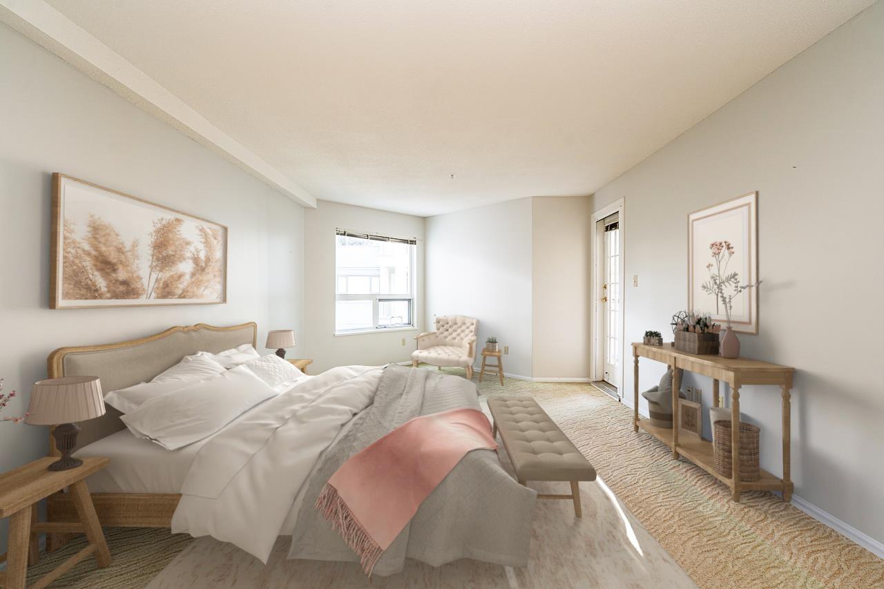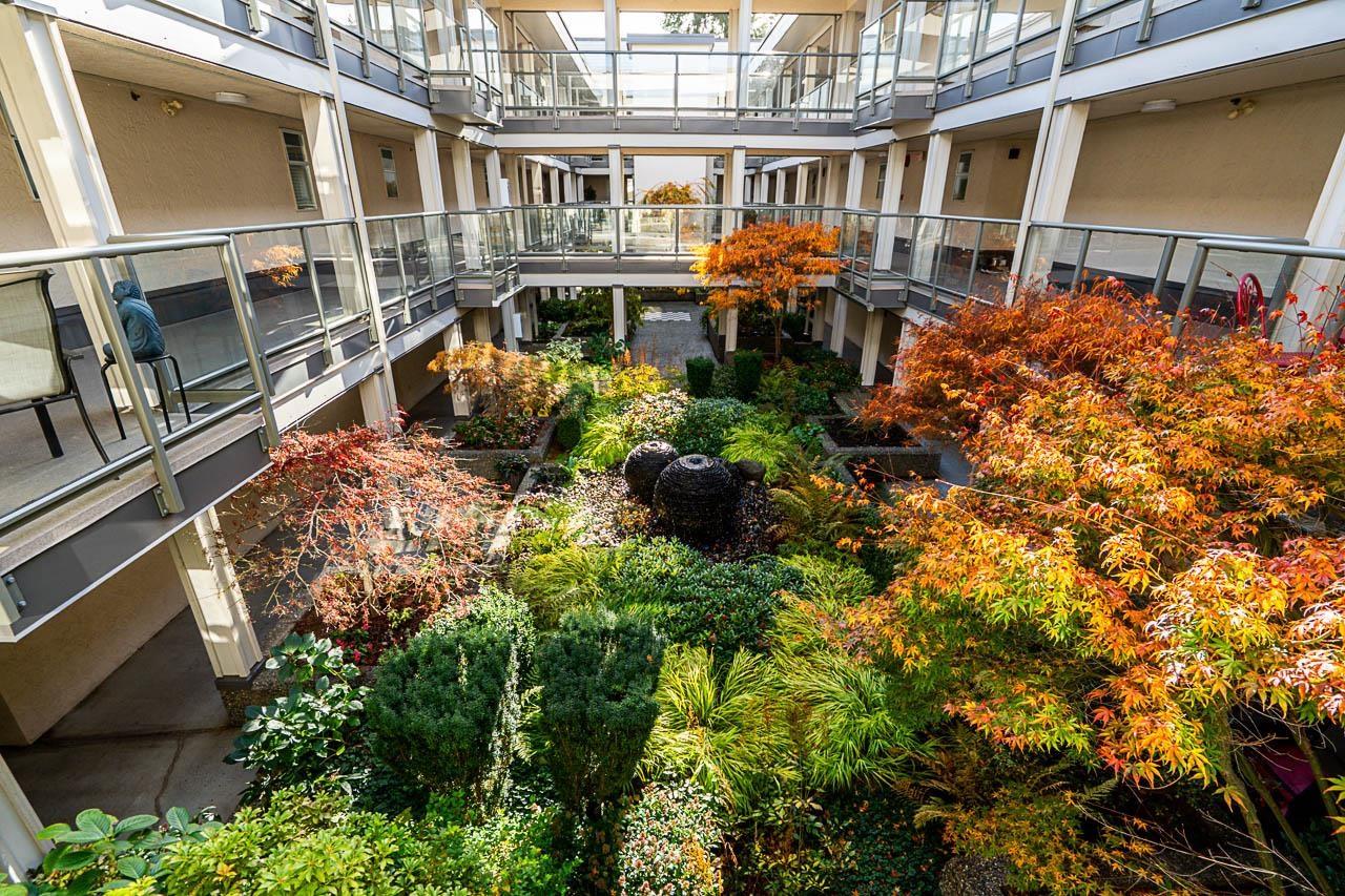 Welcome to The Courtyard! Large, 2-bed, 2-bath condo with secure basement parking and elevator access. Large master bedroom features an ensuite bath and double closets. Private balcony off the living room. The front door opens to an open-air courtyard with a fountain. In-suite laundry. Well-maintained building in a prime location near Semiahmoo Mall, transit, and Bakerview Park. (id:64528)