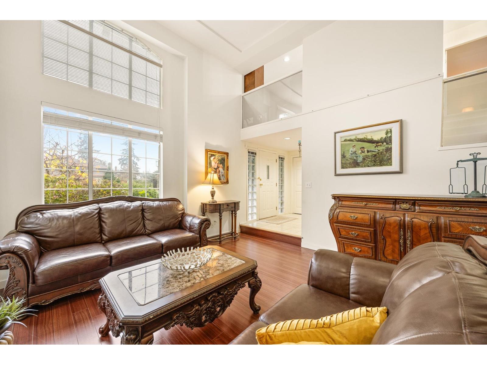 Calling all car enthusiasts! This Sherbrooke Estates home offers plenty of parking space with a rare triple-car garage. Situated on a large, flat, rectangular lot in a quiet neighbourhood, yet just minutes to transit, highways, shopping, recreation, and Sunnyside Acres Urban Forest, and White Rock Beaches. Located in the highly sought-after Elgin Park Secondary catchment, it's ideal for families prioritizing top schools. Step inside and be impressed by the soaring vaulted ceilings and a versatile floor plan featuring 5 bedrooms, including a convenient main-level bedroom. The secondary sitting area on the second floor is perfect for evening gatherings or family time. Spacious, functional, and full of natural light, this home combines comfort, convenience, and lifestyle in one exceptional package. (id:64528)