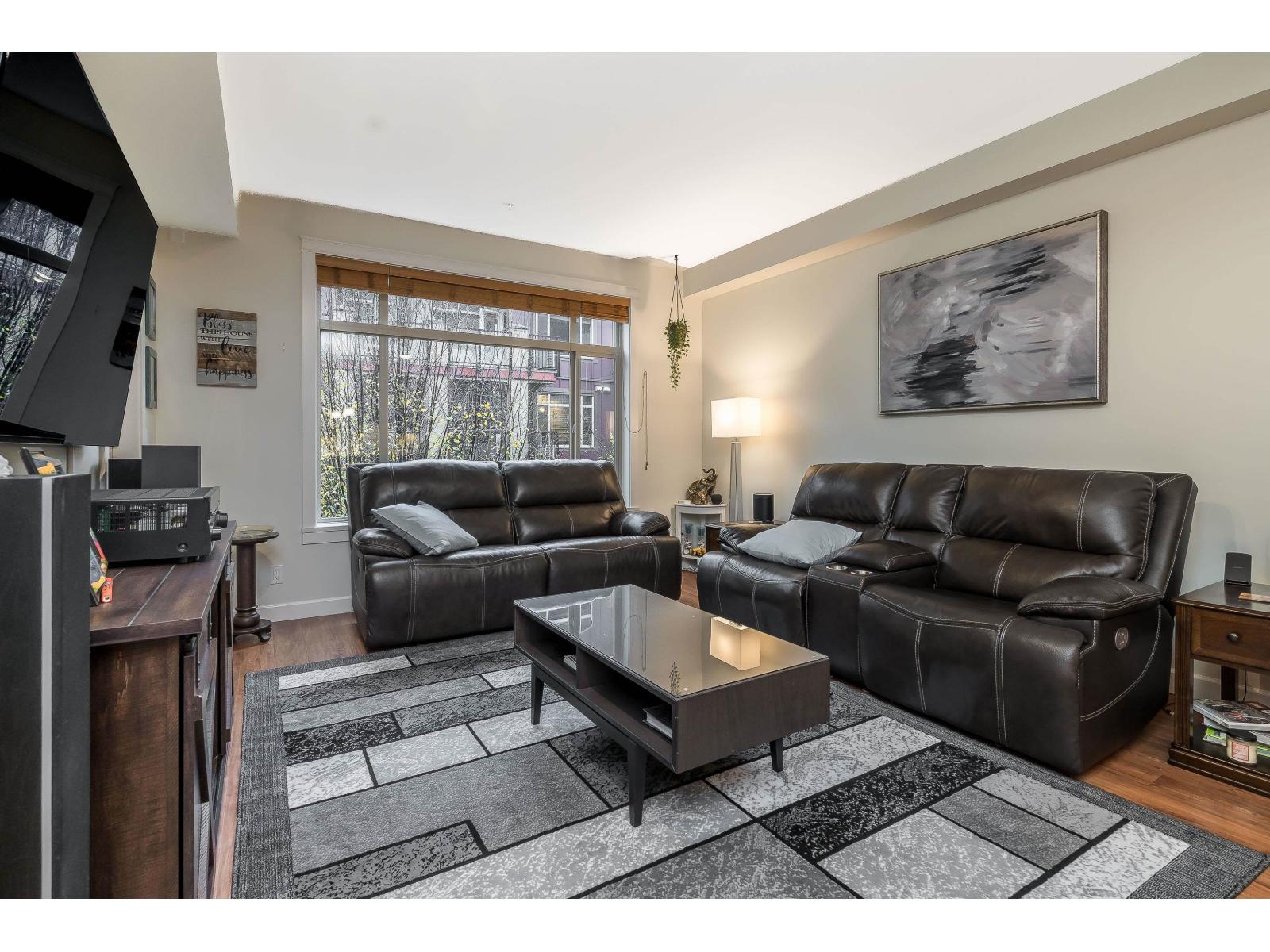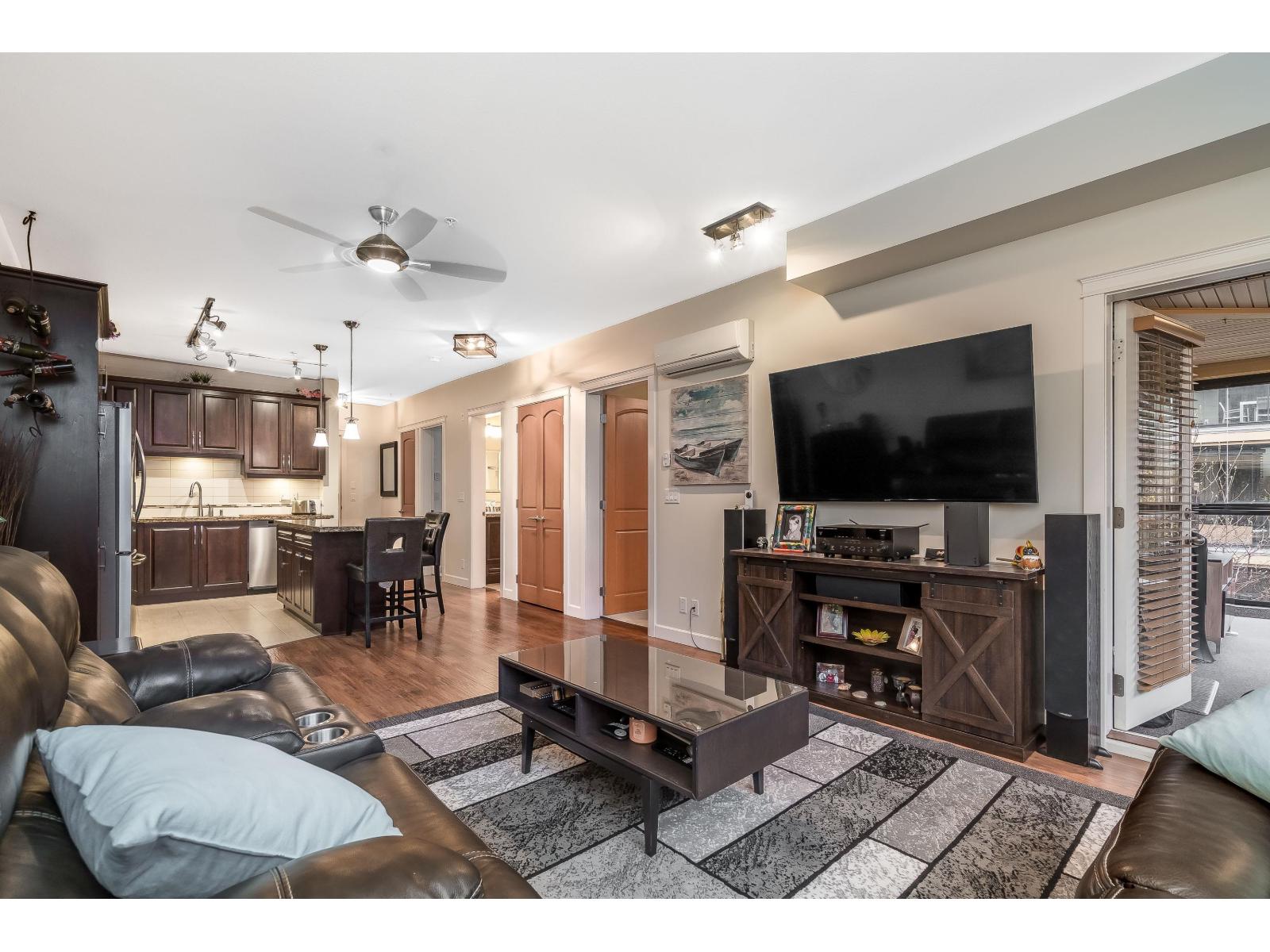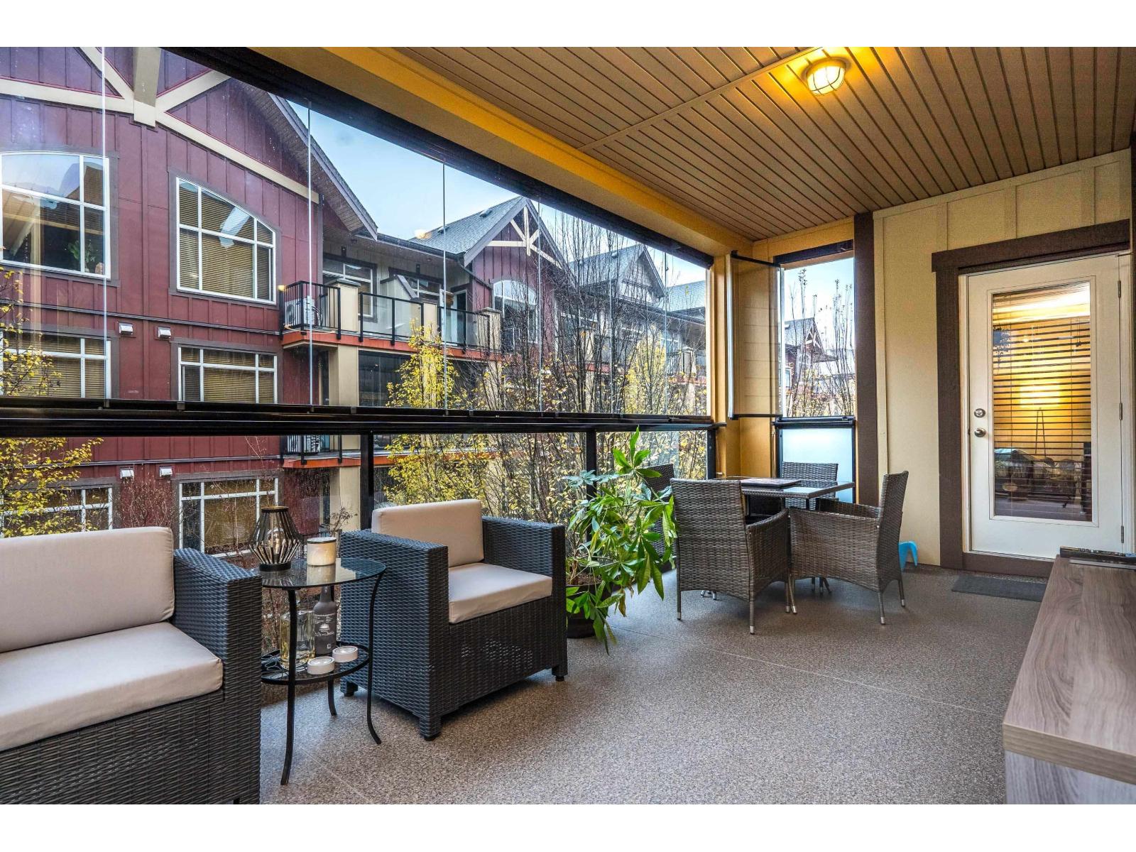 YORKSON CREEK in the heart of Willoughby! This beautiful end unit features 2 bedrooms, 2 bathrooms, and a den, plus an impressive wrap-around solarium deck ideal for year-round enjoyment. Thoughtfully cared for, this home has been maintained in exceptional condition. The gourmet kitchen showcases stainless steel appliances, rich wood cabinetry, granite countertops, and a large island perfect for both cooking and entertaining. The primary bedroom offers a spacious walk-in closet, a spa-inspired ensuite, and direct access to the solarium. Located just steps from shops, schools, parks, and transit-this one truly has it all! (id:64528)