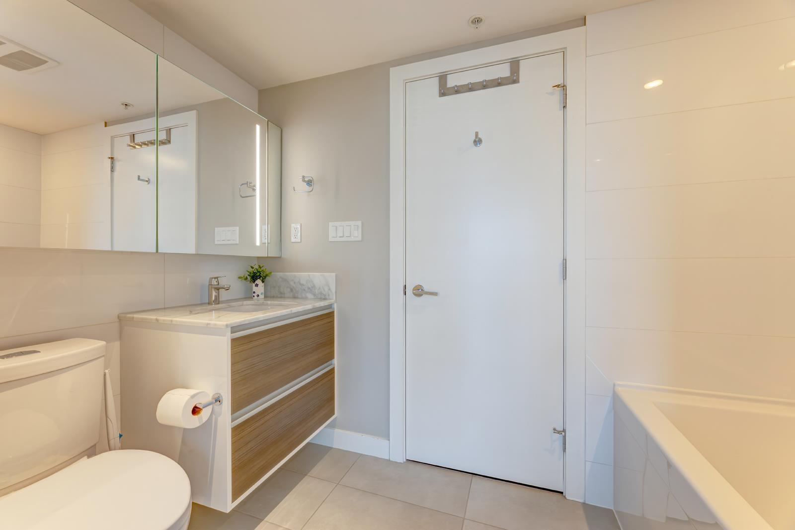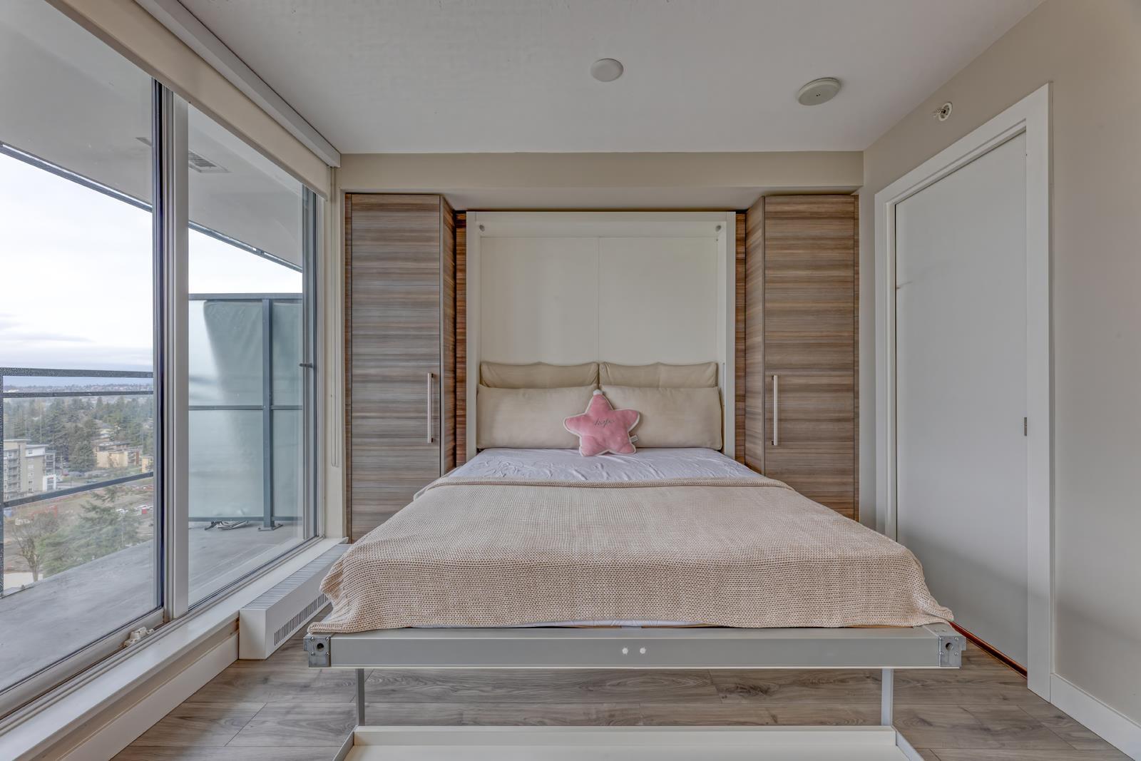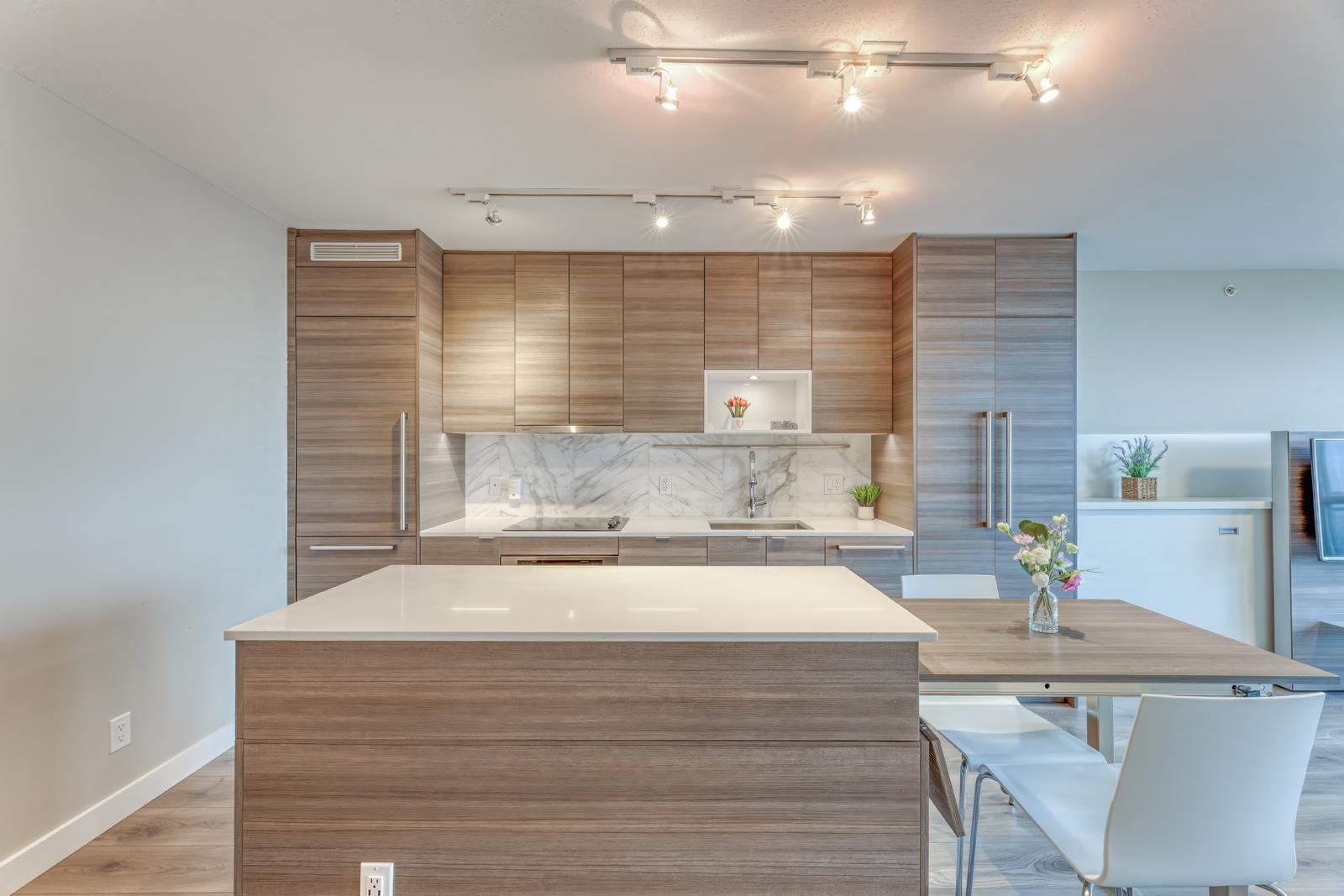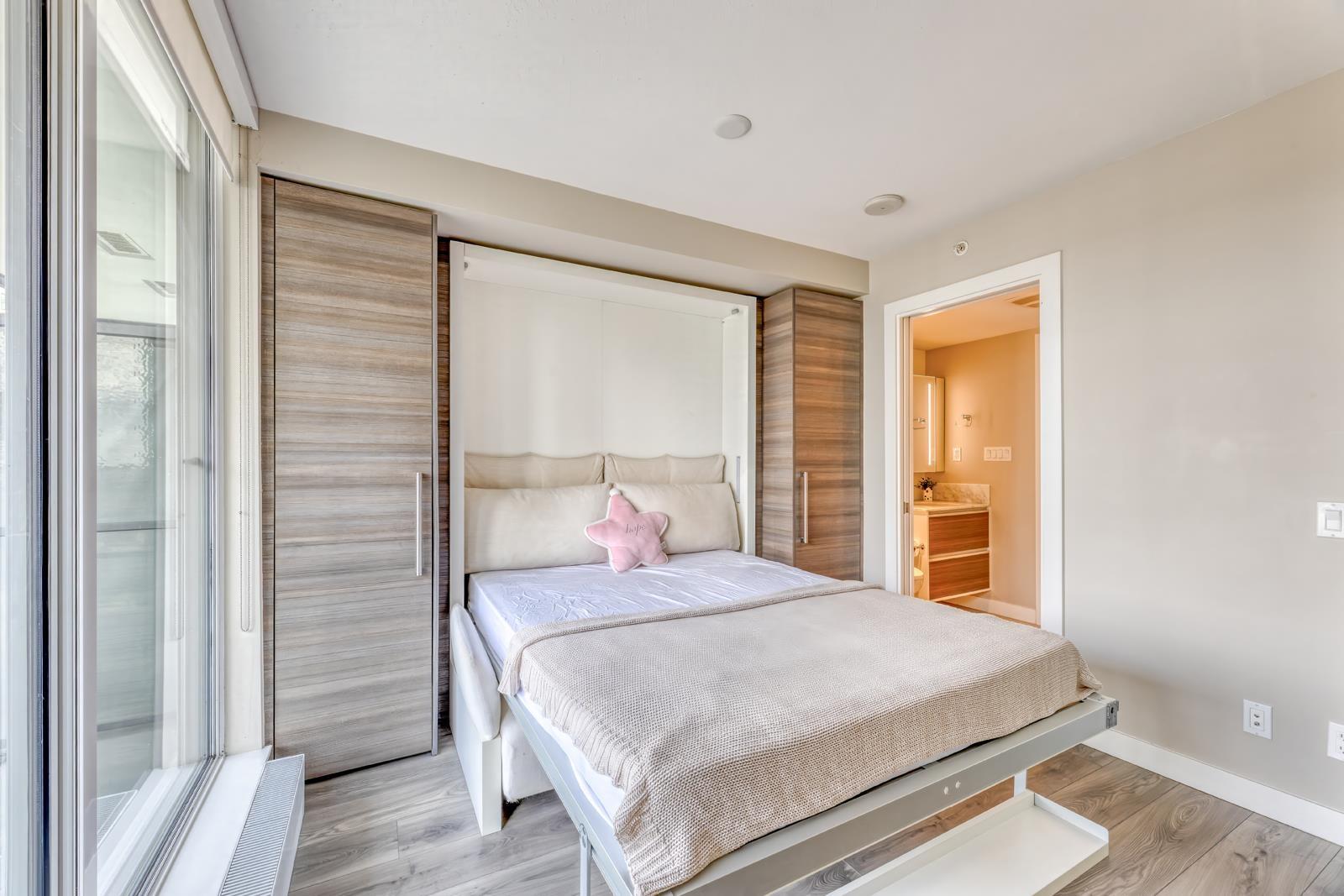 Welcome to University District Alumni Tower by BOSA! This one bedroom condo features BOSA SPACE integrated furniture, including a MURPHY BED with Queen Mattress & Built in Closets. A Chef style kitchen, including a Kitchen Island with a PULLOUT DINING TABLE fits Seating for 8 and Built-in Euro style Appliances & Quartz countertops. The Living Room includes a built in Wall Shelving that includes a floating TV PANEL and a GUEST BED. Euro-style stainless steel appliances. Quartz countertops, expandable dinging table for eight. Balcony with city & Mount Baker views. Exercise gym, meeting room, lounge and rooftop garden. 1 parking & 1 locker. Close to all amenities; malls, SkyTrain, public library, City Centre, SFU, parks, T&T. Easy to show. (id:64528)