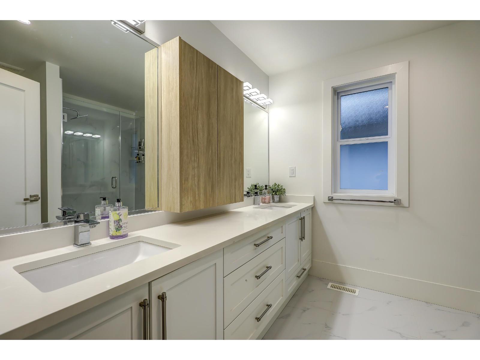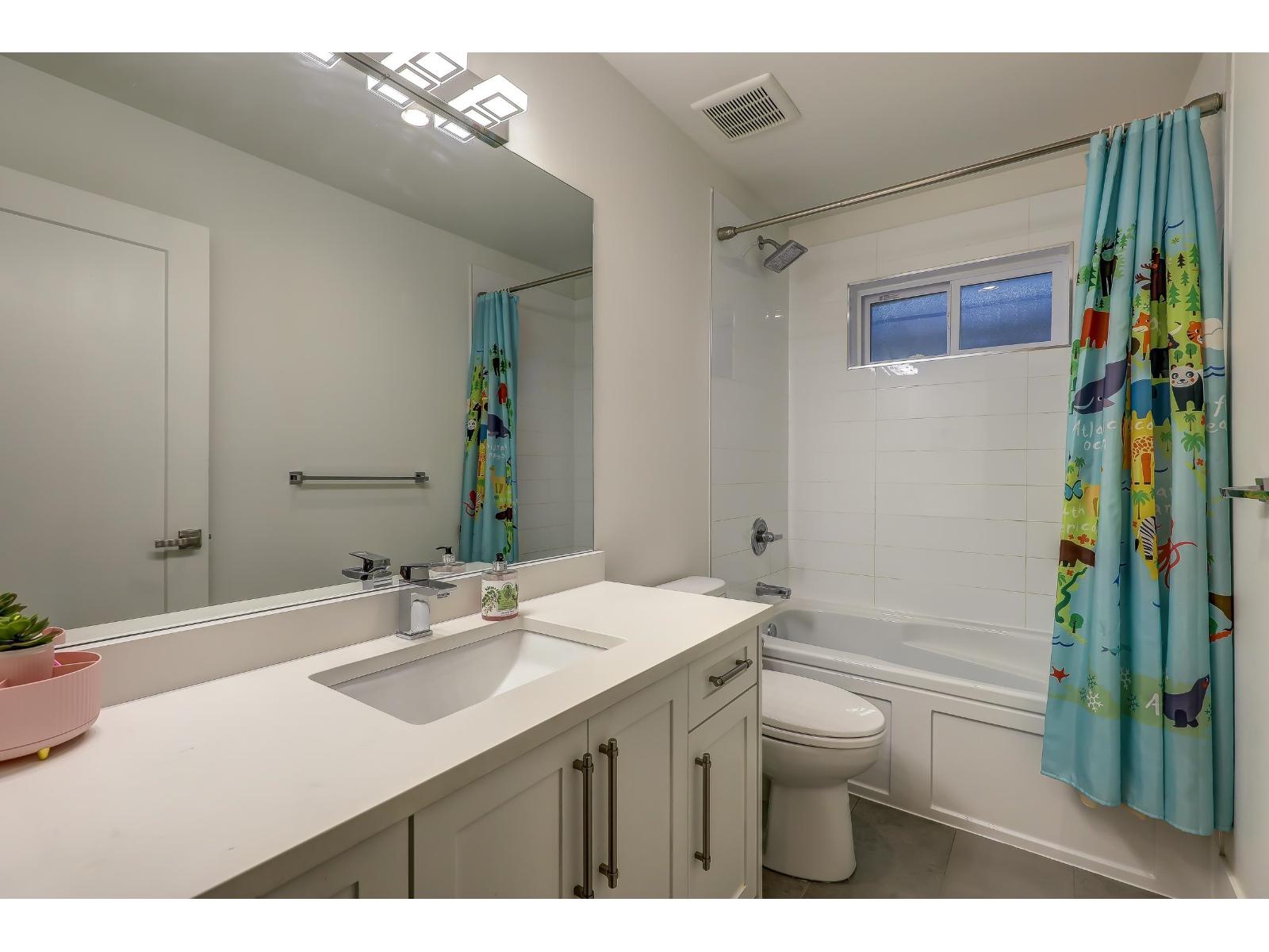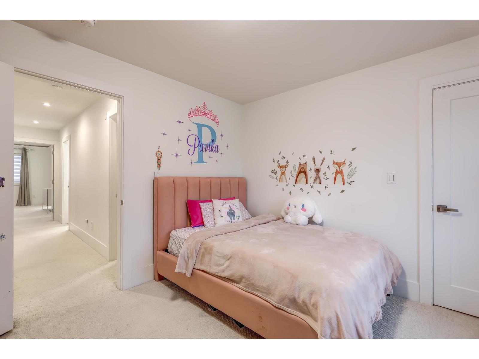 Modern inspired home by IKONIK in South Surrey. This beautifully finished 5 bedroom, 3 full & 2 half bath home offers a bright open concept layout with 10 ft ceiling,eng. Hardwood Floor, oversized windows & spacious bedrooms with walk-in closets throughout. The chef's kitchen features Fisher & Paykel appliances including a 36" gas range and double drawer dishwasher, upgraded cabinetry, custom pantry & gas fireplace. Smart doorbells & locks, security cameras, built-in vacuum, upgraded lighting, AC, zebra blinds, Bar & Level 2 EV charger add modern conveniences. The primary bedroom offers a spa inspired ensuite. Enjoy private covered decks with artificial turf front & back landscaping. Approx $65K upgrades including basement. GREAT Mortgage Helper 2 Bedroom suite rented at $1750/month (id:64528)
